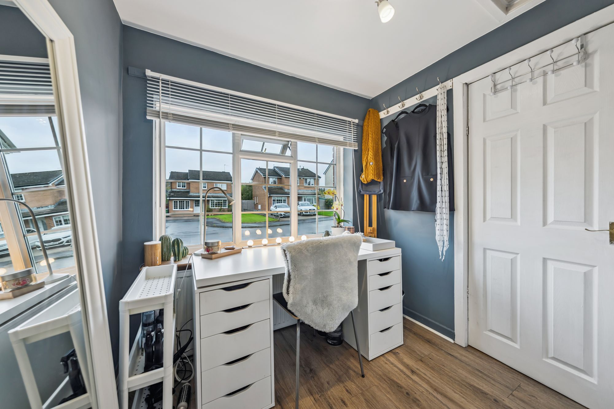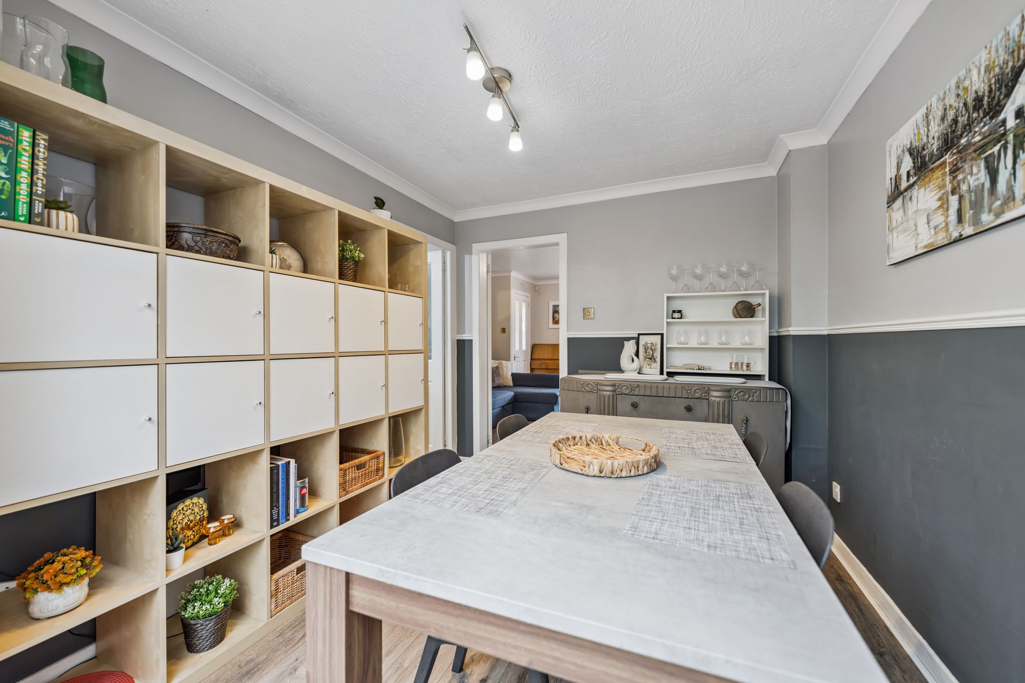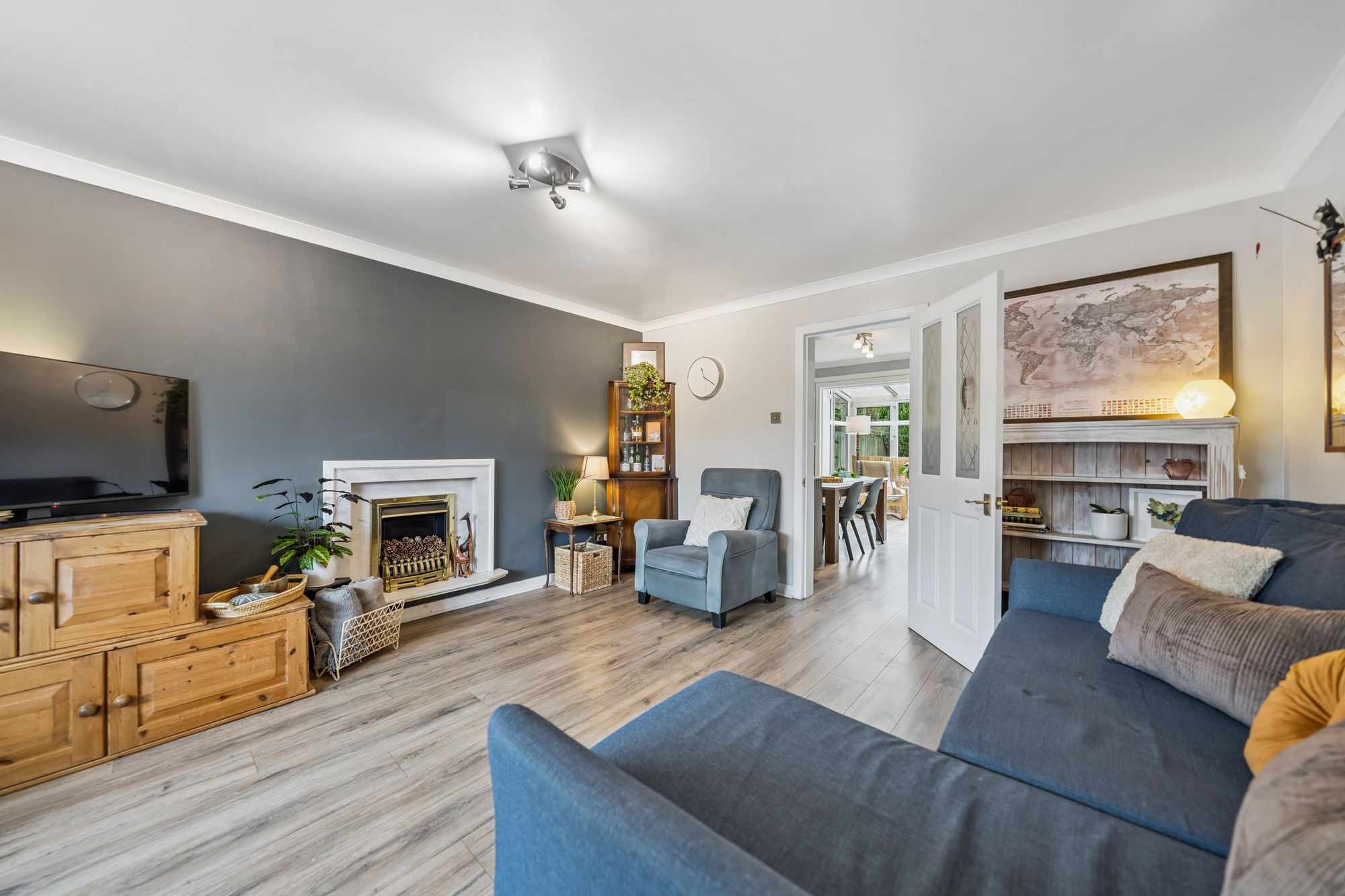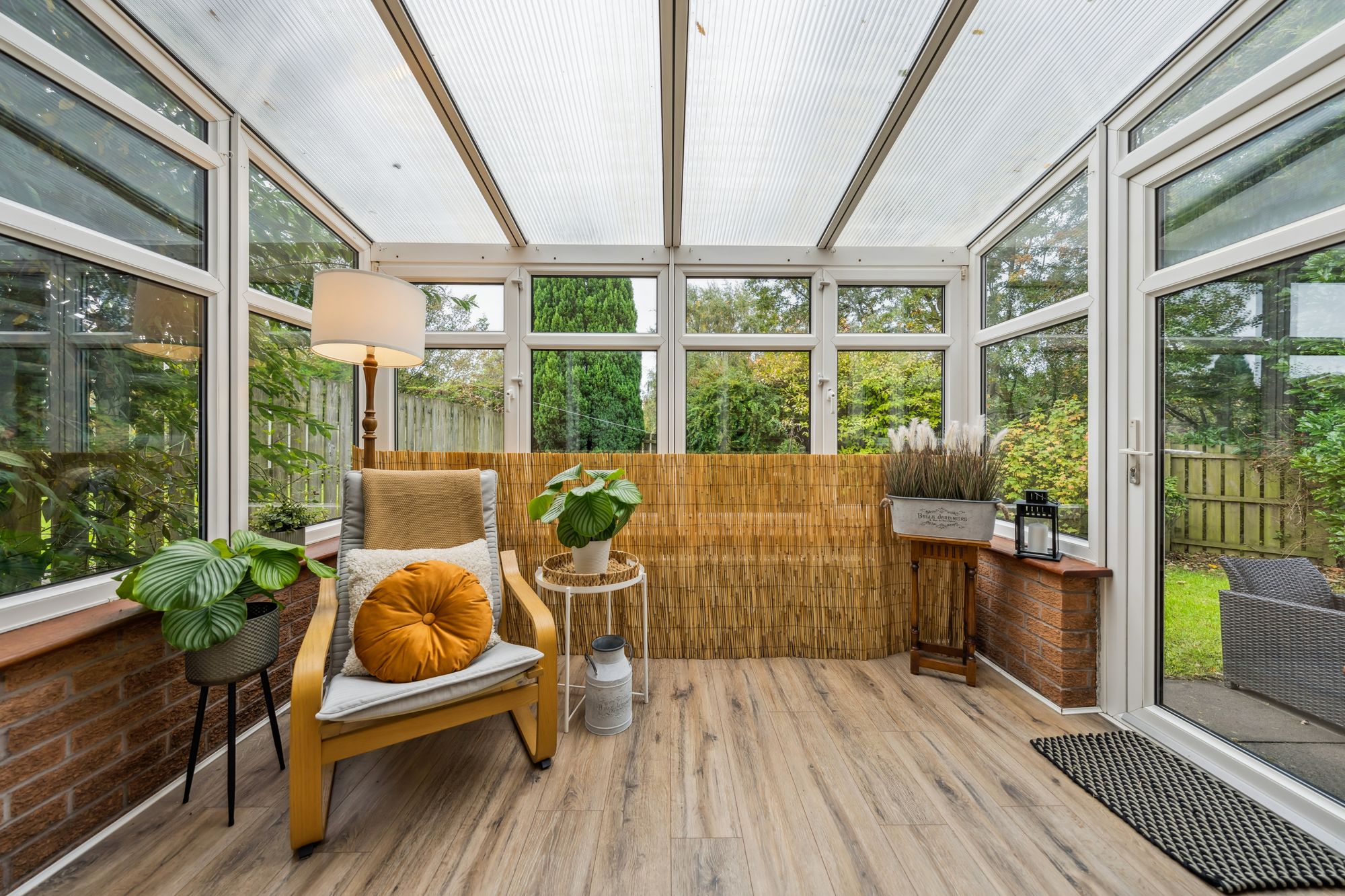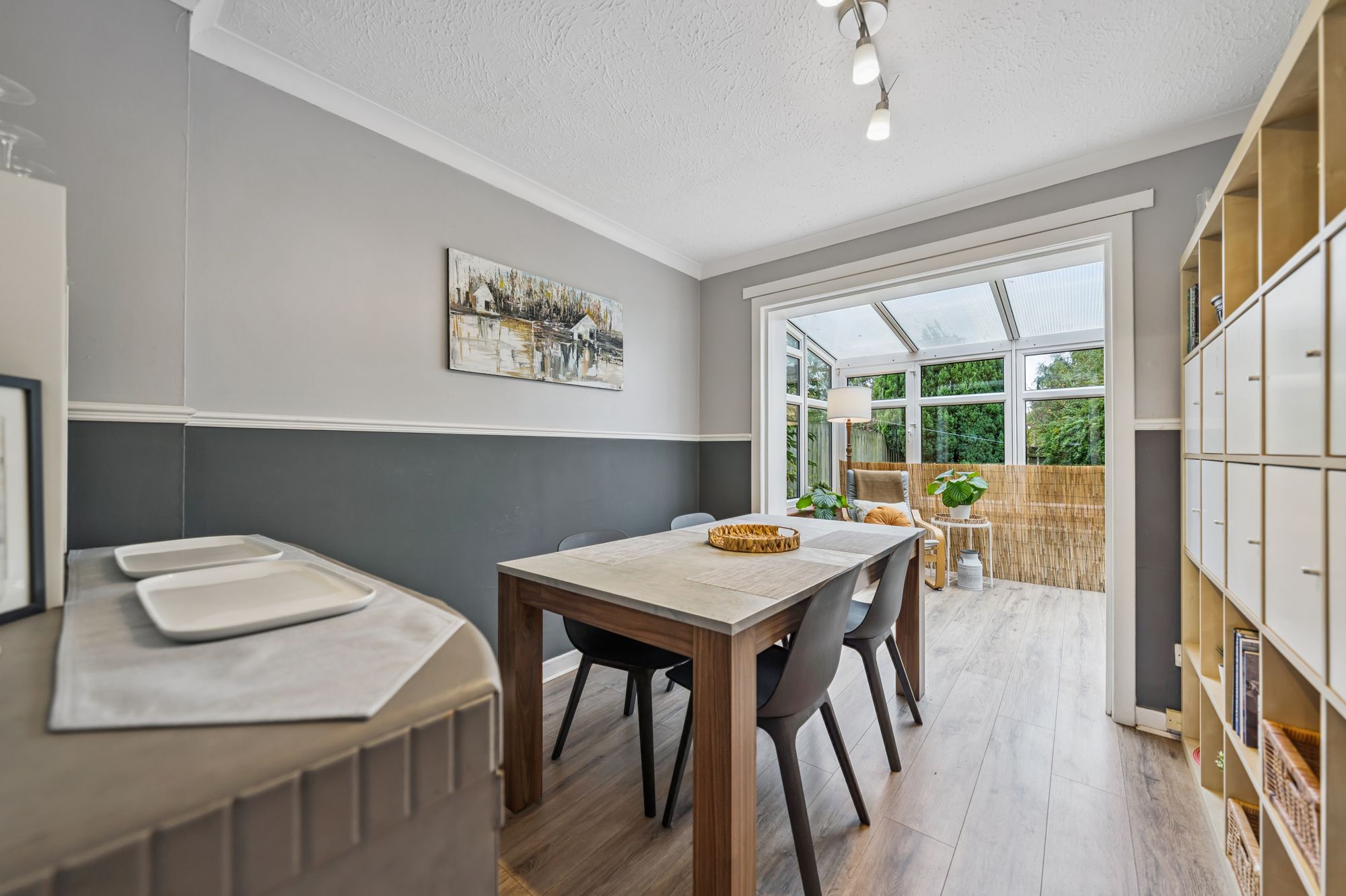 The accommodation is presented in immaculate order and extends across two levels. The ground floor comprises a welcoming entrance hallway, a spacious front-facing lounge which flows into a dedicated dining area, and a bright conservatory/sunroom with direct access to the rear garden. A well-appointed kitchen features a range of floor and wall-mounted units with integrated appliances and leads to a useful utility room and contemporary downstairs bathroom. There is also convenient rear garden access from the utility. A generous double bedroom completes the ground floor layout, ideal for guests or flexible use.