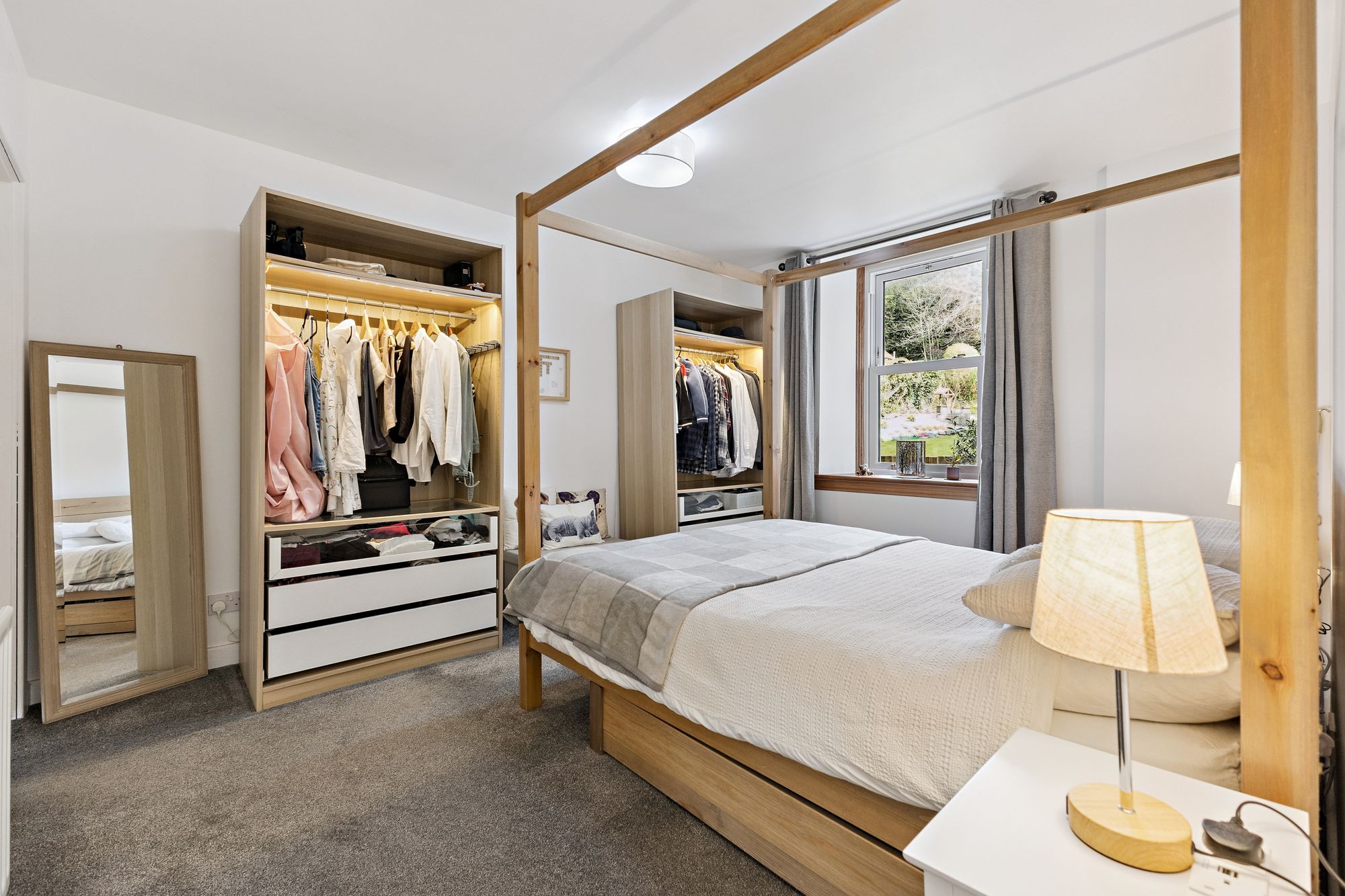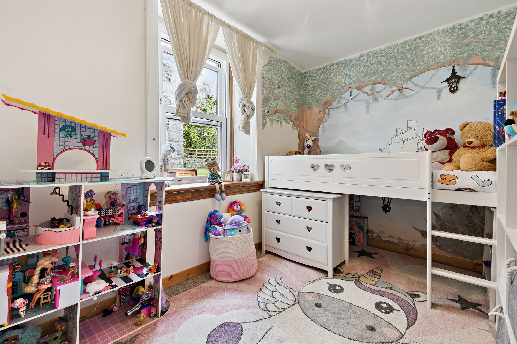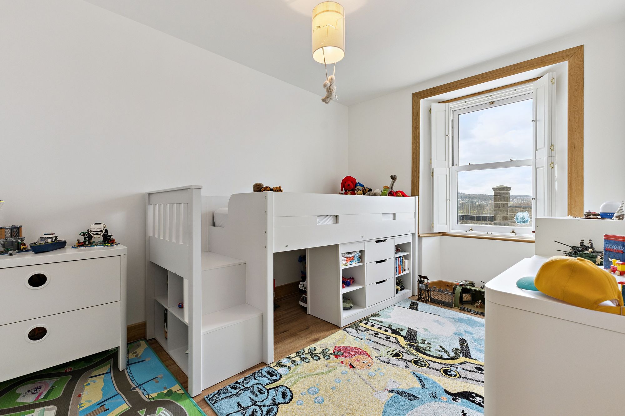 The property boasts a generously sized master bedroom, complete with a private en-suite bathroom, creating a comfortable and private retreat. There are two further well-proportioned bedrooms, both offering flexibility for use as guest rooms, children’s bedrooms, or a home office. A modern shower room with WC serves the remaining accommodation and is finished to a good standard.