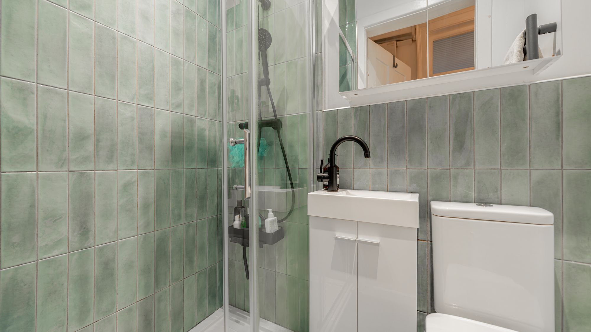 The flat boasts an impressive master bedroom with a generously sized storage cupboard, alongside a versatile second bedroom ideal for guests or perfectly suited as a home office. A sleek, contemporary three-piece shower room completes the internal accommodation.