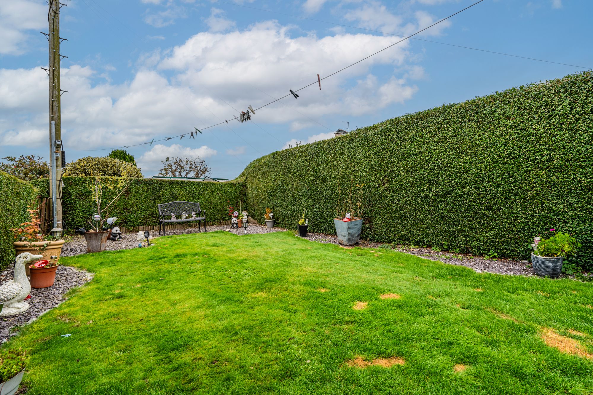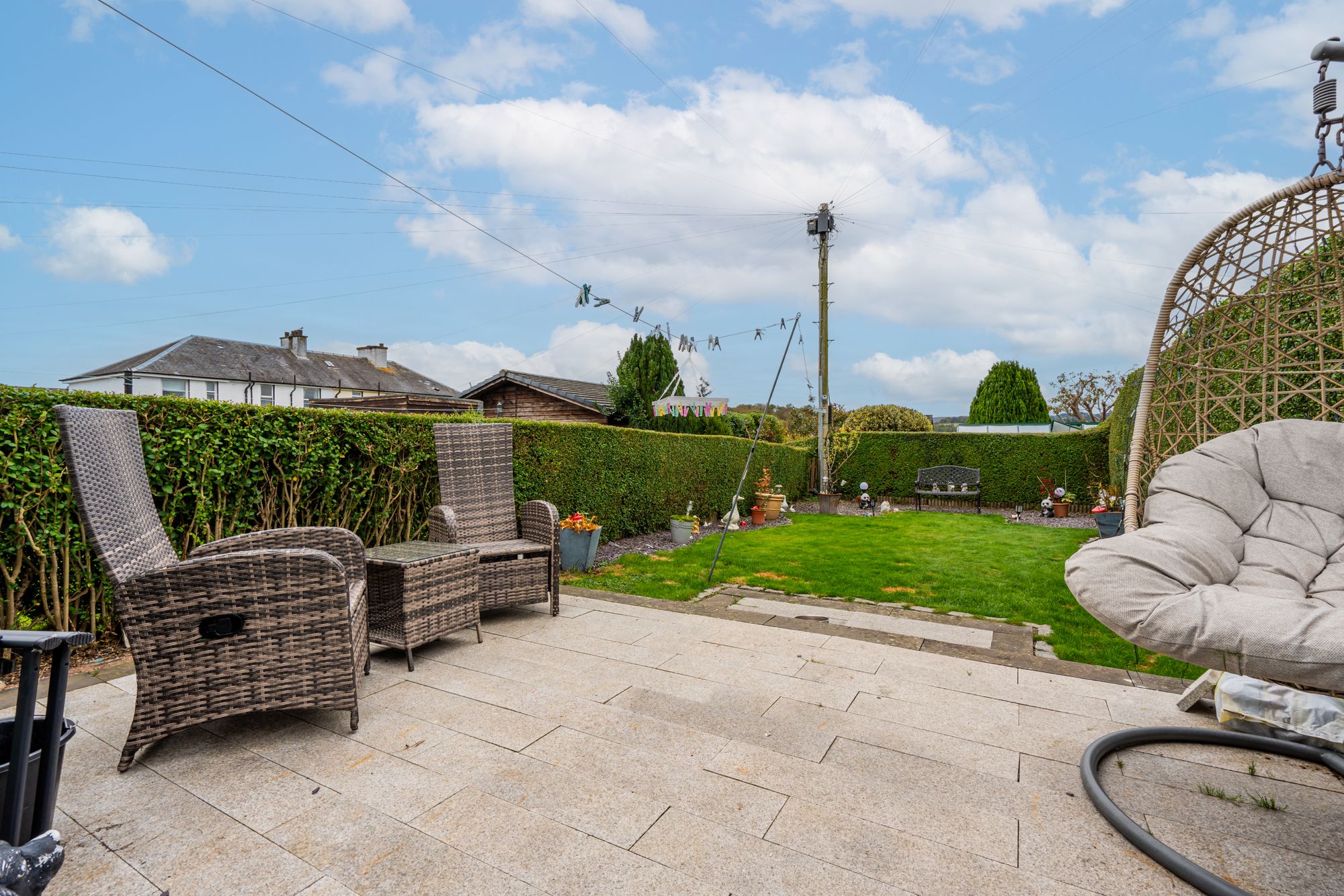 The home is surrounded by private garden grounds, enclosed with timber fencing and hedges to ensure privacy and a peaceful outdoor environment. Whether you’re gardening, relaxing, or entertaining, the outdoor space is a valuable extension of the property. To the front, off-street parking is provided via a driveway, adding convenience and security for vehicle owners.