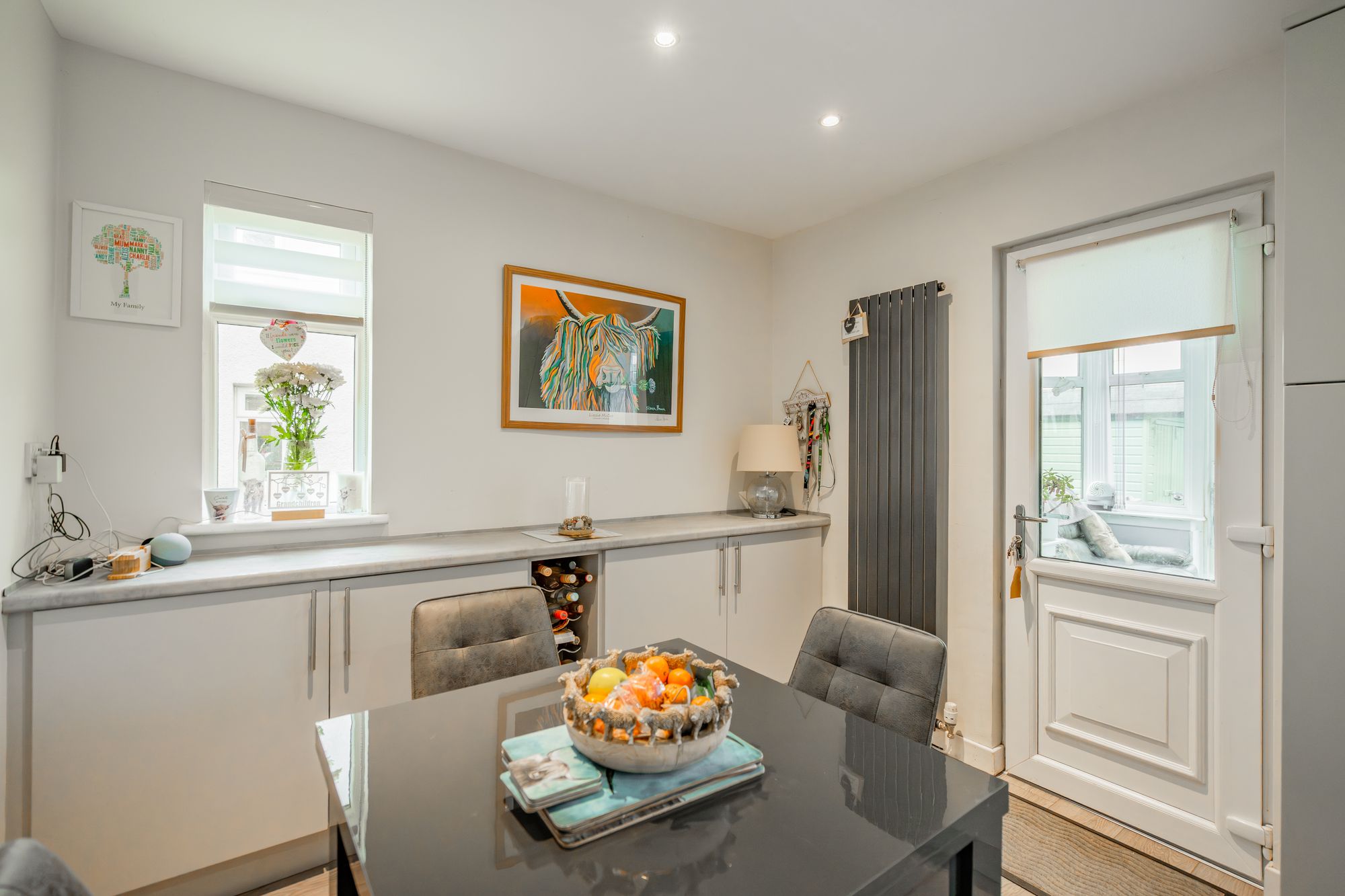 Nestled in the sought-after Bannockburn area of Stirling, this charming end-terraced villa combines practical living with a welcoming atmosphere. The entrance hall opens into a comfortable lounge, perfect for relaxing or entertaining guests. The spacious kitchen diner provides ample room for family meals and everyday dining, while the conservatory at the rear extends the living space and offers a bright, airy spot to enjoy garden views all year round.