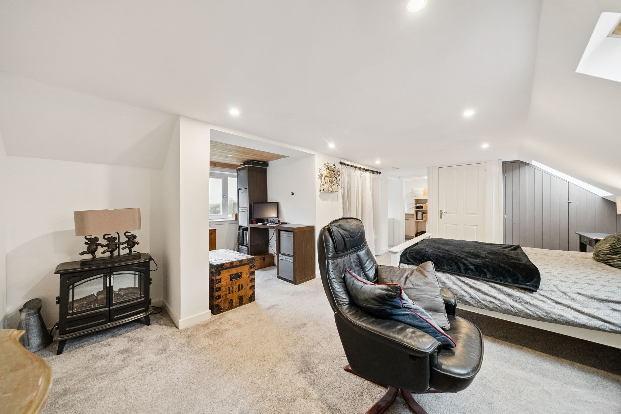 The upper level continues to impress, offering a flexible layout that includes a generous bedroom with an additional sitting room or family space, and a bathroom, making it ideal for growing families, guests or home working arrangements.