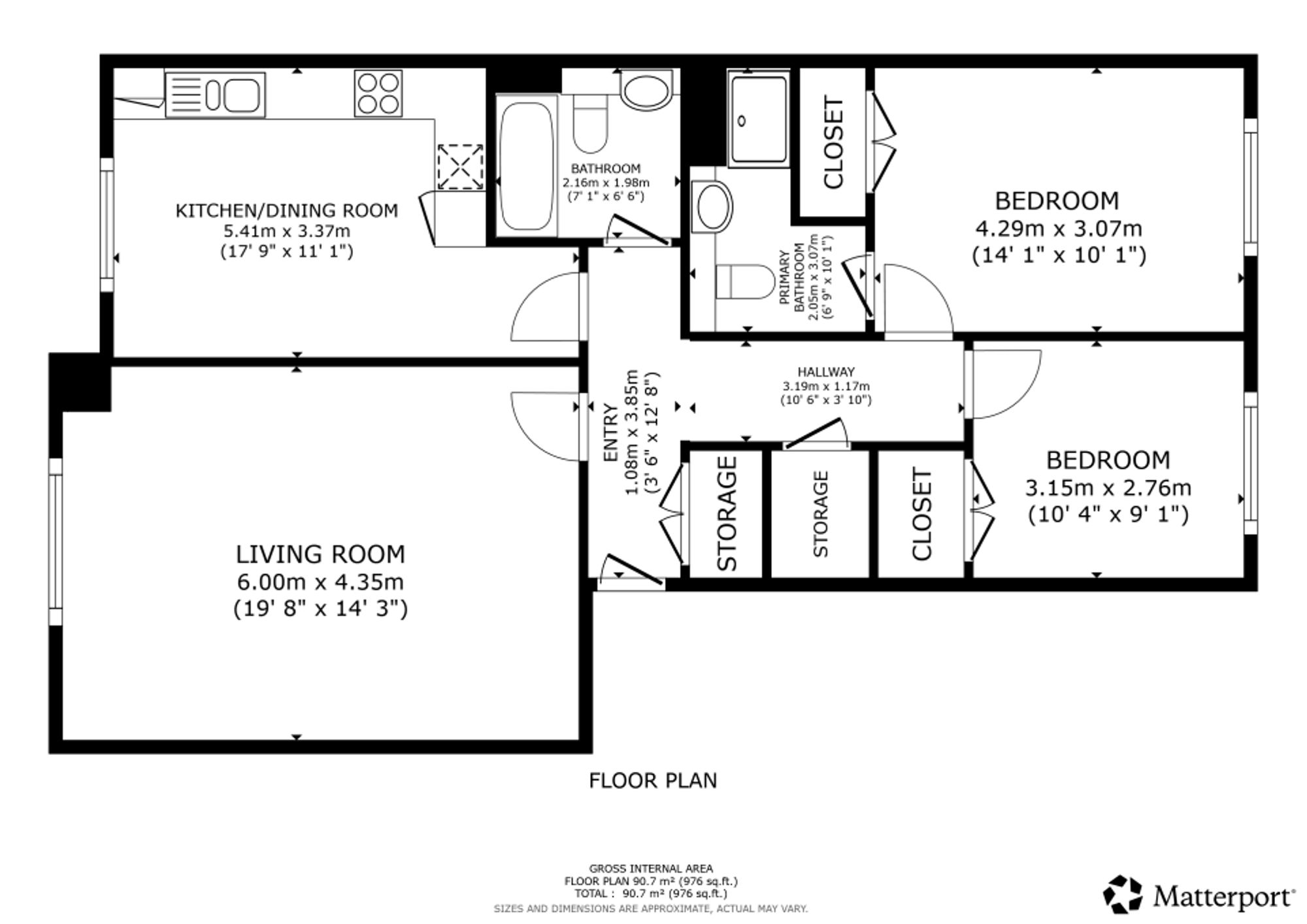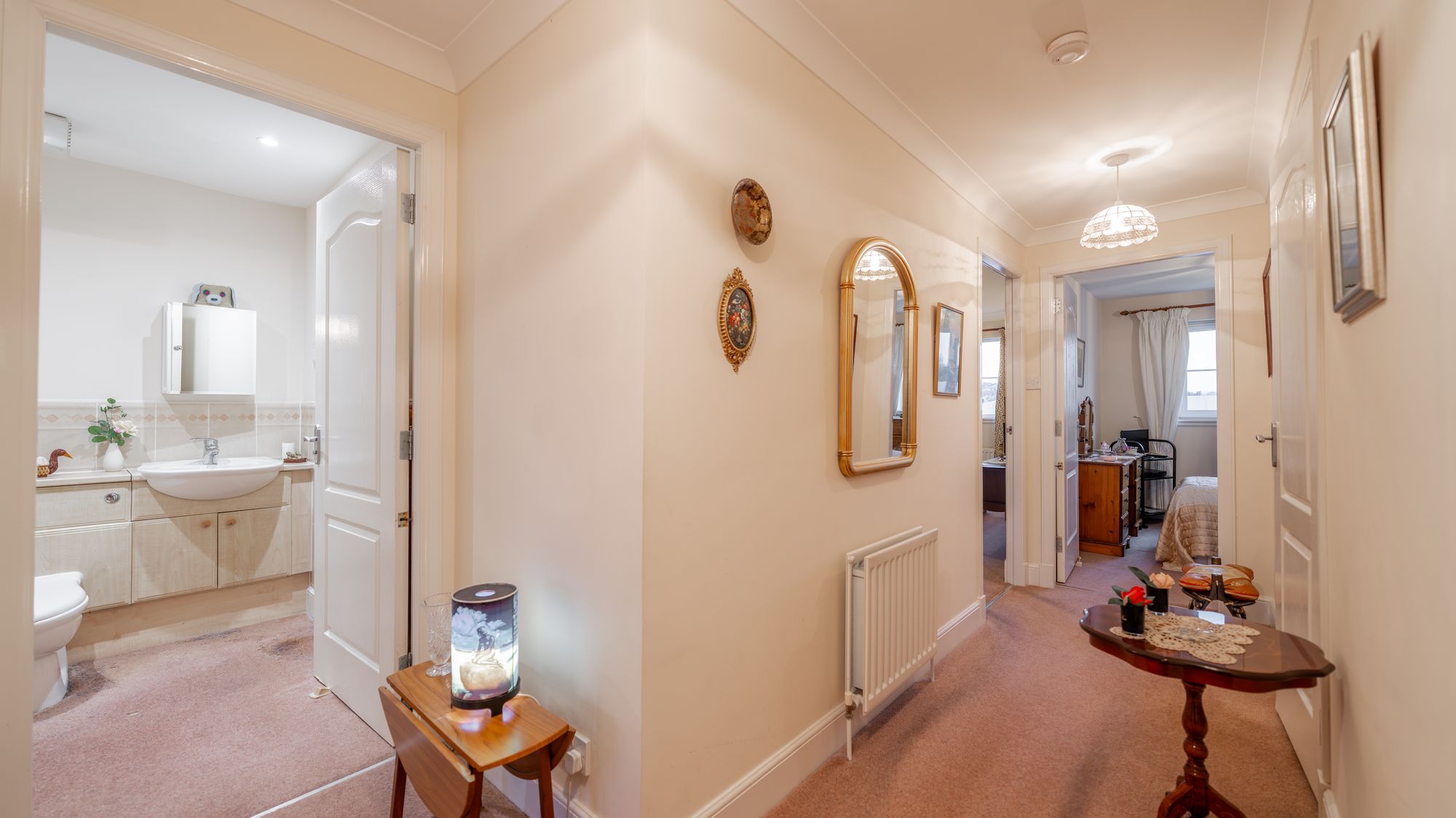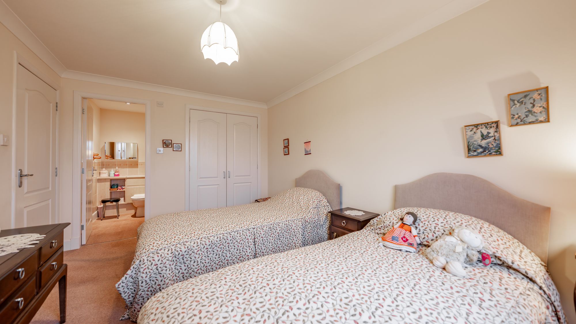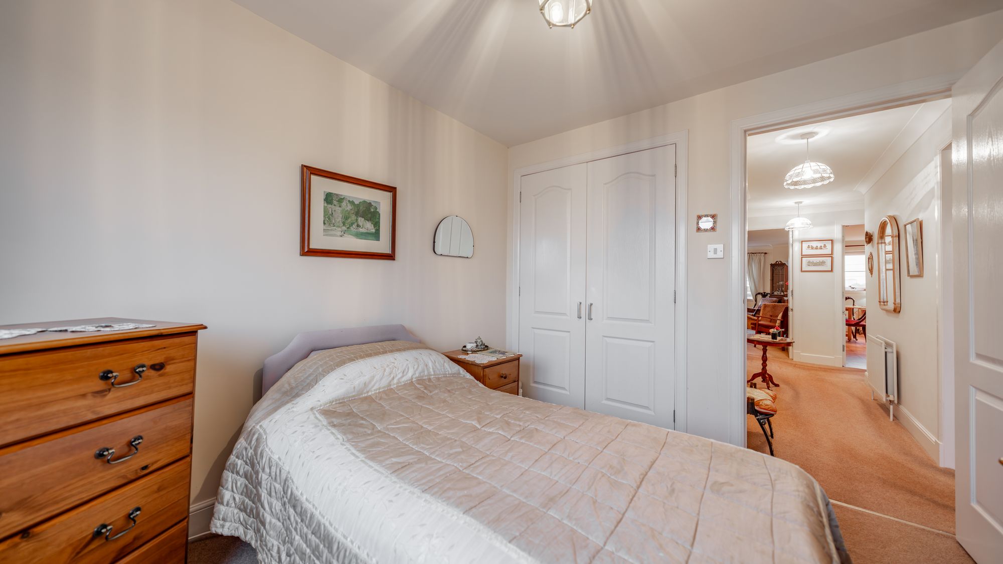 Accessed via a carpeted and secure residents’ stairwell, the accommodation extends to a bright and welcoming reception hallway with two generous storage cupboards. From here, you are led into a wonderfully expansive lounge decorated in neutral tones, the generously sized dining kitchen is well-equipped with a range of modern units and integrated appliances. The master bedroom is impressively proportioned and benefits from built-in wardrobes and a contemporary en suite shower room. A second double bedroom, also with fitted wardrobes, is quietly situated also to the rear. Completing the internal layout is a well-appointed main bathroom featuring a three-piece suite with shower over bath.