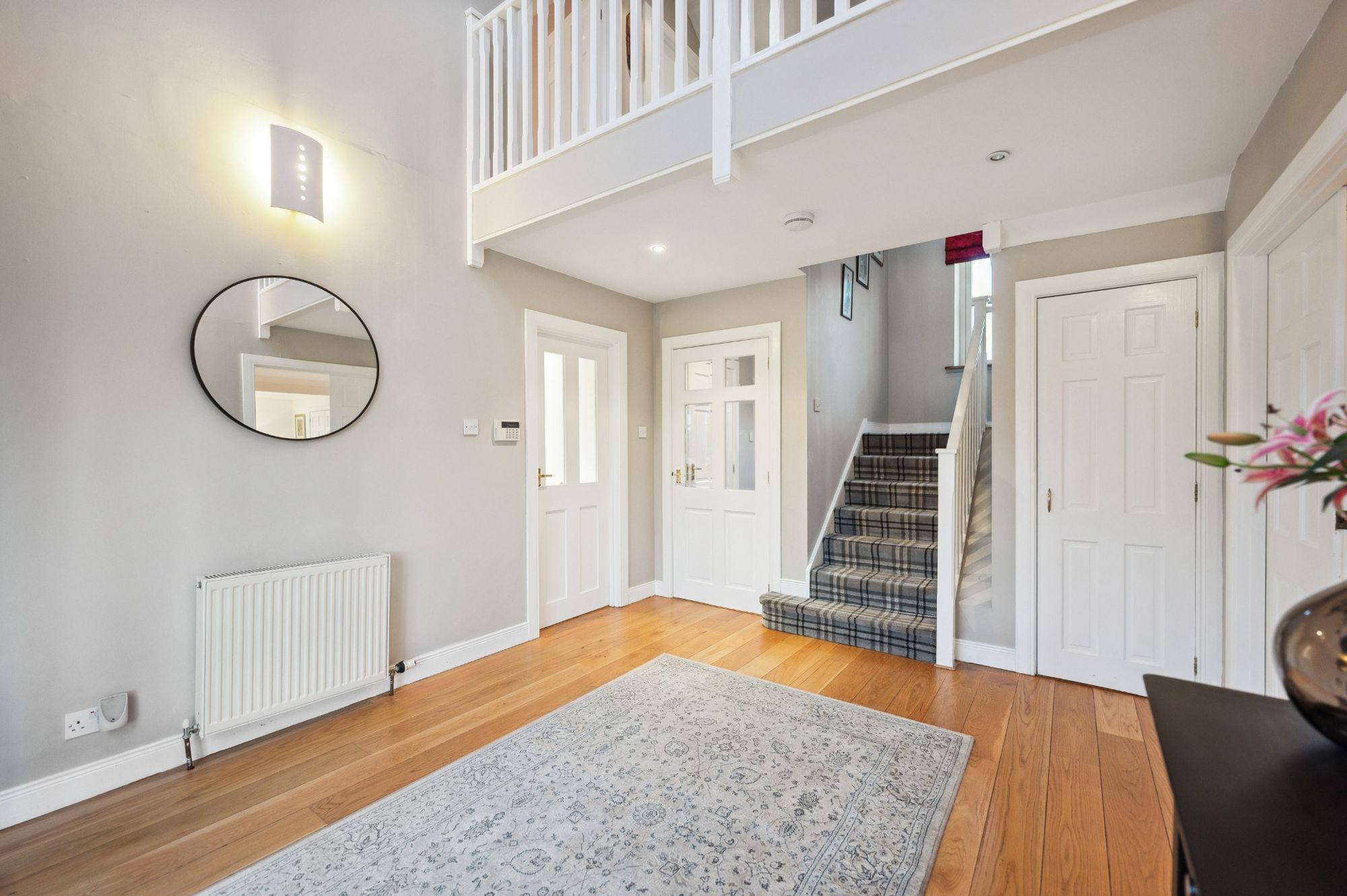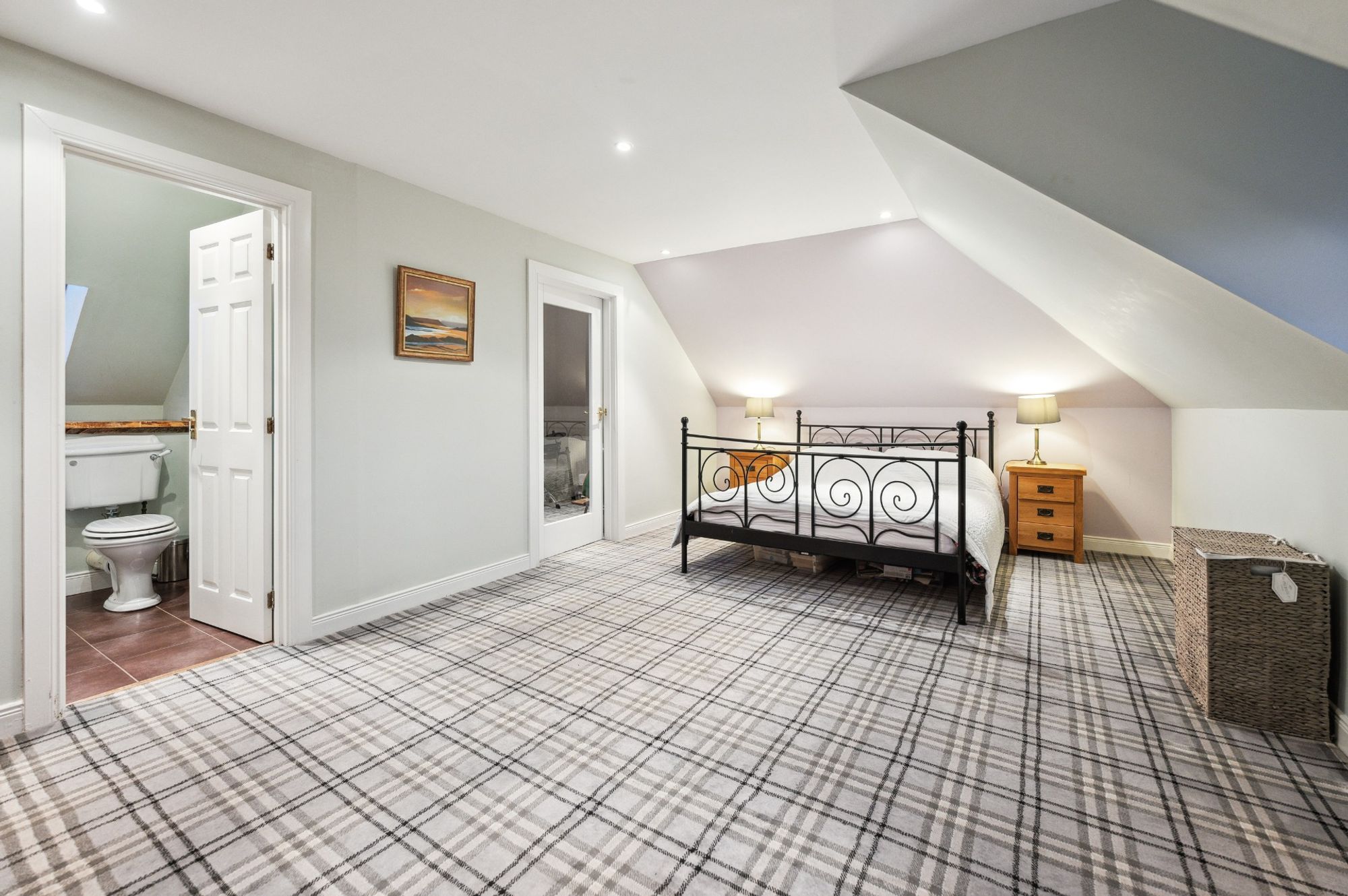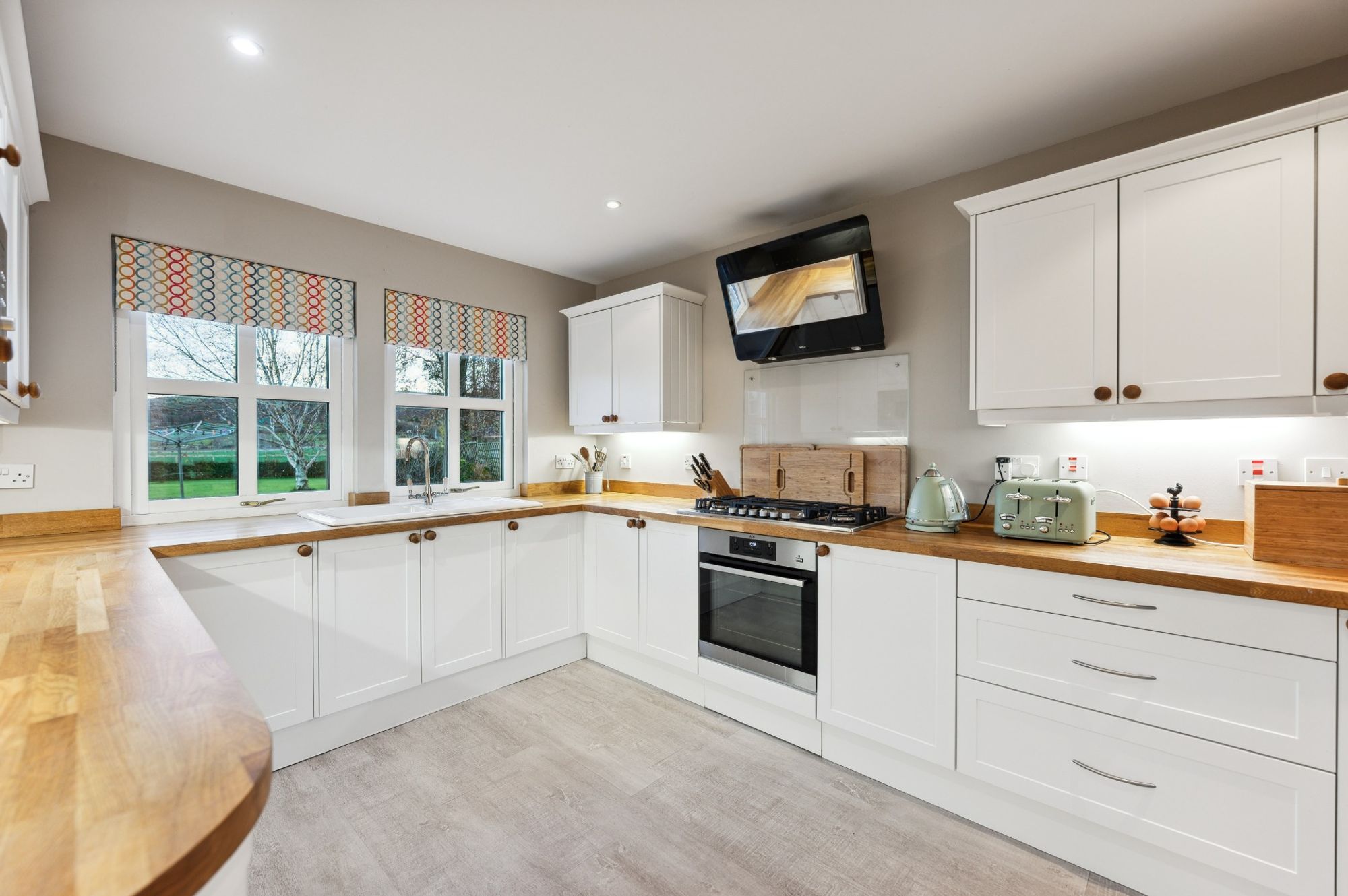 The property is entered into a welcoming porch with useful W.C cloakroom located off. This leads into the grand reception hallway with stairs to the upper mezzanine gallery landing. The large family lounge and dining room is the centre of this beautiful home and features a double chimney wood-burning stove with solid wood mantle and stone hearth along with double aspect windows overlooking the gardens and double doors to outside. The traditional country style kitchen is finished with a range of attractive shaker style wall and base units with coordinating solid wood worktops and a useful utility/laundry area located off. The family kitchen is complete with a range of integrated appliances including five burner gas hob, oven and chimney hood along with integrated microwave. The superb garden/sun room is located off the central hallway, providing a lovely additional reception room boasting views over the gardens and countryside beyond. The gallery landing offers double height velux windows to enhance the natural light and all four bedrooms are located off. The two main bedrooms both boast attractive en suite shower rooms and the principal suite offers a dressing area with full wall fitted wardrobes and an additional room located off and currently utilised as a home office. The sizeable family bathroom completes the accommodation with attractive traditional white suite with feature free standing bath.