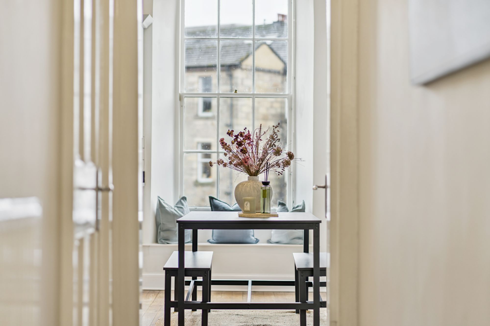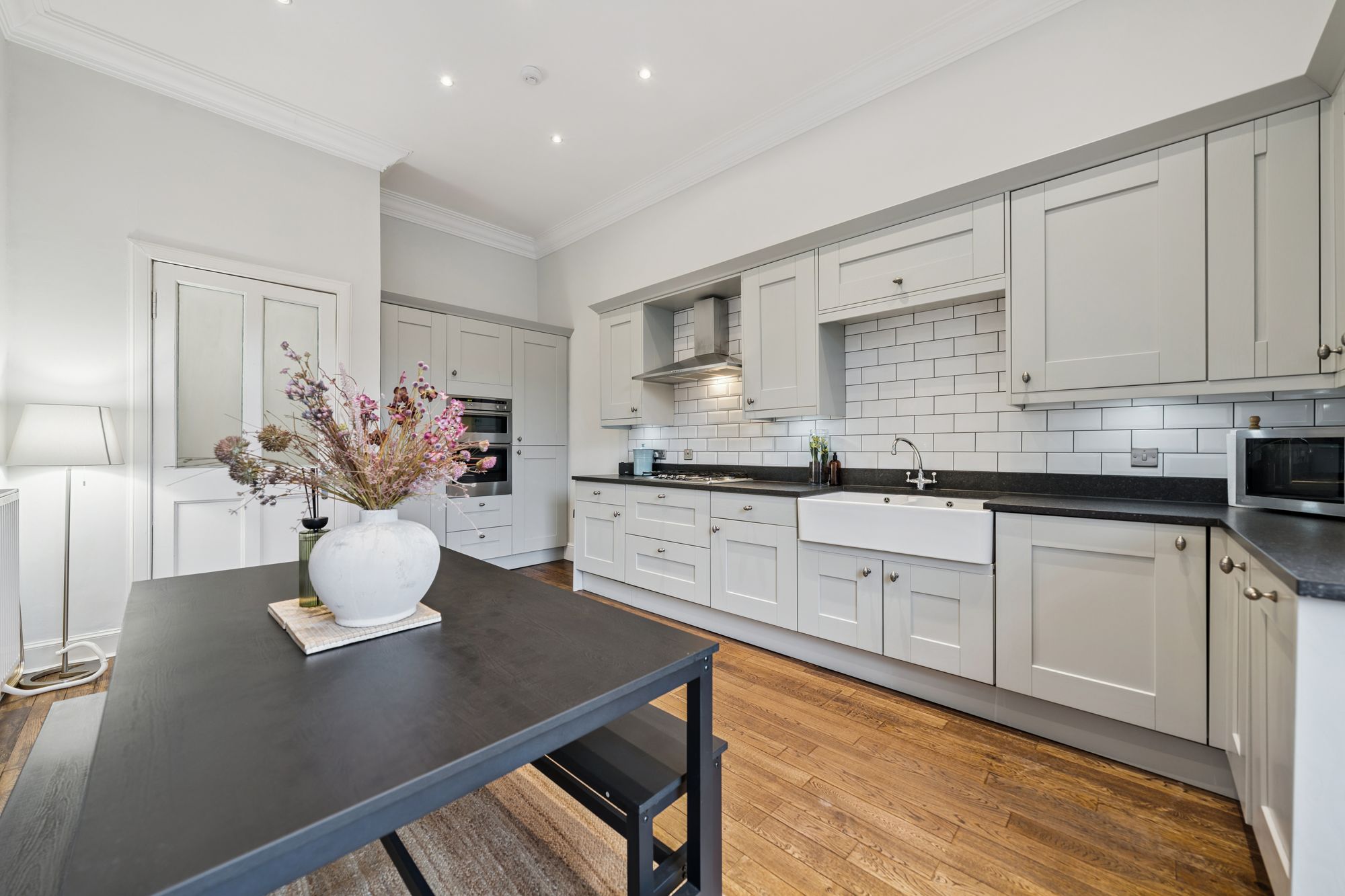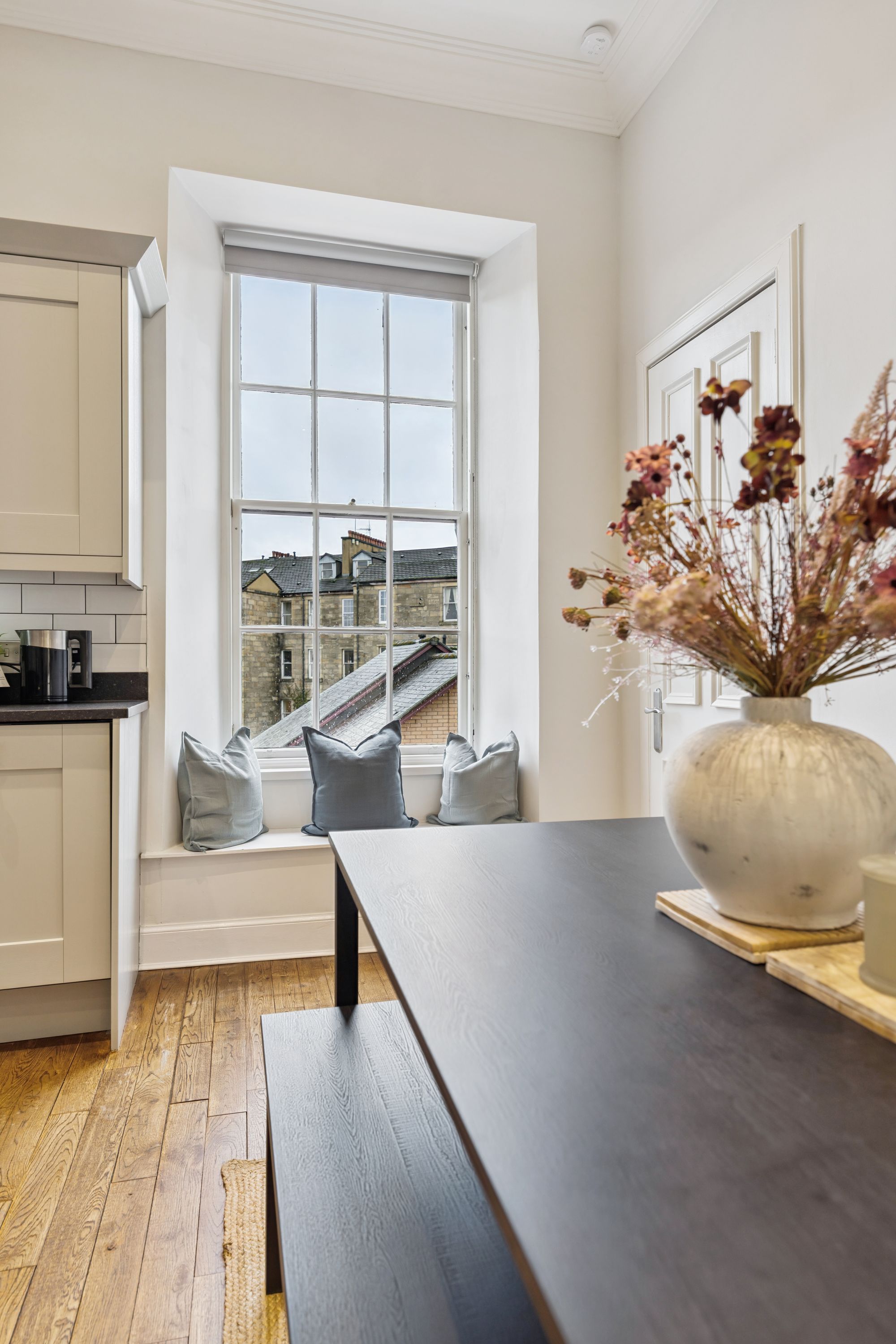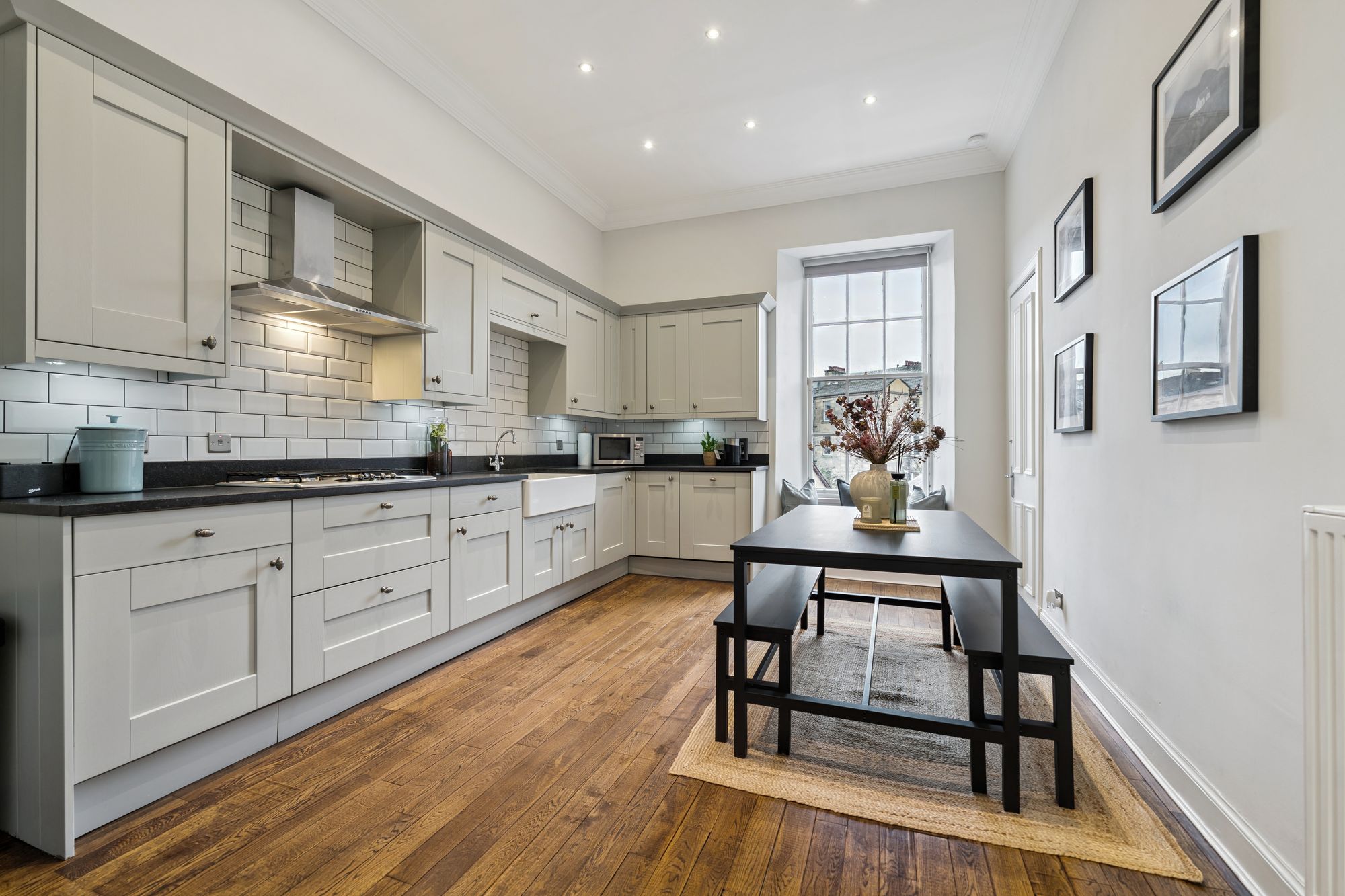 Internally, the flat is modern throughout, however still retains many eye-catching period features including; ornate cornice, ceiling rose, sash windows and fully functioning shutters. The attached photographs, floor plan and HD video tour will give an idea to the size and layout of the flat. However, in brief the accommodation extends to; a welcoming entrance hallway with storage off, a striking living room with an exposed stone fireplace with log burner, a spacious dining sized kitchen with base and wall mounted shaker style units, integrated appliances and a Belfast sink. Three generous double bedrooms, including a wonderful principal room with original fireplace and walk in cupboard. There is a home office, which could also be utilised as a snug, or play room and the accommodation is completed by a fully tiled bathroom with three-piece, shower over the bath and a heated towel rail. The property also benefits from access to shared storage areas which is perfect for additional storage.