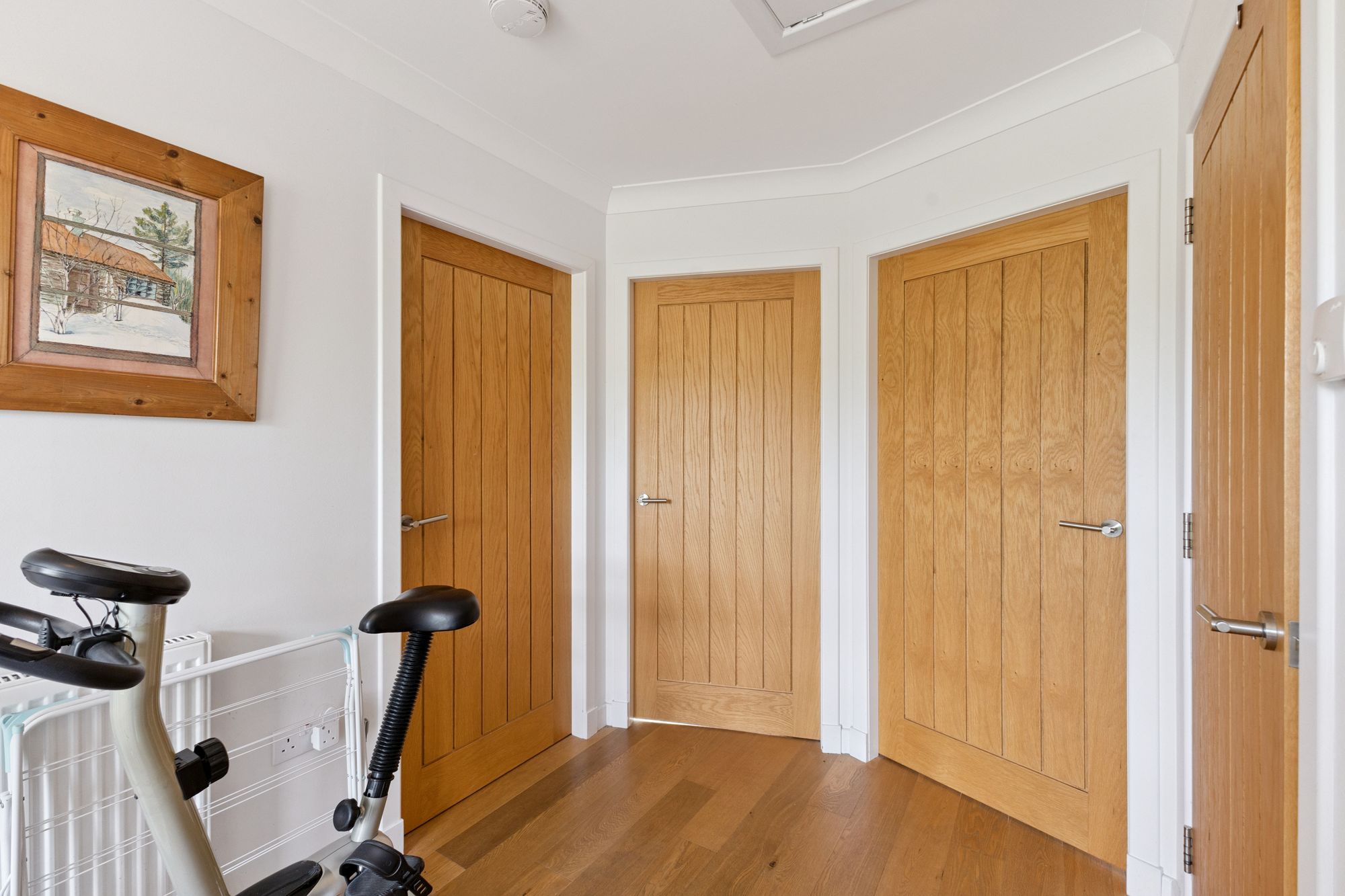 The first floor accommodation is accessed via a landing which leads to three well-proportioned bedrooms and a family bathroom. The principal bedroom benefits from an ensuite shower room, providing additional convenience and privacy. The remaining bedrooms are suitable for family members, guests, or potential use as a home office or study.