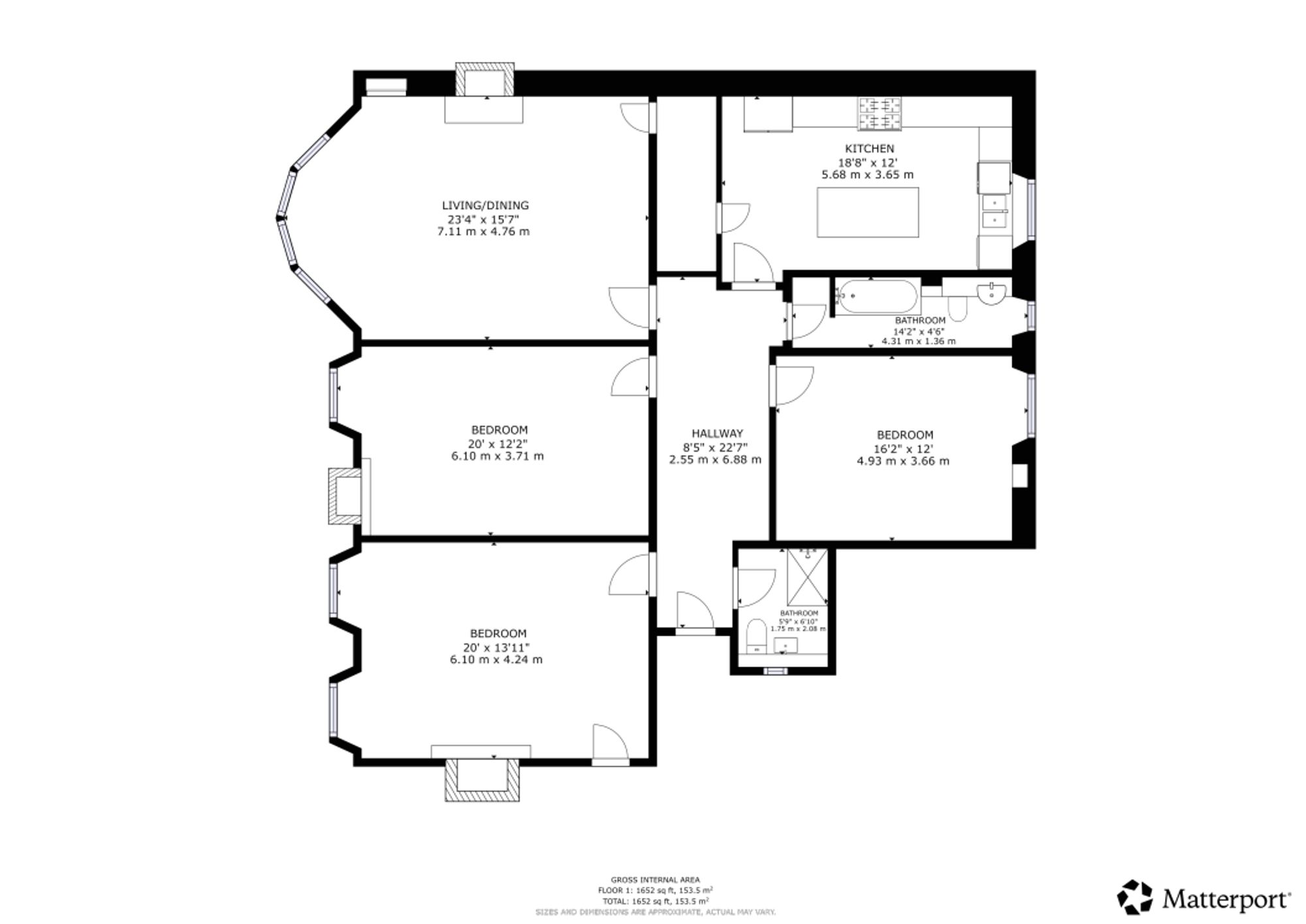 Accessed via a secure entry system into a well-kept residents’ stairwell, the accommodation begins with a broad and welcoming traditional reception hallway, complete with useful second bathroom, boasting a three piece suite with large walk-in shower enclosure. There are three spacious double bedrooms, each beautifully presented, while the outstanding bay-windowed lounge provides a bright and elegant principal living space. Rich in period charm, the lounge features an original marble fireplace, ornate cornicing and original flooring, with a substantial adjacent cupboard.