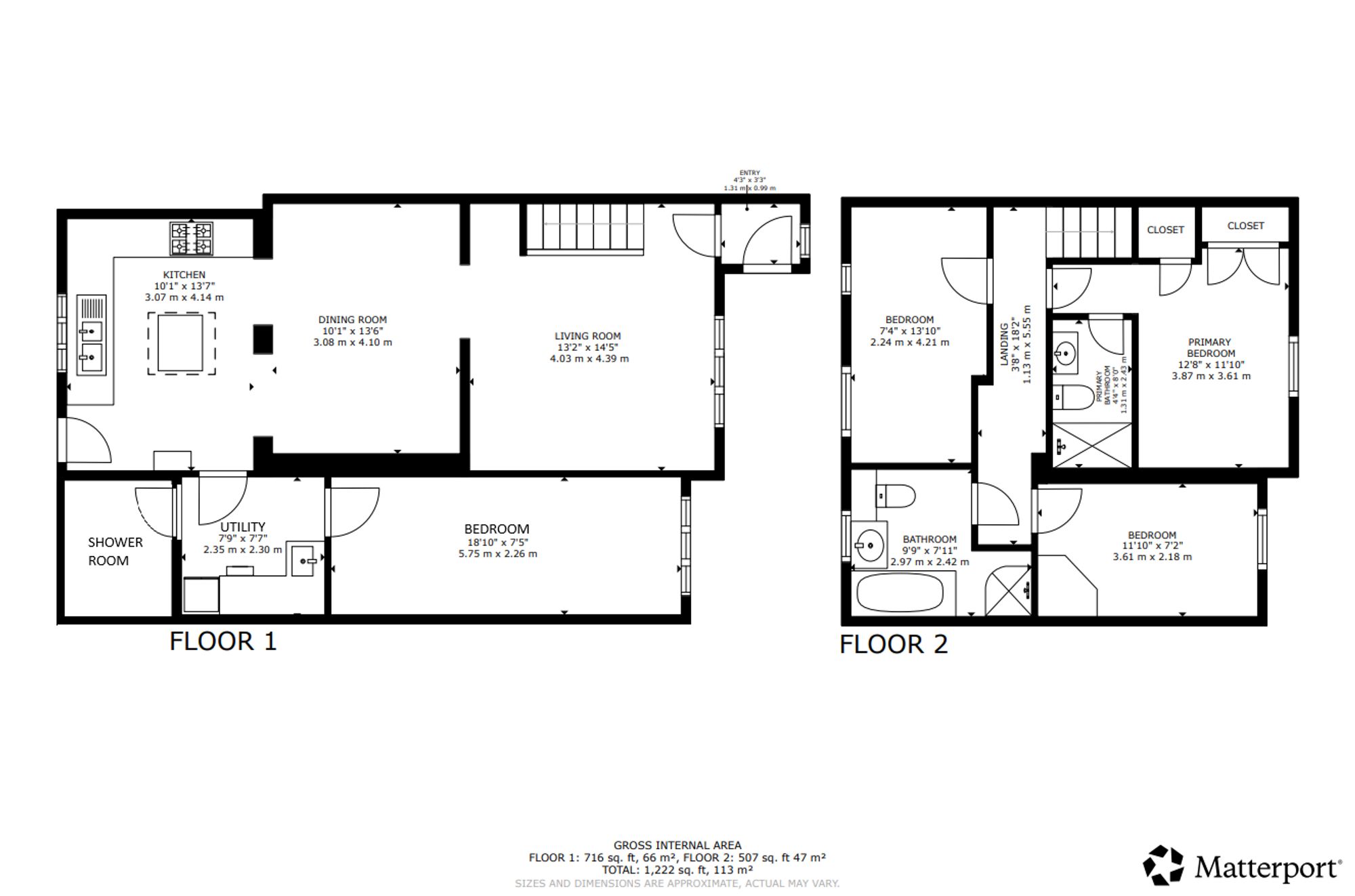 Adjoining the kitchen is a useful utility room, giving access to a shower room and downstairs bedroom. This flexible space can also serve as a playroom, study, or snug.