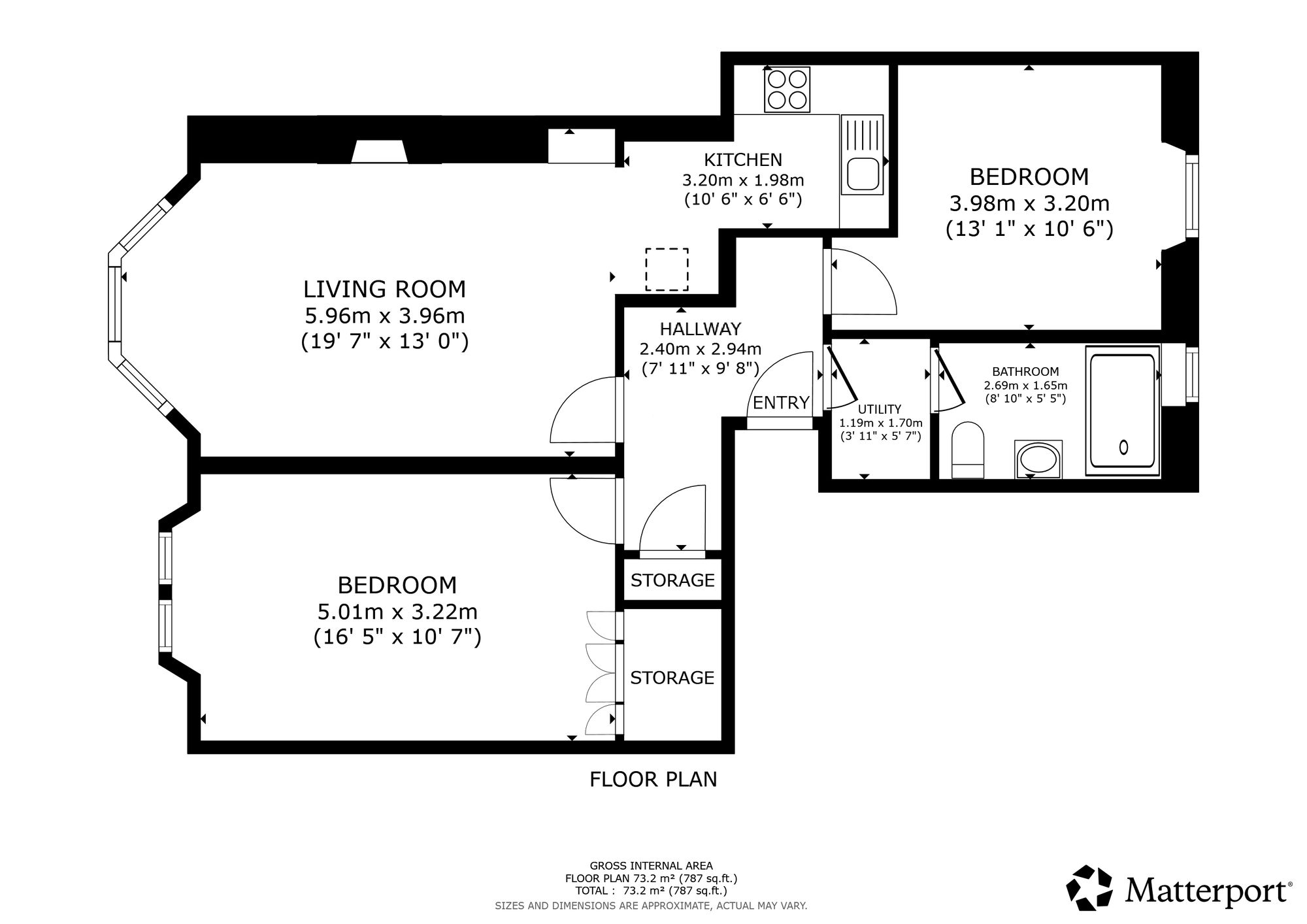 The property for sale is held within an attractive red sandstone tenement which is maintained to an excellent standard by the appointed factor and is accessed via a secure entry intercom system. The attached photographs, floor plan and HD video tour will give an indication to the size and layout of the flat. However, in brief the accommodation extends to; welcoming entrance hallway with storage off, a wonderful bay windowed living room with fireplace and kitchen off. The kitchen itself has base and wall mounted units. There are two double bedrooms, with the principal room benefitting from a large walk in wardrobe. The accommodation is completed by a modern, fully tiled shower room with walk in shower and utility room off.