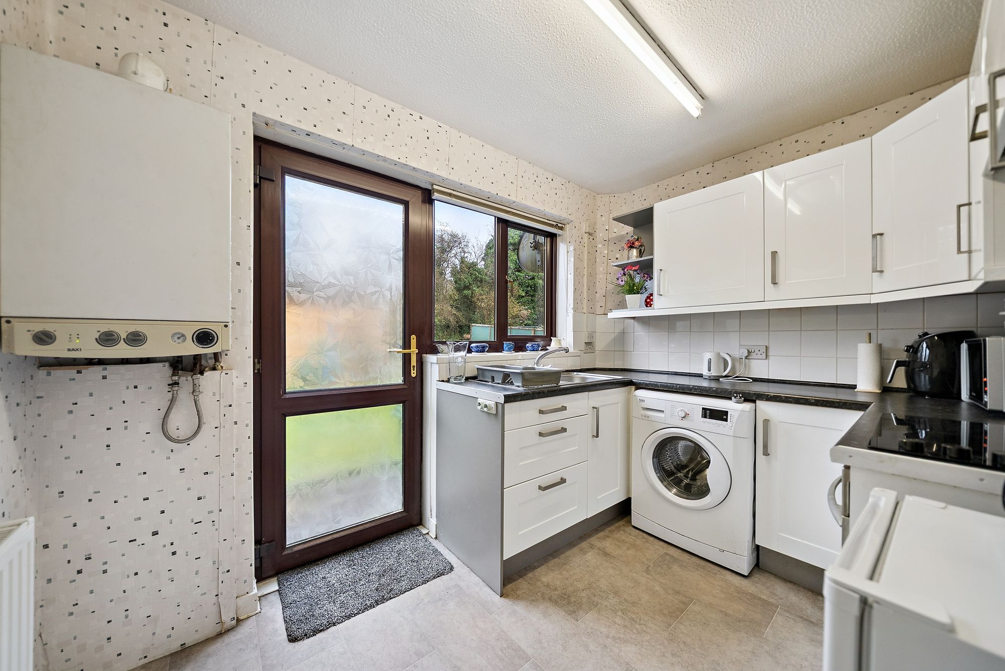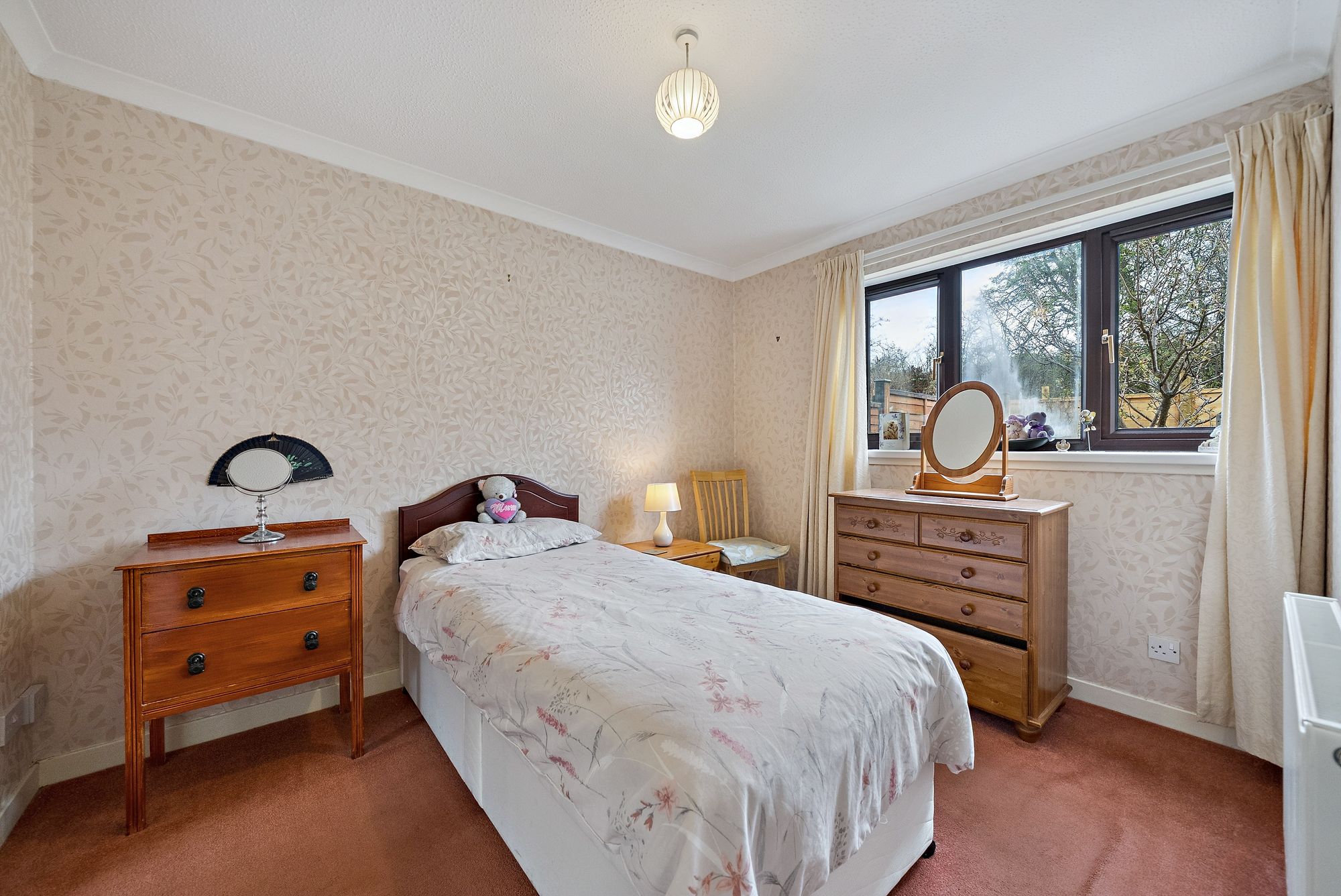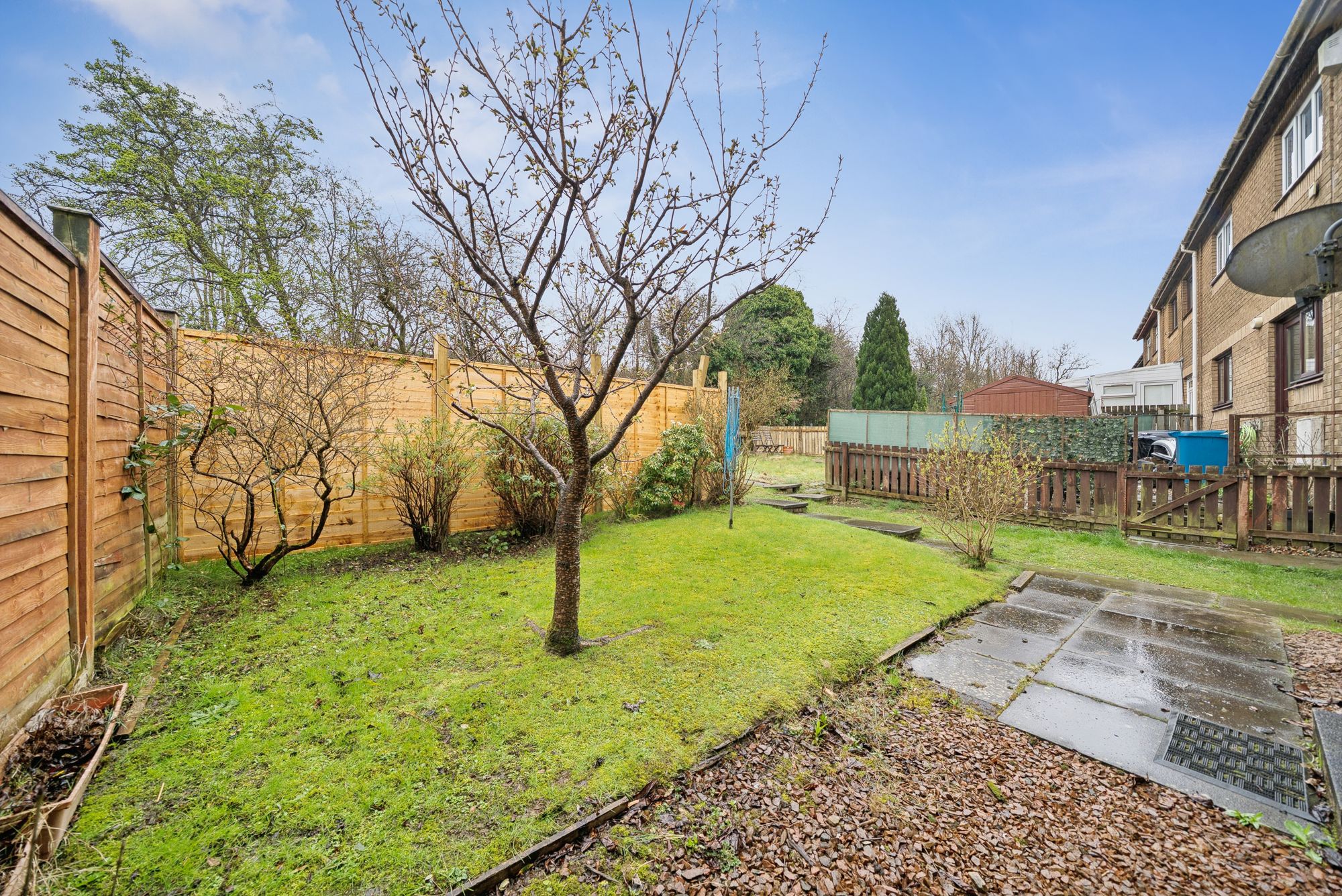 The attached photographs, floor plan and HD video tour will give an indication to the size and layout of the flat. However, in brief the accommodation extends to; entrance vestibule, spacious living room with ample space for dining and storage off. There is a double bedroom with built in wardrobes, a fitted kitchen with door leading to the garden and the accommodation is completed by a bathroom with three piece suite and shower over the bath. The back garden is a huge selling point and is made up of a section of lawn bound by shrubs and bushes and a slabbed patio area.