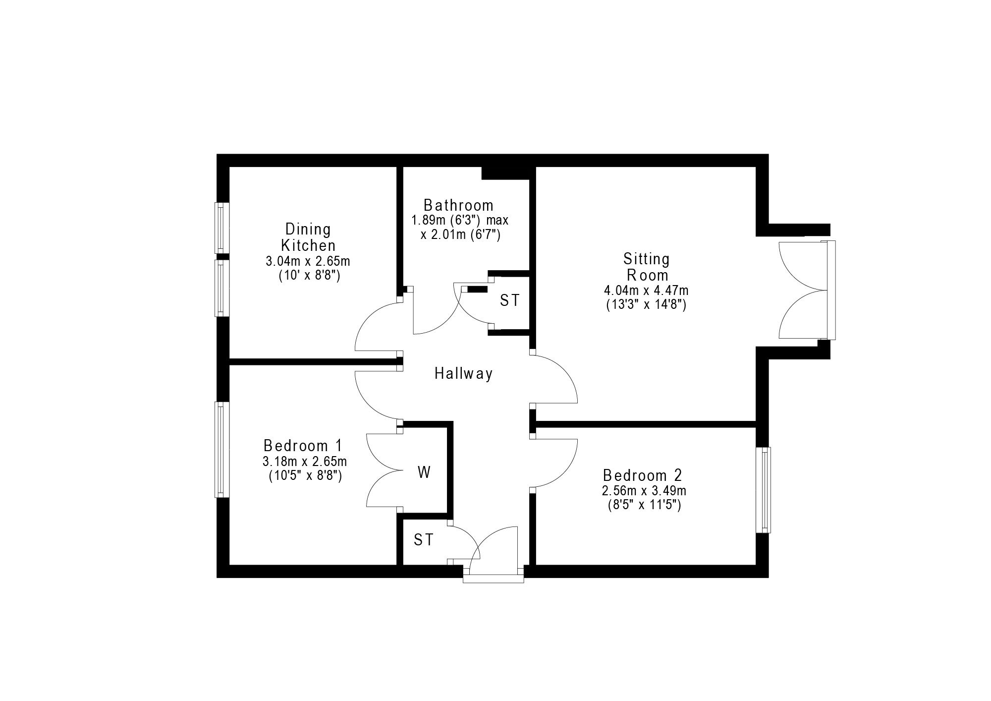 Bedroom Two 11’5” x 8’5” 3.48m x 2.57m
