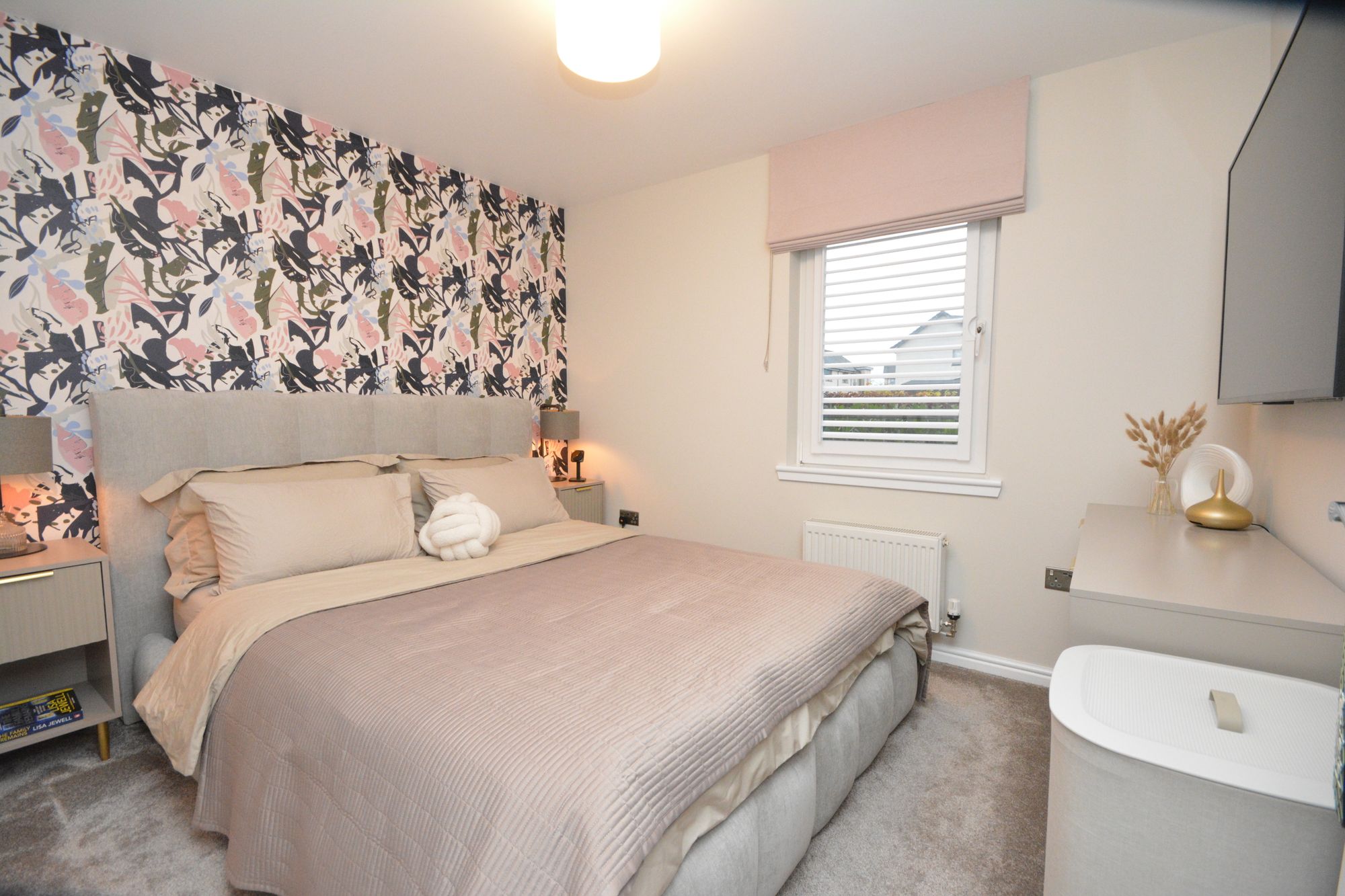 Immaculately presented lower flat located within Larbert’s highly regarded Kinnaird development. The subjects are set within shared residents gardens with block paved parking area to rear.
