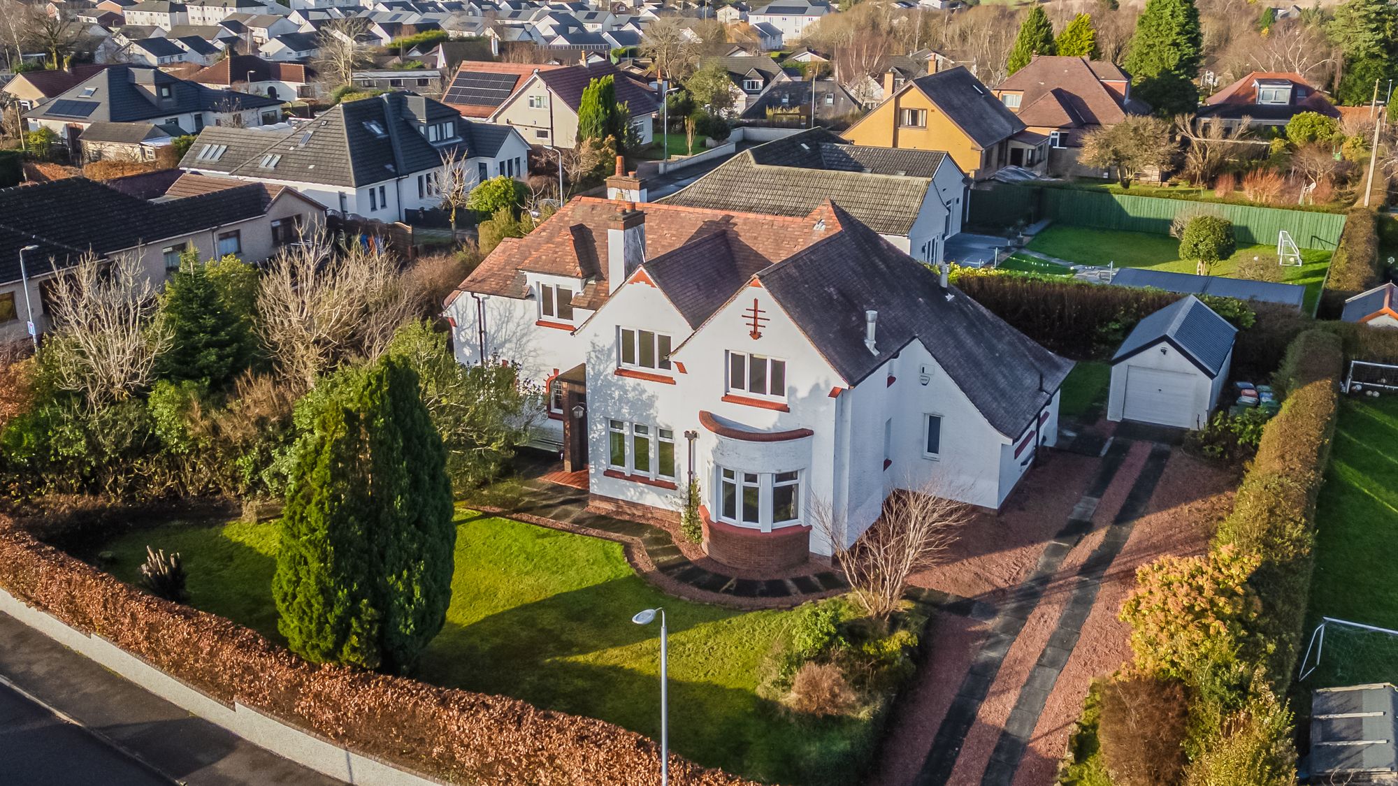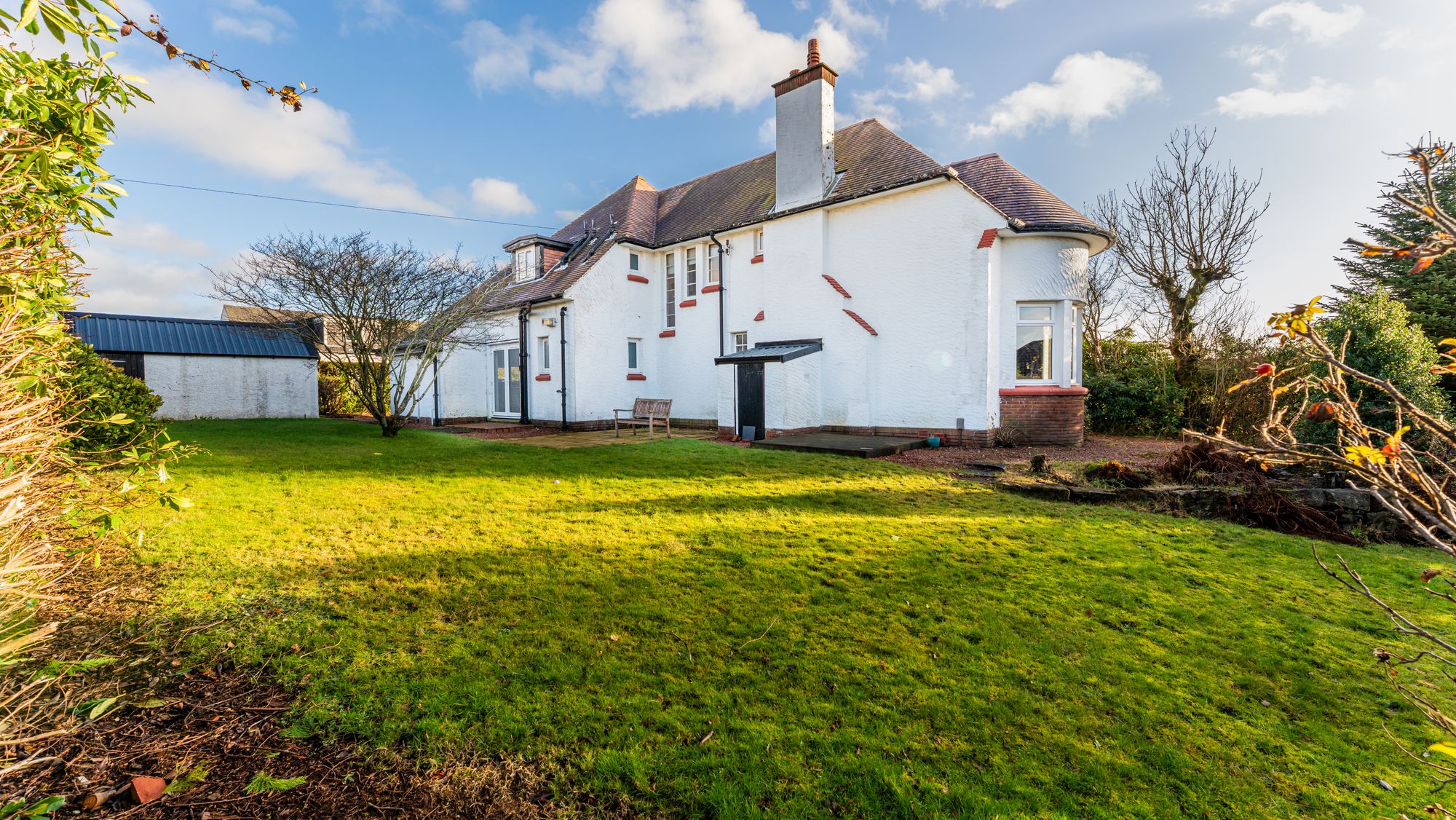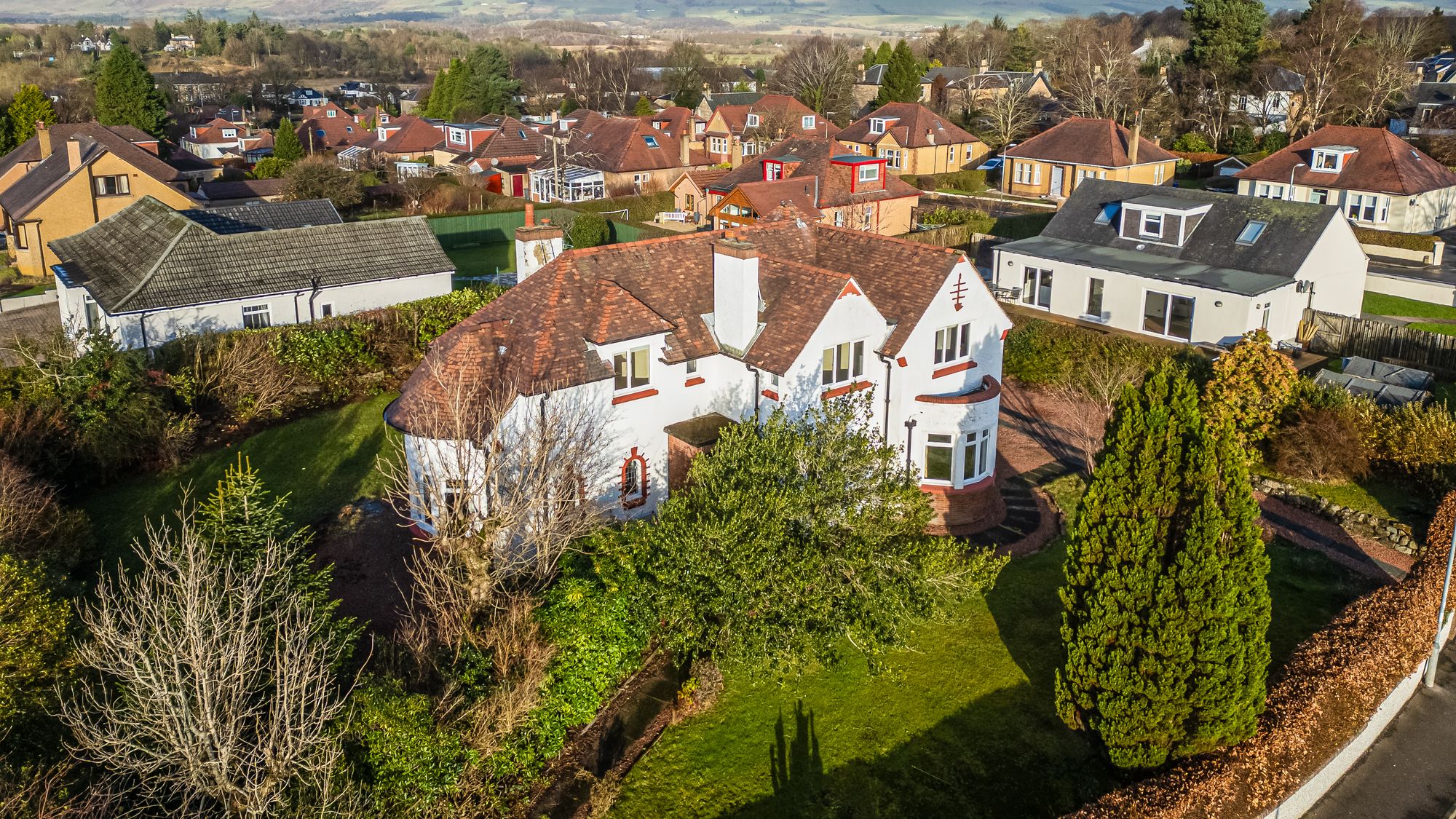 Number 2 Roman Road sits in a quiet residential suburb of Kirkintilloch and presents as a handsome five bedroom detached Edwardian villa with spectacular views towards the Campsie Fells. This former Manse is rich in traditional features and offers expansive, versatile accommodation arranged over two levels. The home is further enhanced by a modern dining-kitchen extension complete with integrated appliances.