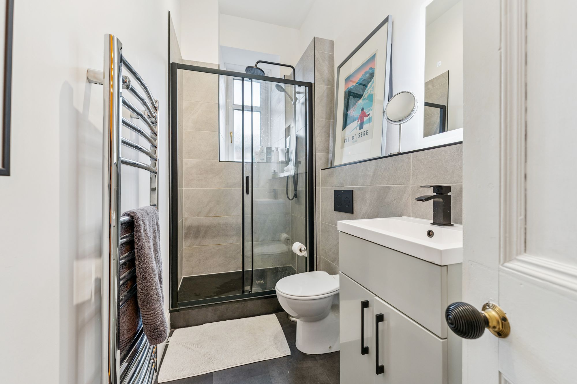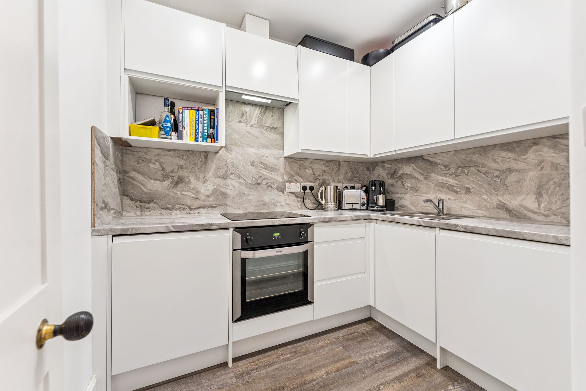 The flat has been refurbished a few years ago to a high specification throughout, ensuring a modern and stylish living space. Upon entering, you are greeted by an entrance hallway with a storage cupboard off to keep your belongings organised, in addition there is a utility cupboard beside the kitchen. The beautiful bay windowed lounge with centre piece fireplace has additional side windows to either side of bay providing more natural light. Modern refitted kitchen, which boasts high-end units and integrated appliances. Adding a touch of elegance the house has quality floor and replacement radiators. There are two spacious and well-proportioned double bedrooms, providing ample room for relaxation and rest. The luxury shower room is fitted with a fresh white three-piece suite and shower cubicle. The property has double glazed windows, ensuring excellent insulation and noise reduction. Additionally, electric central heating and a security controlled entrance provide comfort and peace of mind. The communal areas, include the rear gardens.