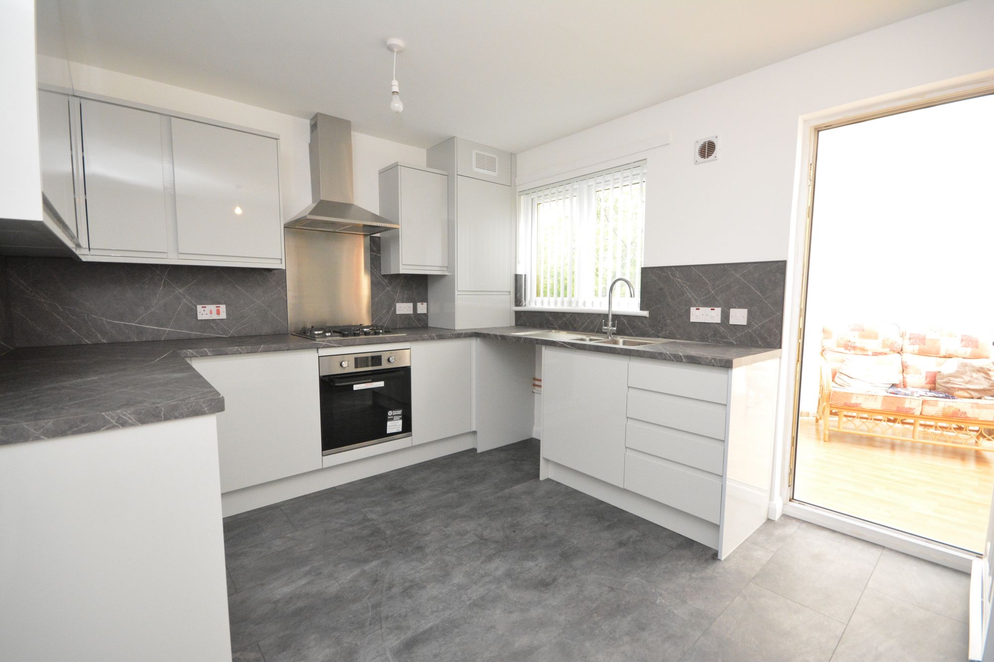 Originally constructed by Wimpey Homes the property provides well planned accommodation formed over two levels. Access is through a reception hallway with stairway to upper apartments. The sitting room is a front facing apartment which allows access to the fully refitted dining kitchen which has an integrated oven, hob and extractor hood. The kitchen has a large walk in storage cupboard off and rear door leading to the conservatory.