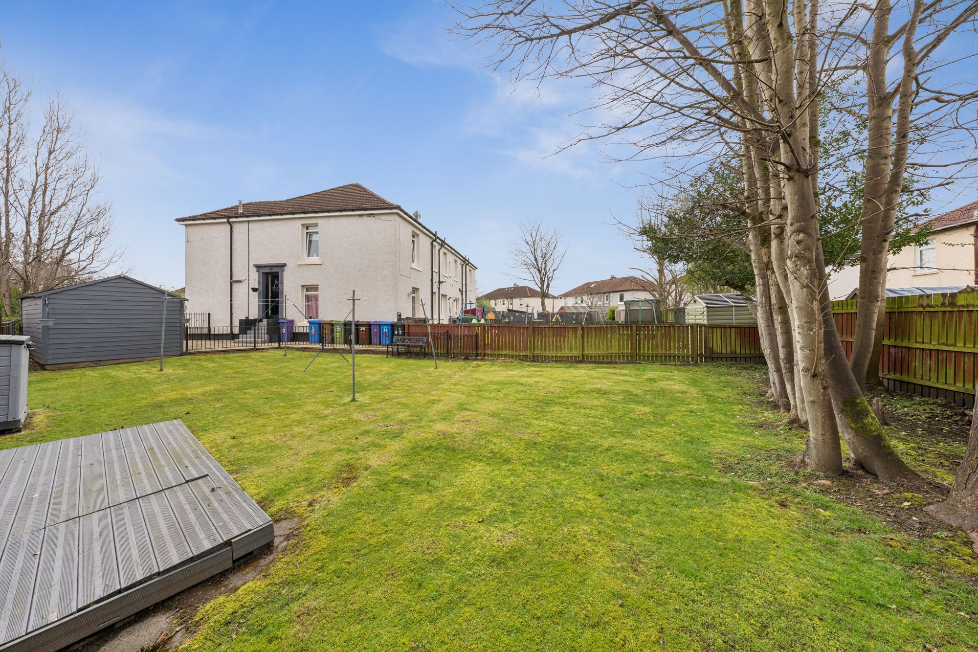 The attached photographs, floor plan and HD video tour will give an indication to the size and layout of the flat. However, in brief the accommodation extends to; welcoming entrance hallway with storage off, spacious living room with space for dining, a newly fitted kitchen with base and wall mounted gloss units and integrated appliances. There are three bedrooms, two of which are comfortable doubles including a bay windowed principal room. The accommodation is completed by a modern shower room with large walk-in shower. The back garden is undoubtably one of the main selling points. It is a fantastic size, fully enclosed and is made up a large lawn and decked patio area making a perfect area for children to play.