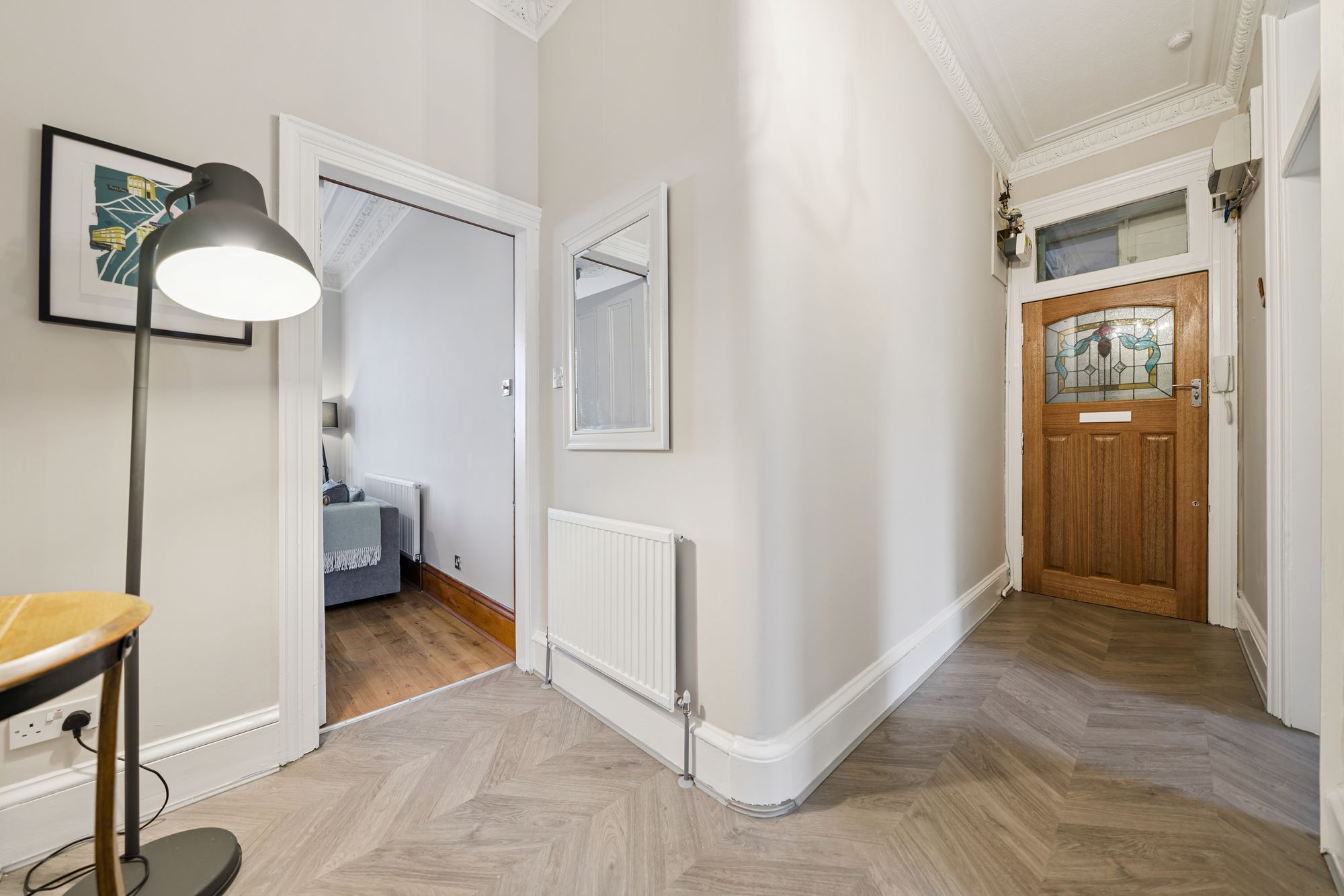The property further benefits from gas central heating, double glazing, a secure entry system, a well-kept communal close and access to a shared residents’ garden to the rear. A number of traditional features have been retained, including stripped doors and woodwork, which blend nicely with the more modern finishes throughout.