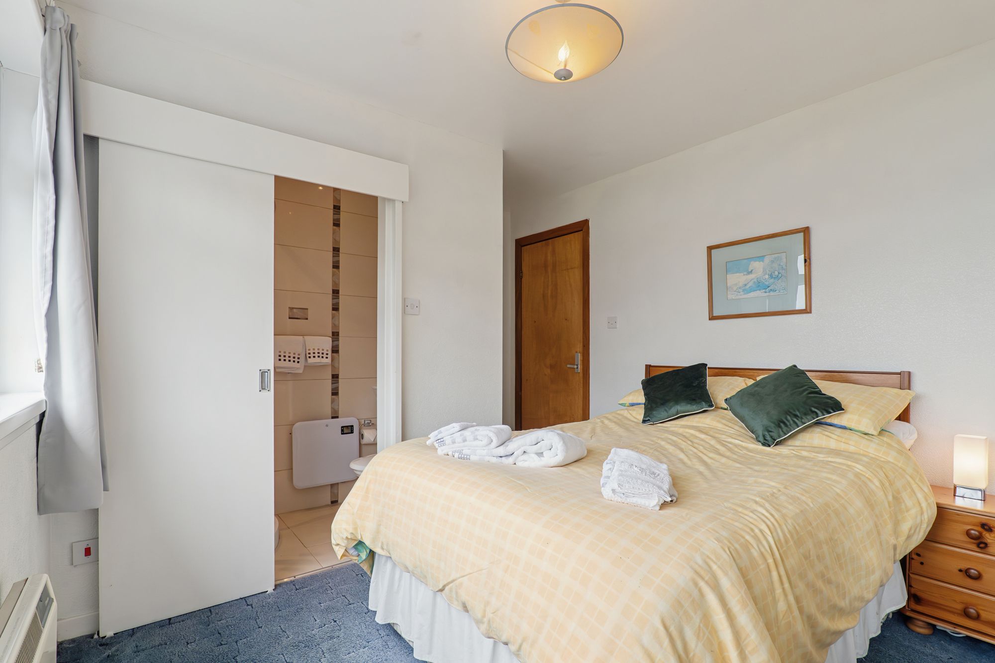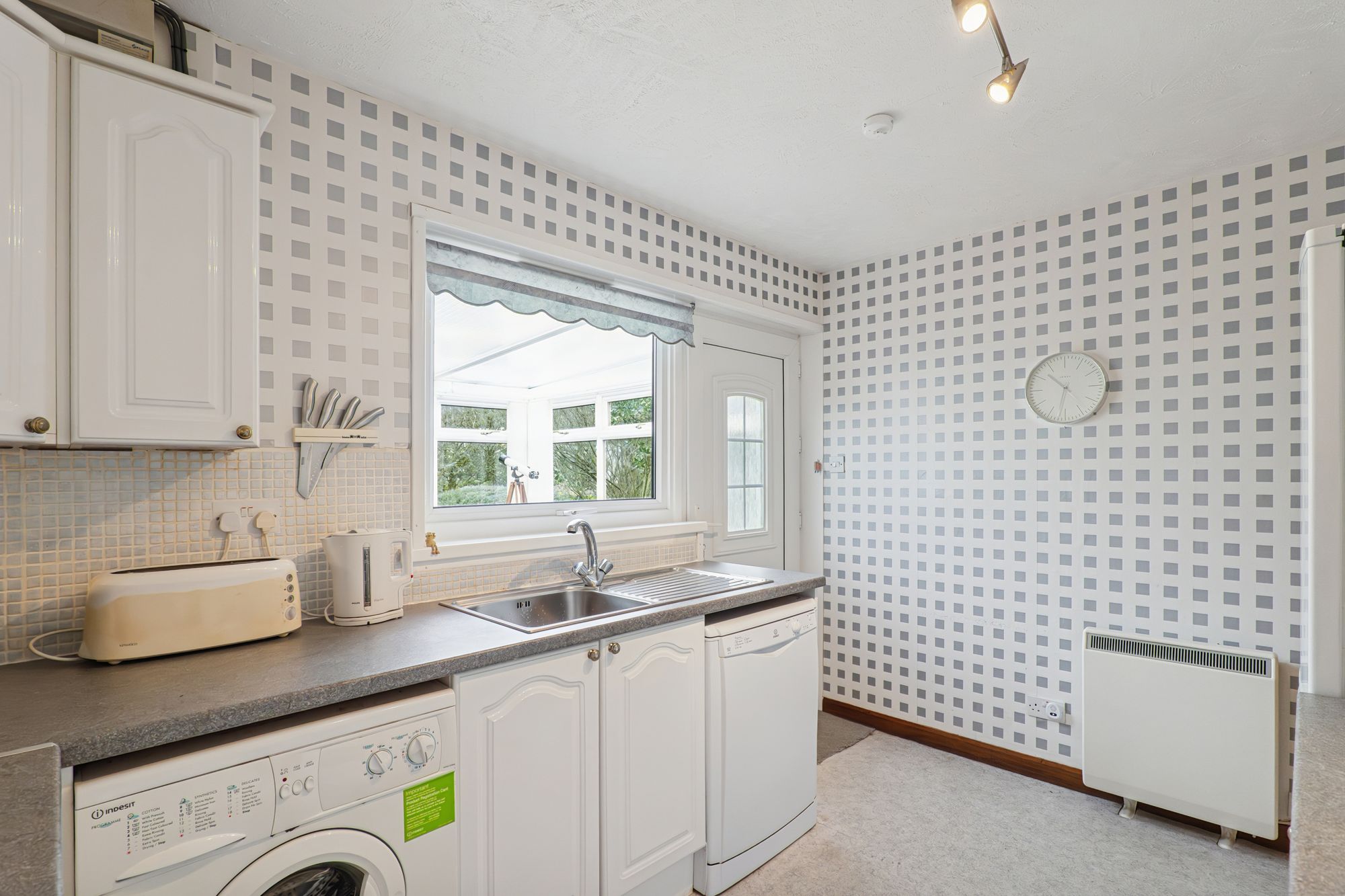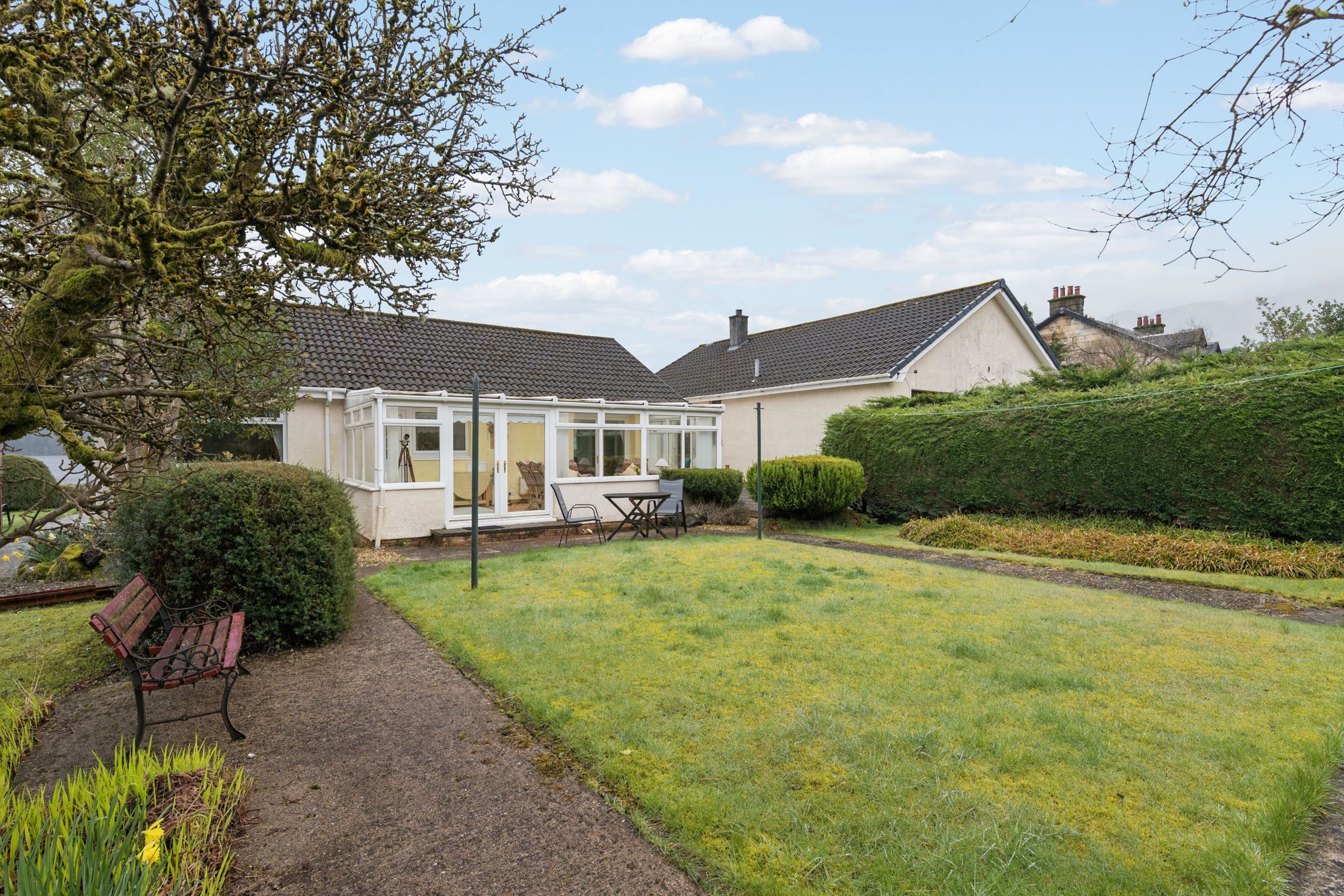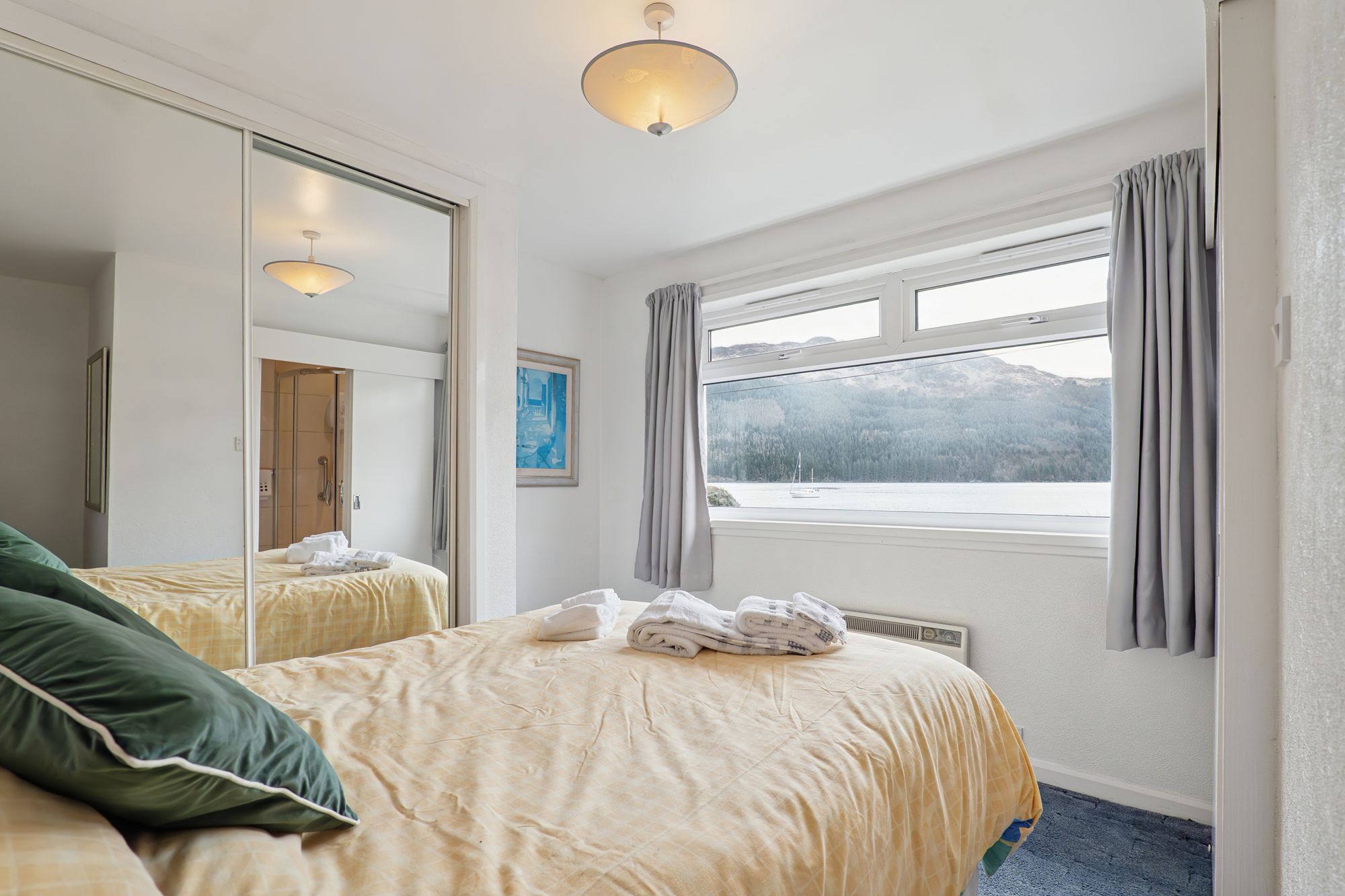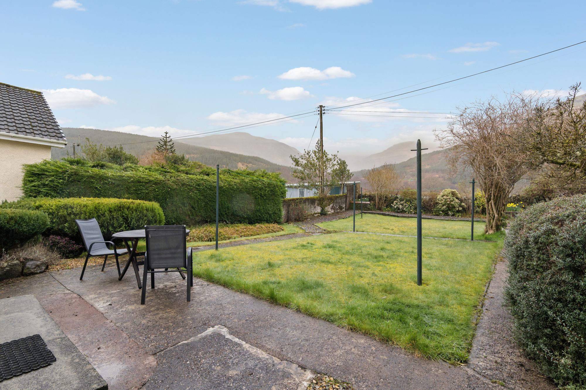 Internally, the accommodation is both well proportioned and thoughtfully arranged. An entrance vestibule leads into an L-shaped hallway, which benefits from useful storage cupboards and access to the loft. The lounge/dining space is of a generous size and provides ample space for both living and dining furniture with stunning views over Loch Goil. From here, access is gained to a large rear facing conservatory, perfectly positioned to take full advantage of the spectacular hillside views over the rear gardens. This bright and welcoming space is ideal for relaxing, entertaining, and occasional quirky sleep-over space or simply for enjoying the scenery throughout the seasons. The kitchen is conveniently located and well laid out to serve the main living accommodation. There are two comfortable double bedrooms, each benefiting from built-in wardrobes. The principal bedroom enjoys the added convenience of a compact, fully tiled en-suite shower room fitted with an electric shower. In addition, there is a family bathroom which is partially tiled and fitted with a white three-piece suite and an electric shower. The property further benefits from double glazing and electric heating, ensuring comfort throughout the year. The attic is insulated and accessed via a metal Ramsay-style loft ladder, offering additional storage space. Externally, there is parking to the front of the property with lawn overlooking the water, while the mature and well-proportioned rear gardens back directly onto open fields and the surrounding hillsides. This provides a wonderful sense of privacy and connection to the natural landscape.