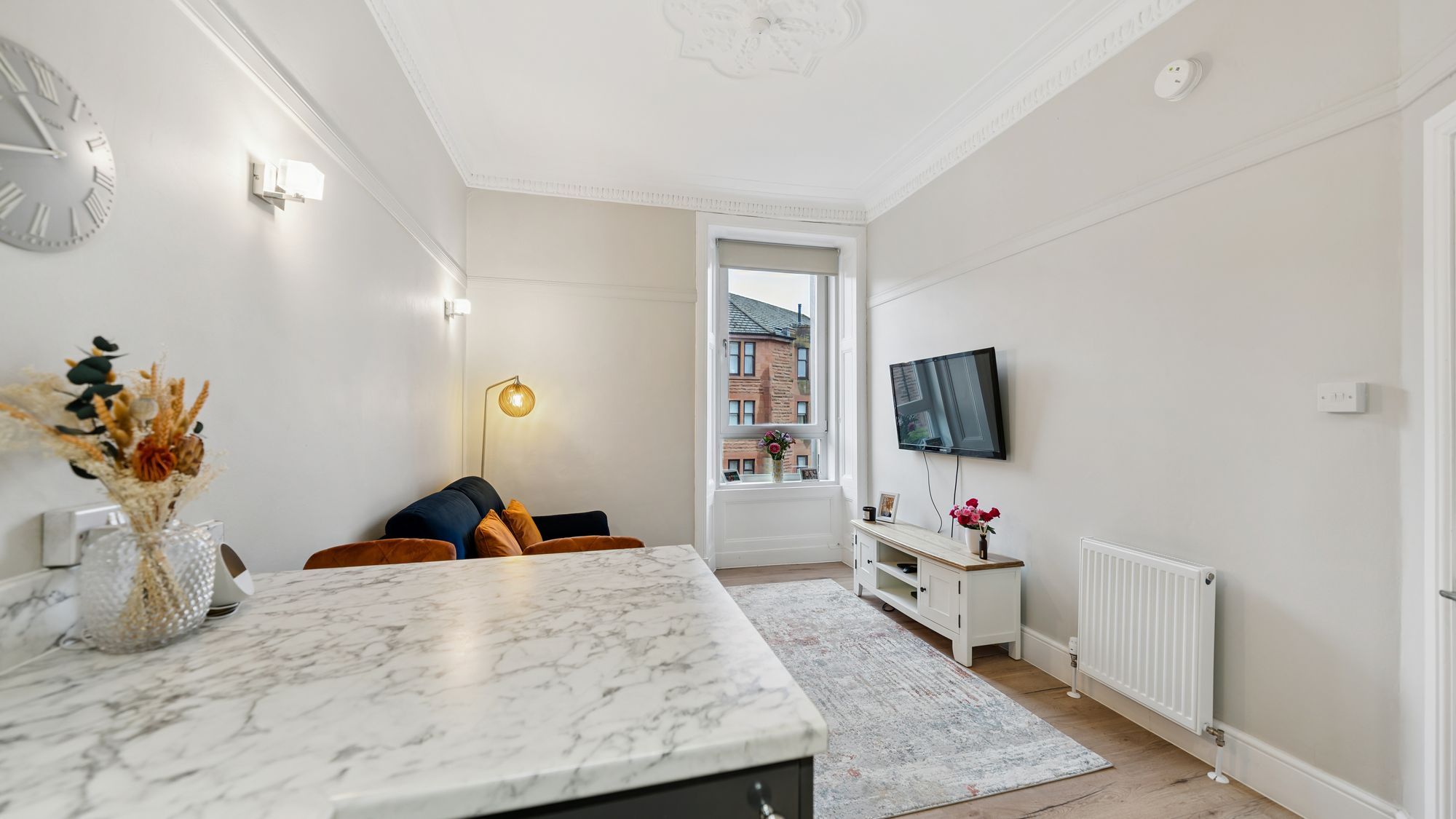 Situated on Garry Street, the flat enjoys a superb location close to a wealth of amenities. Residents are only moments from Shawlands’ thriving cafés, bars, delicatessens, and restaurants, as well as a variety of local shops and supermarkets. Excellent public transport and motorway links offer easy travel to Glasgow City Centre and beyond, making this an ideal home for commuters and city lovers alike.