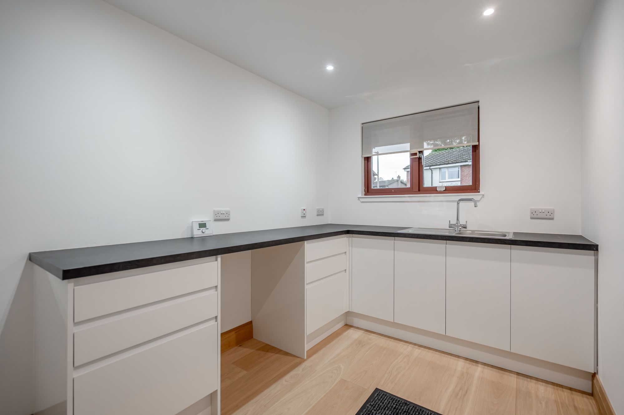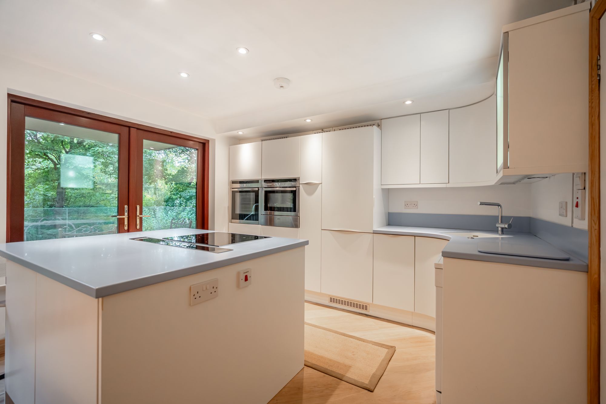Stairs take you down to the spacious dining kitchen. The well equipped kitchen has integrated appliances and large kitchen island. There is also a utility room on this level which has an additional sink as well as providing extra storage space.