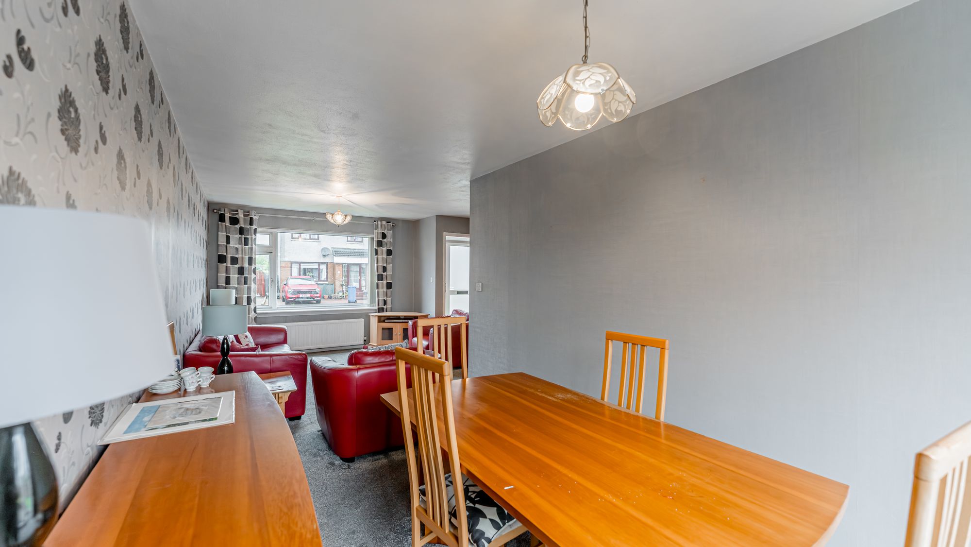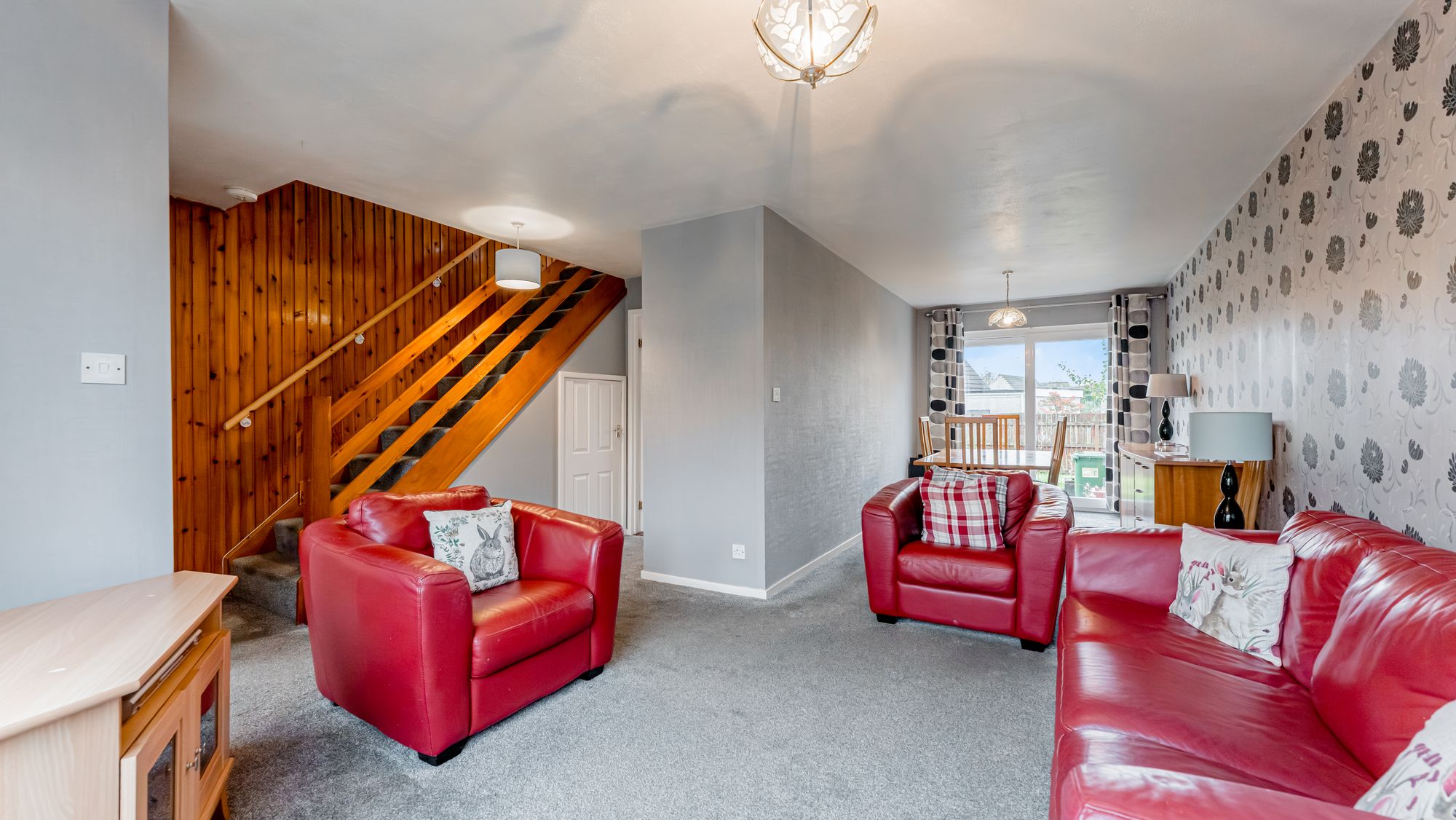The well-proportioned accommodation boasts a spacious living room to the front of the property that is open plan to the south-facing dining area to the rear. A breakfasting kitchen with a range of wall and base mounted units and convenient rear door completes the ground floor accommodation. On the upper landing there are three generously sized bedrooms all of which with integrated storage. Completing this lovely home is a three-piece family bathroom with shower over bath . The property further benefits from double glazing, gas central heating, private driveway with garage parking and leafy gardens.
