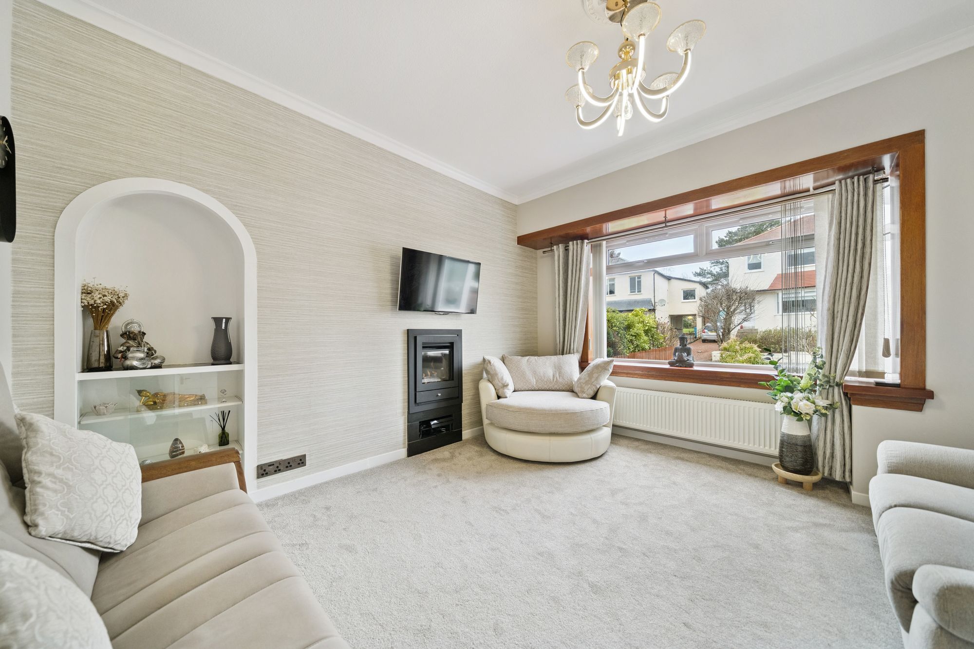Immediately welcoming upon entry, the property is notably spacious and finished throughout in a fresh and neutral decorative tone. Our 3D Virtual Tours, HD Videos and Floorplans will provide a better idea of form and layout, however, a summary of the accommodation extends to; bright and practical entrance porch, reception hallway with ascending staircase and storage off, impressive formal lounge with feature fire and surround at focal point which opens via twin glass doors, optionally, in to a similarly spacious dining / family room, comprehensively fitted breakfasting kitchen with ample space for family dining, ground floor bedroom which might lend alternate purpose as a study and a re-fitted shower room hosting a modern suite and vanity storage.