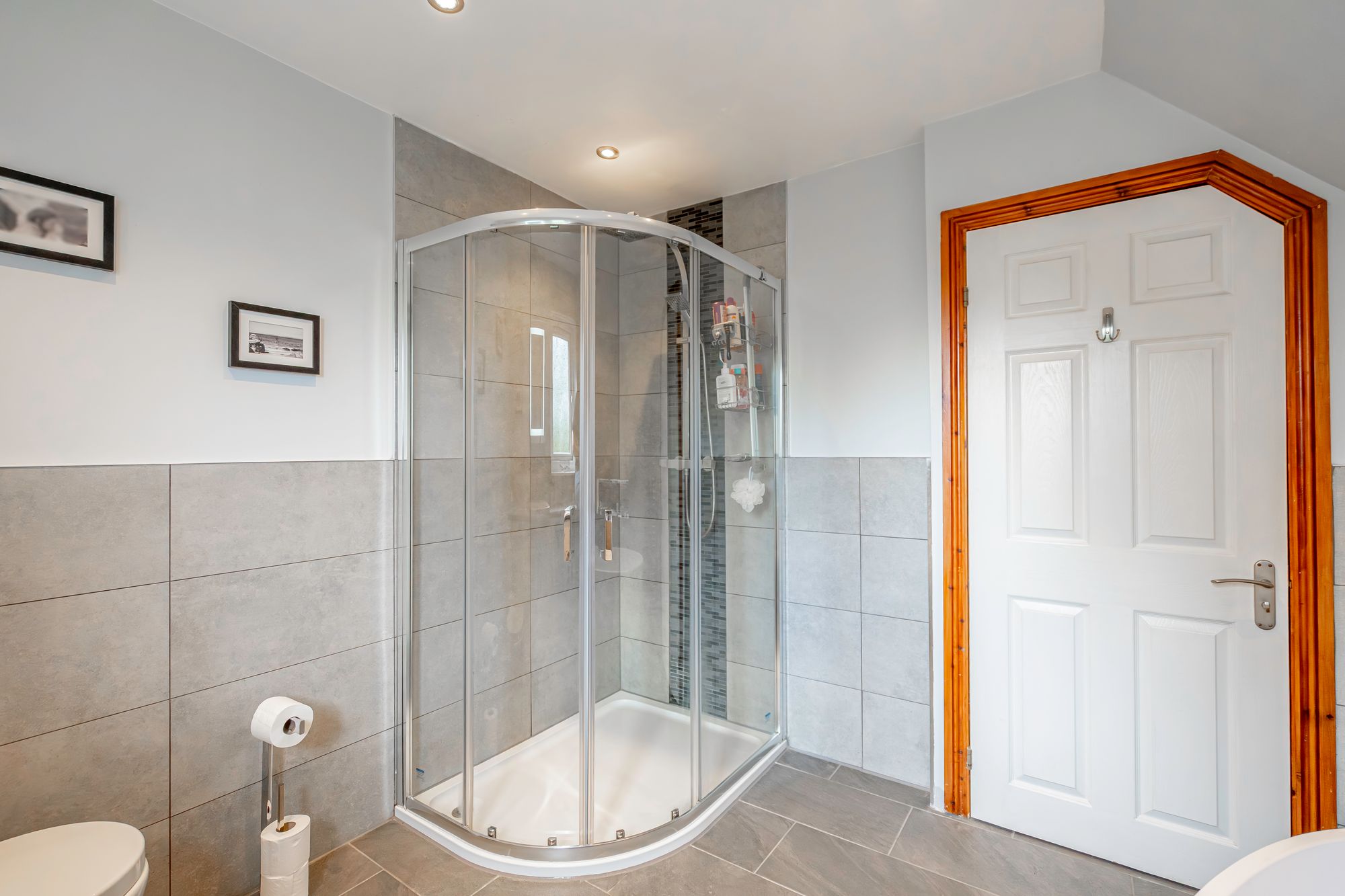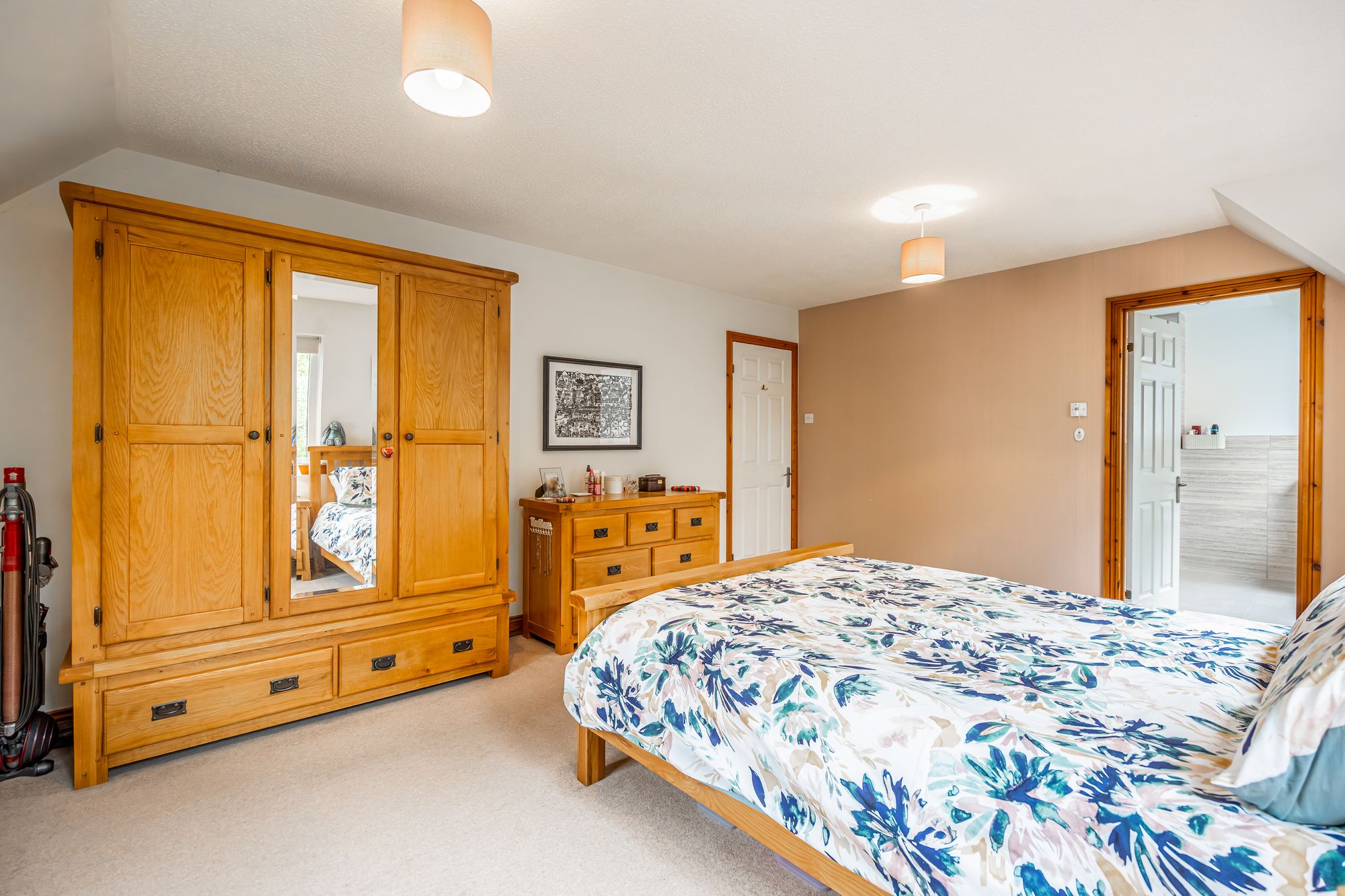 The first floor is accessed via a staircase leading to a spacious landing that connects to all upper-level rooms. The master bedroom is a generously proportioned double room that benefits from its own en-suite shower room, providing a private and comfortable retreat. Three further bedrooms offer flexibility for family use, guests, or additional office space, and are served by a modern family bathroom fitted with a three-piece suite.