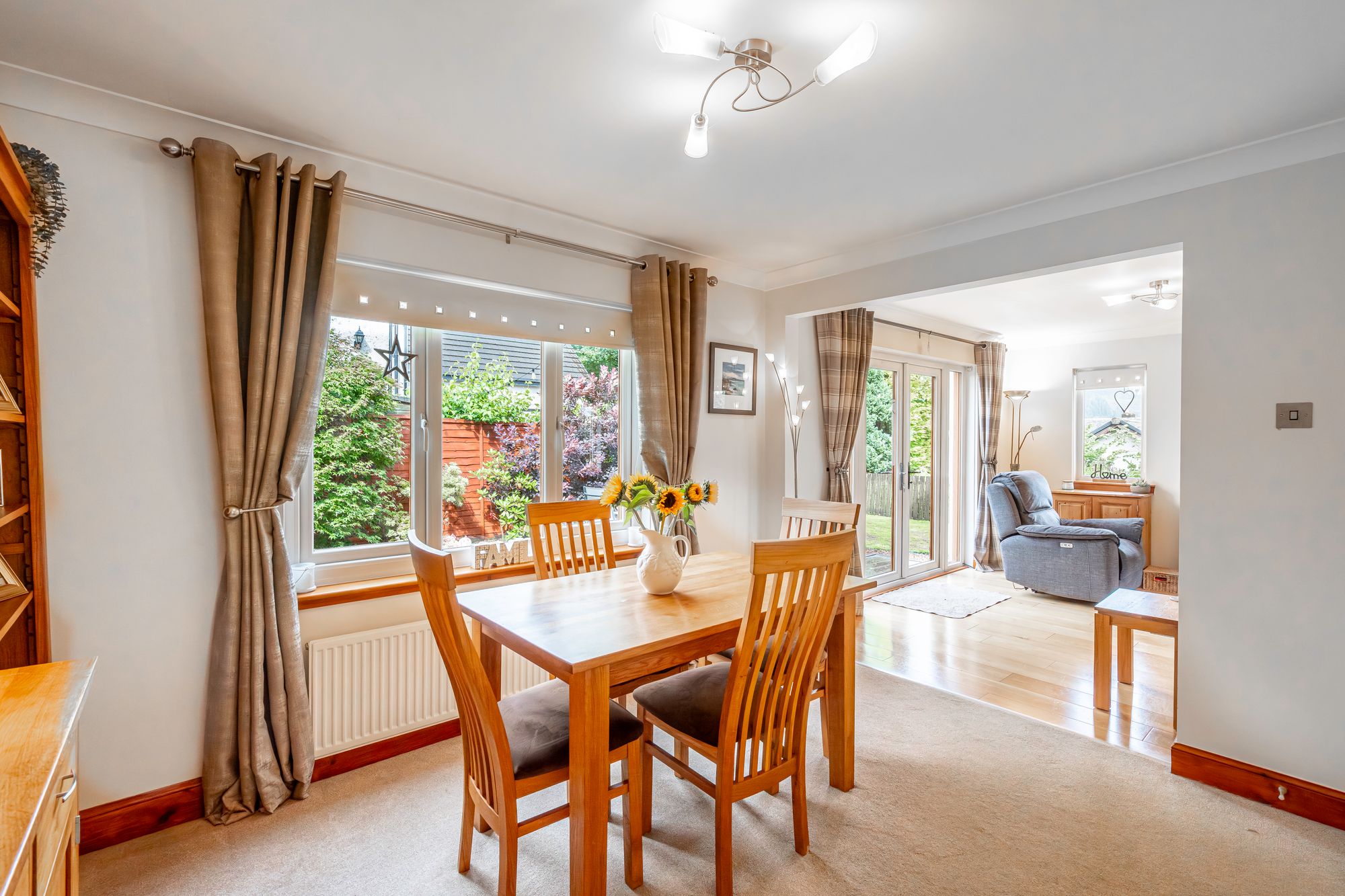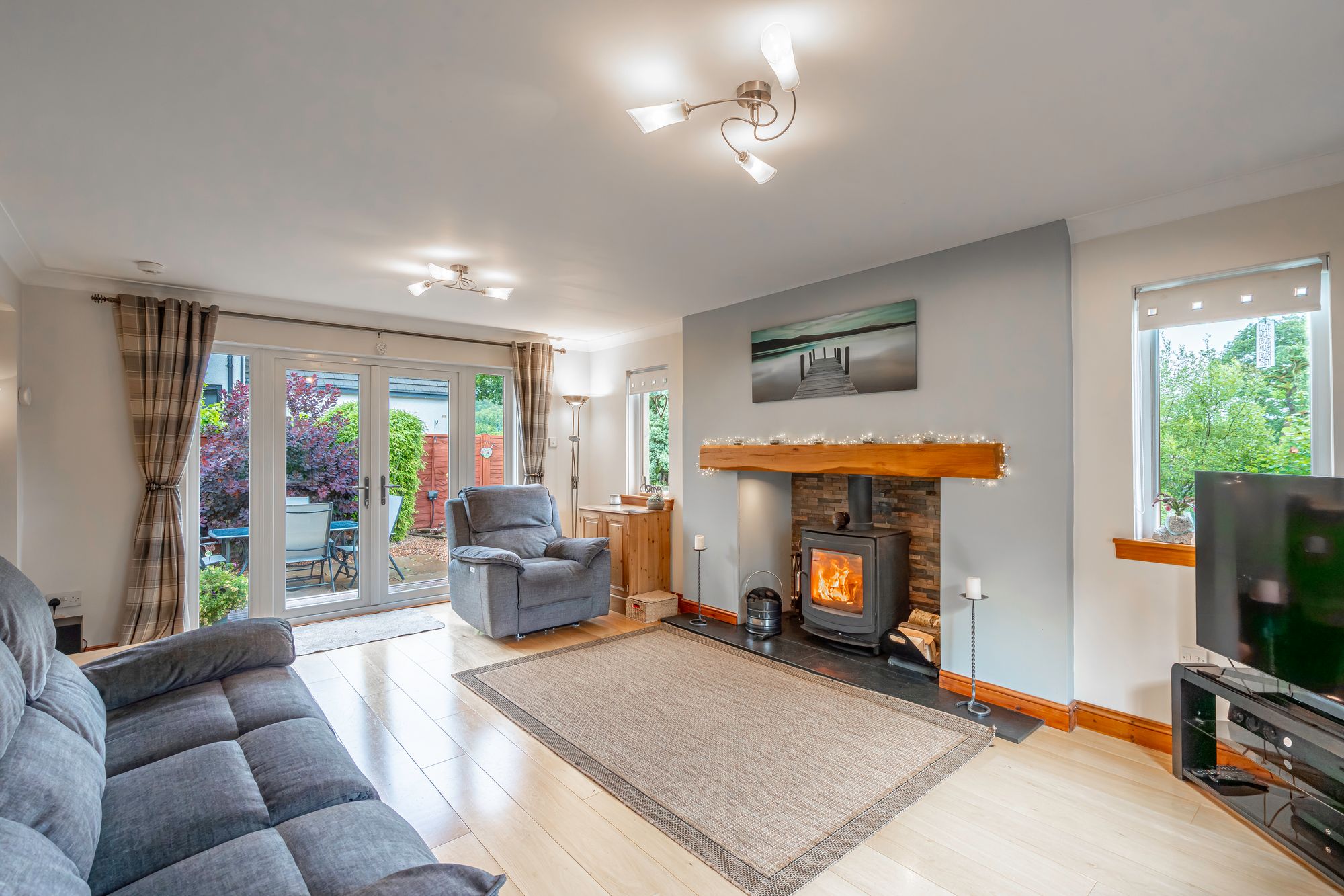 Externally, the property enjoys a private position within a quiet residential neighbourhood known for its charm and community feel. A private driveway provides off-street parking for up to four vehicles, adding further convenience for family living or visiting guests. The location provides easy access to the many local amenities Aberfoyle has to offer, including shops, cafés, schools, and recreational facilities. The surrounding countryside offers a wide range of outdoor pursuits such as walking, cycling, and wildlife watching, making this an ideal setting for lovers of nature and outdoor living.