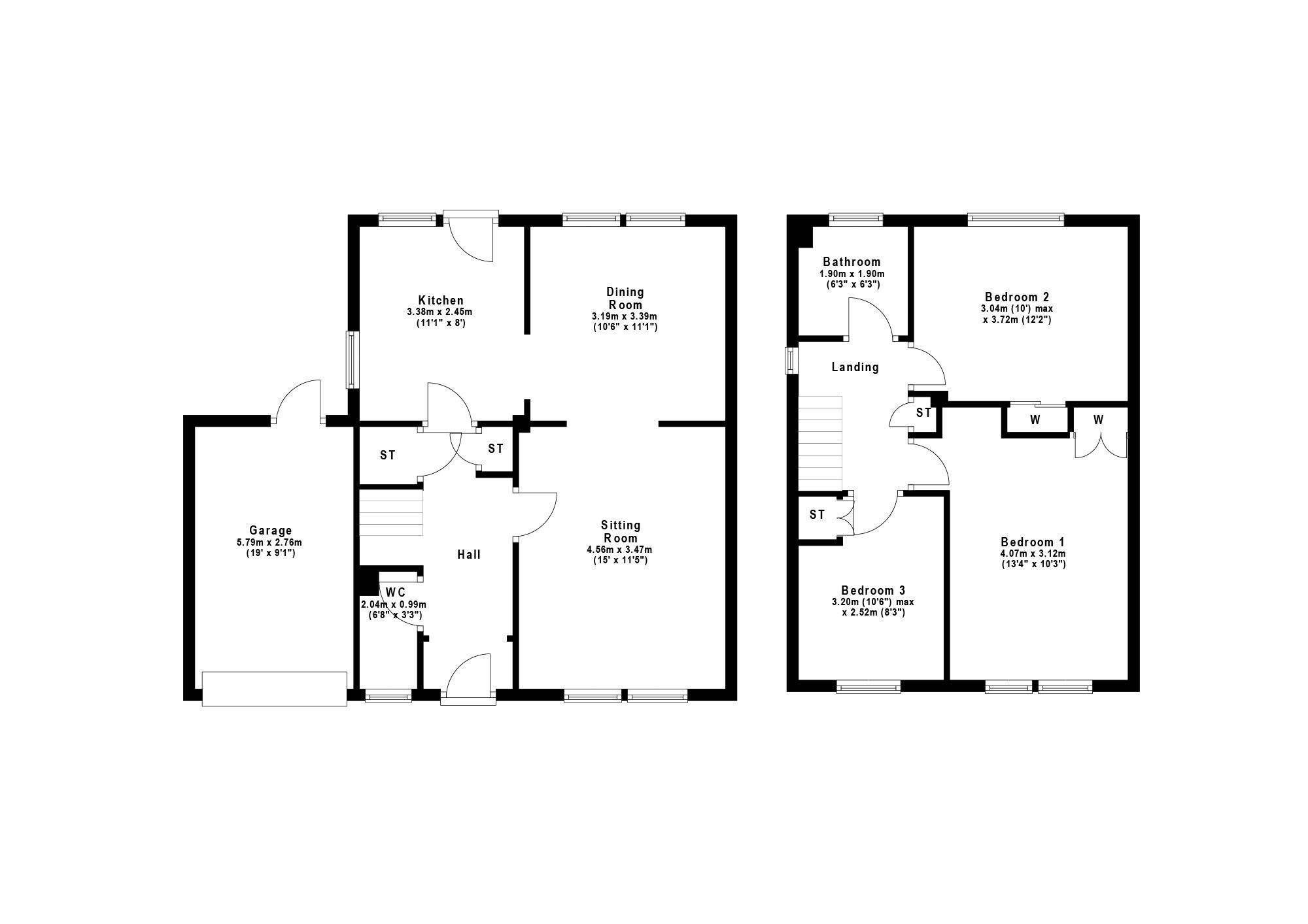 Bedroom One 13’4” x 10’3” 4.06m x 3.12m