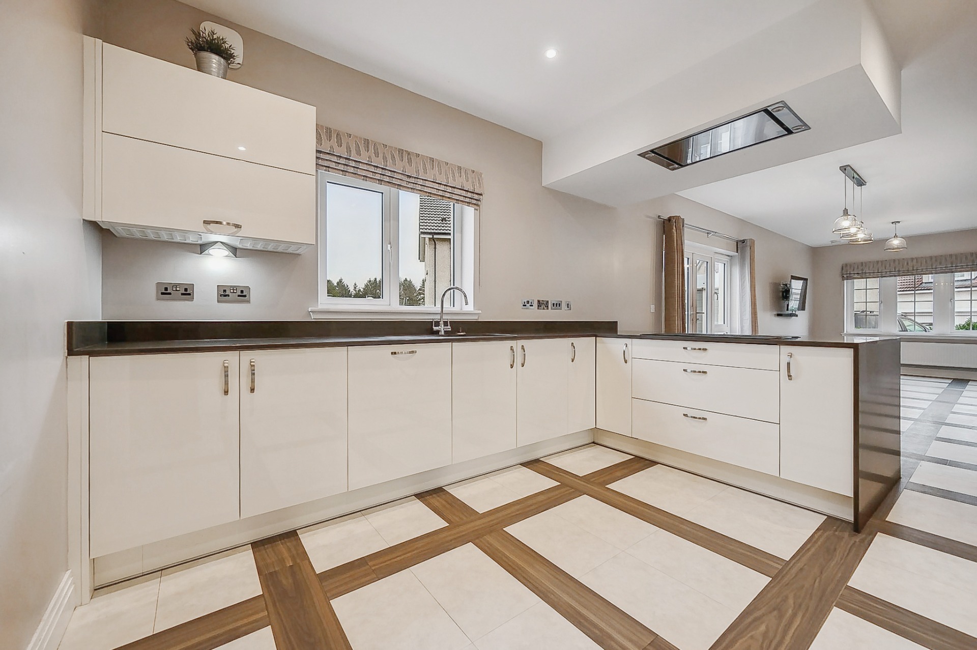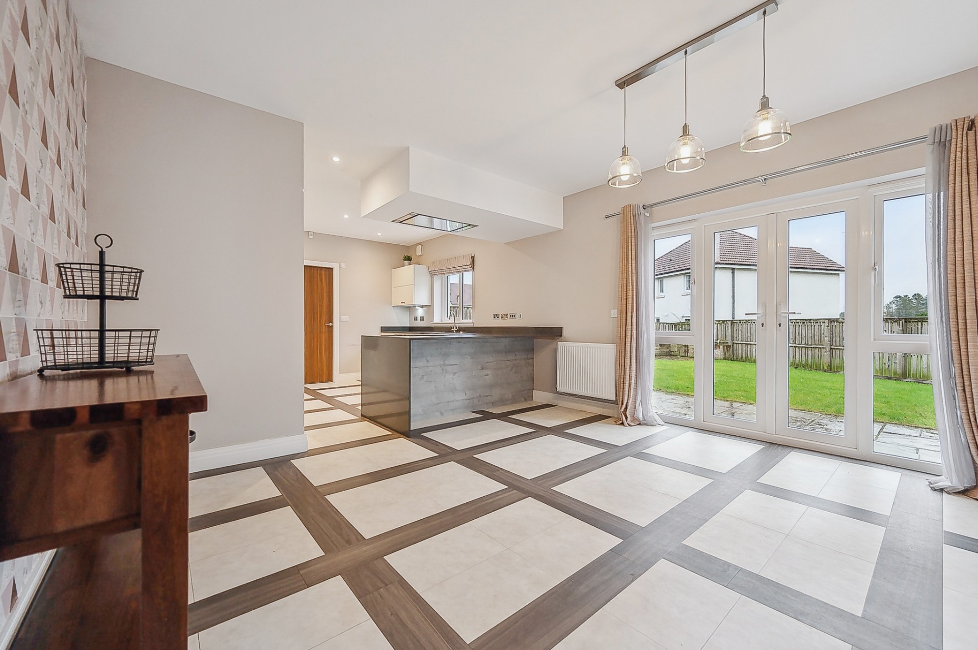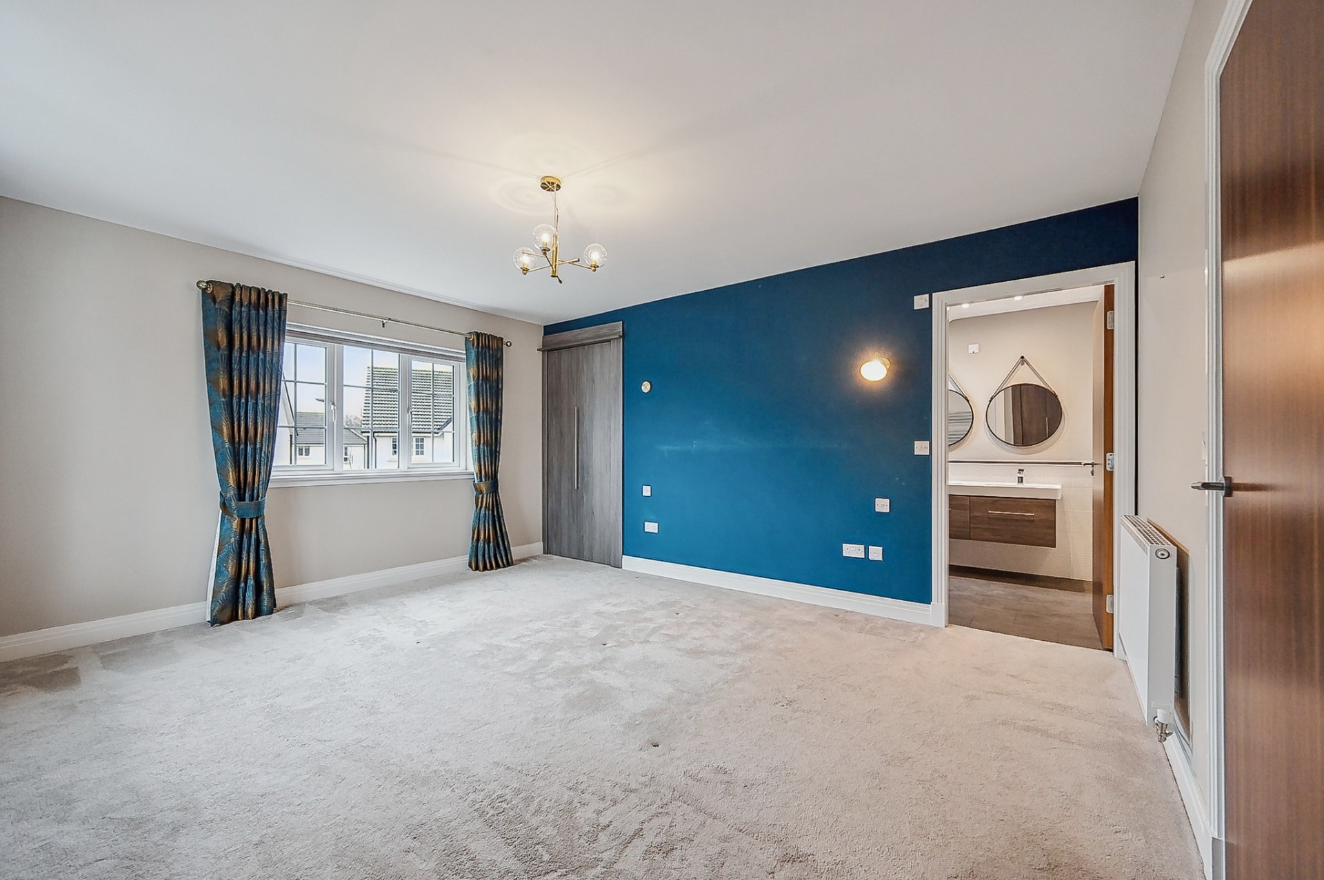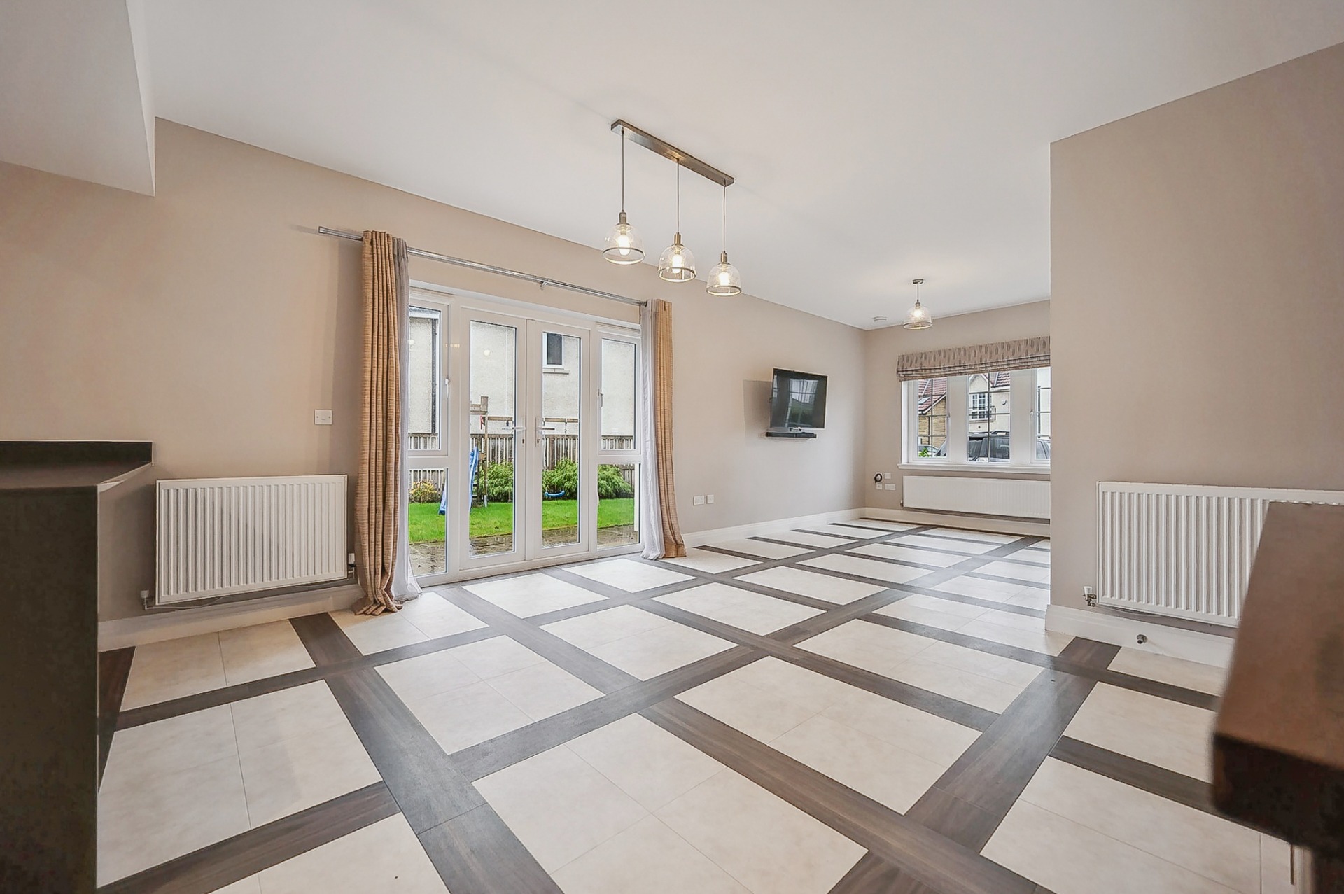 UNFURNISHED/AVAILABLE NOW This impressive five-bedroom Cala built detached family home is located within the 'Kilmardinny Manor' development in Bearsden and is within the catchment zone for Bearsden Primary School and Bearsden Academy High School . The property is decorated in contemporary neutral tones and not only offers versatile and spacious living accommodation, but an abundance of storage space throughout. The accommodation extends to : entrance vestibule with cloakroom cupboard off, welcoming reception hallway with French glass doors leading to the triple-aspect formal lounge with feature white marble fireplace. Undoubtedly though, the heart of the home is the sizeable and beautifully appointed dining kitchen which is open-plan in layout and bathed in sunlight. At one end of the space is a cosy lounge area with wall mounted TV, and at the other is the modern fitted kitchen with cream gloss units, quartz worktops, integrated Bosch appliances, and breakfast bar area. The dining area to the centre is airy and bright, with bi-folding glass doors leading to the completely enclosed and level rear garden with natural Indian stone patio area. Off the kitchen is the practical utility room which is equipped with a 4kg LG washer dryer, an extra fridge/freezer, a sink area, wall and base units, plus another full-height store cupboard. The double garage can also be accessed internally off this space, as can the rear garden. Completing the ground floor accommodation is a downstairs W/C, plus another two useful storage cupboards located off the hall. Upstairs, the home is equally well-appointed with the accommodation comprising 4 double bedrooms (all with built-in wardrobes) and an additional smaller single bedroom which could be utilised as a home office if desired. The master bedroom suite is exceptionally spacious in size and benefits from double the amount of fitted wardrobe space, plus a modern 4-piece ensuite shower room with 'his and hers' sinks. Bedroom Two is also generously sized and equally benefits from its own ensuite shower room, and finishing the 1st floor accommodation is the luxurious family bathroom which is laid to tile throughout and enjoys a four-piece Laufen suite. Further benefits of the home include : Gas Central Heating, Double Glazing, Monoblock Driveway Parking, and CHUBB Security Alarm system. Located just off Milngavie Road, Dalgleish Drive is a short walk from the local beauty spot of Kilmardinny Loch, with other outdoor walking and cycling pursuits to be enjoyed at the Craigmaddie Reservoir in Milngavie and Mugdock Country Park just beyond. Bearsden. EPC Band - B Council Tax Band - G Landlord Registration Number - 1648785/200/31082 & 1648787/200/31082 Clyde Property Scottish Letting Agent Registration No. LARN1902033
