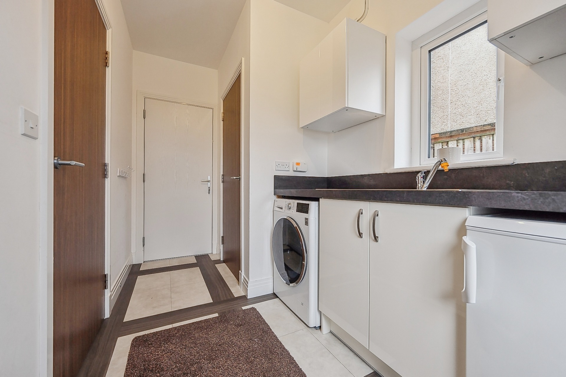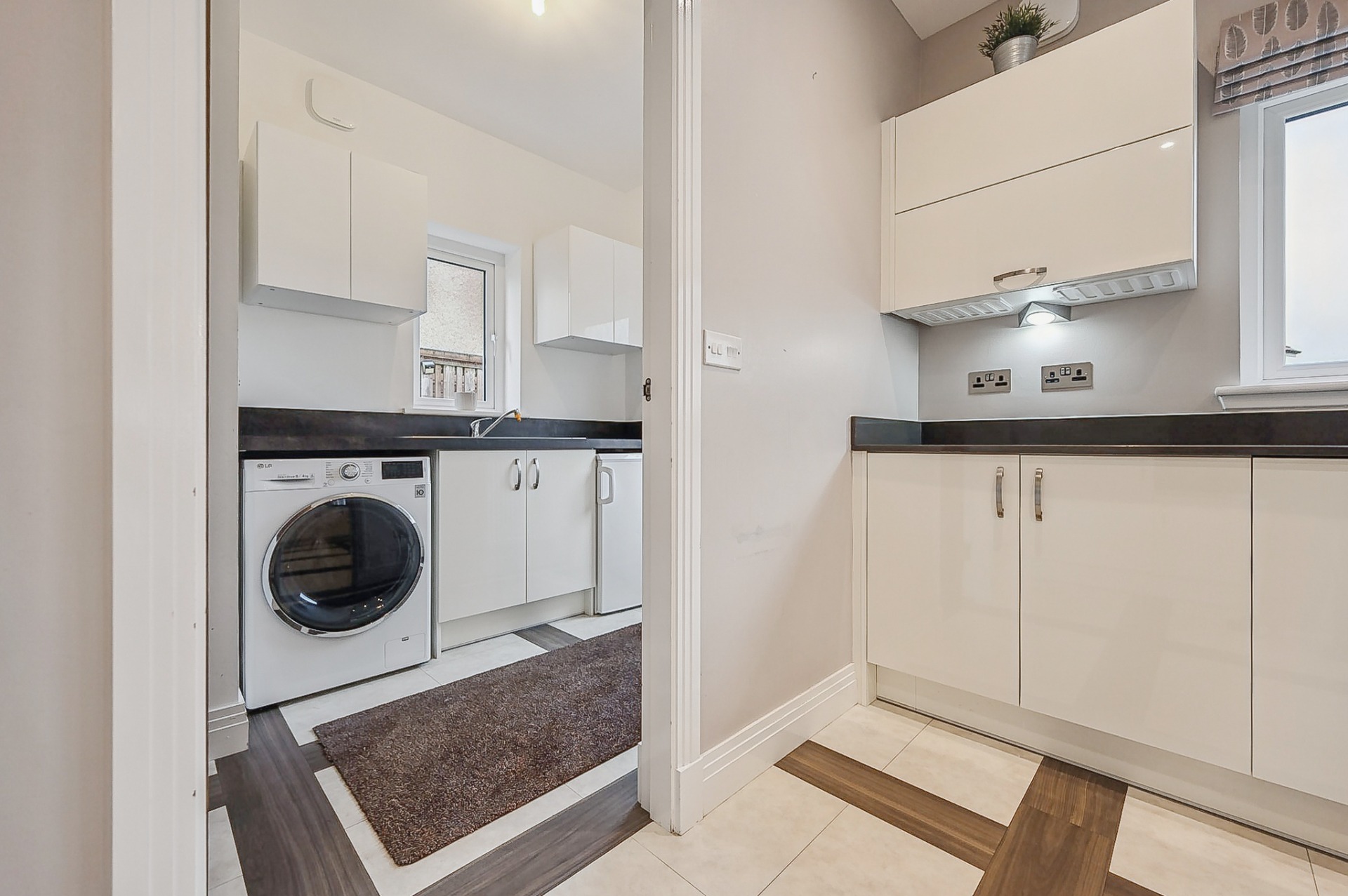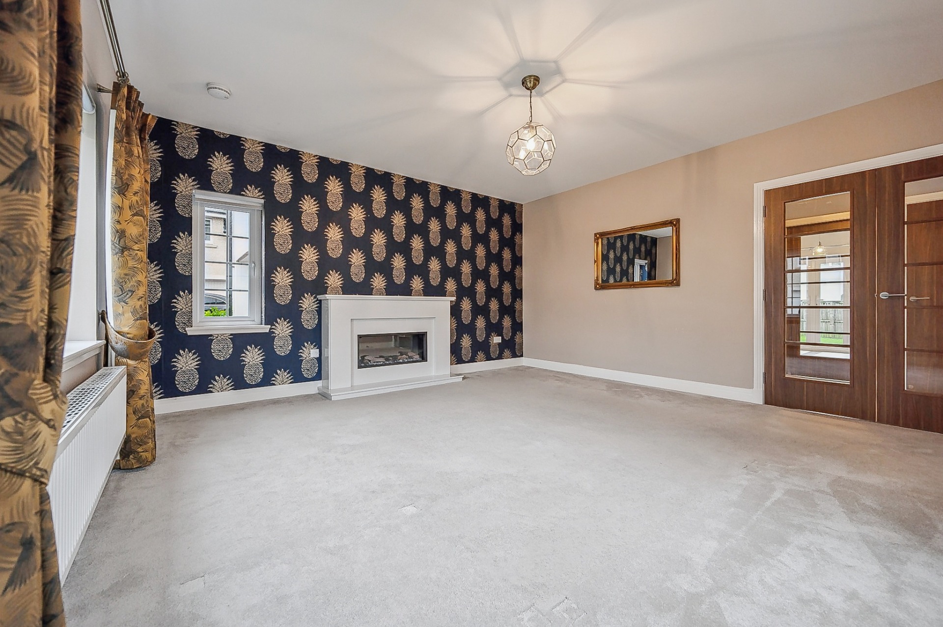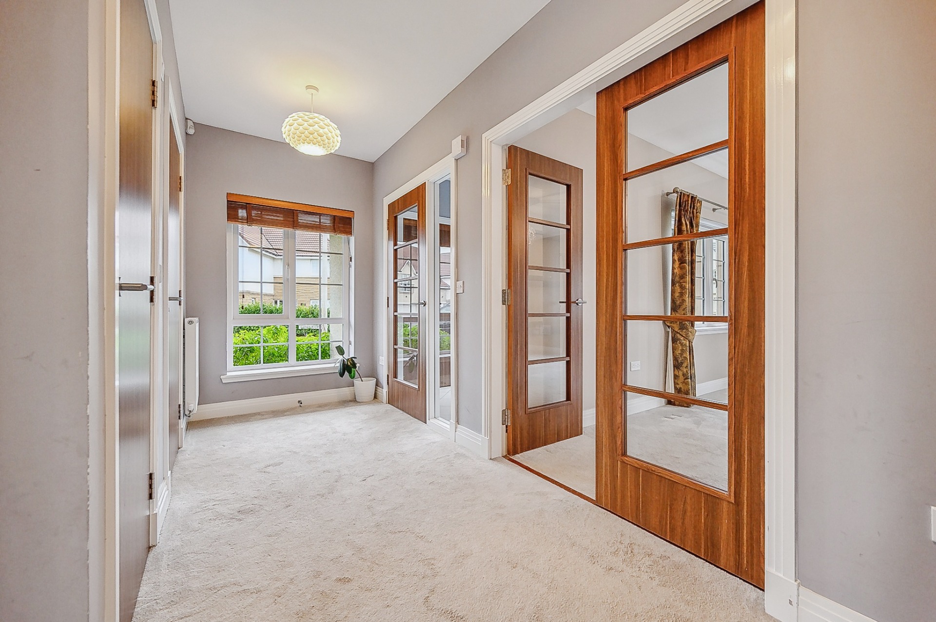UNFURNISHED/AVAILABLE NOW This impressive five-bedroom Cala built detached family home is located within the 'Kilmardinny Manor' development in Bearsden and is within the catchment zone for Bearsden Primary School and Bearsden Academy High School . The property is decorated in contemporary neutral tones and not only offers versatile and spacious living accommodation, but an abundance of storage space throughout. The accommodation extends to : entrance vestibule with cloakroom cupboard off, welcoming reception hallway with French glass doors leading to the triple-aspect formal lounge with feature white marble fireplace. Undoubtedly though, the heart of the home is the sizeable and beautifully appointed dining kitchen which is open-plan in layout and bathed in sunlight. At one end of the space is a cosy lounge area with wall mounted TV, and at the other is the modern fitted kitchen with cream gloss units, quartz worktops, integrated Bosch appliances, and breakfast bar area. The dining area to the centre is airy and bright, with bi-folding glass doors leading to the completely enclosed and level rear garden with natural Indian stone patio area. Off the kitchen is the practical utility room which is equipped with a 4kg LG washer dryer, an extra fridge/freezer, a sink area, wall and base units, plus another full-height store cupboard. The double garage can also be accessed internally off this space, as can the rear garden. Completing the ground floor accommodation is a downstairs W/C, plus another two useful storage cupboards located off the hall. Upstairs, the home is equally well-appointed with the accommodation comprising 4 double bedrooms (all with built-in wardrobes) and an additional smaller single bedroom which could be utilised as a home office if desired. The master bedroom suite is exceptionally spacious in size and benefits from double the amount of fitted wardrobe space, plus a modern 4-piece ensuite shower room with 'his and hers' sinks. Bedroom Two is also generously sized and equally benefits from its own ensuite shower room, and finishing the 1st floor accommodation is the luxurious family bathroom which is laid to tile throughout and enjoys a four-piece Laufen suite. Further benefits of the home include : Gas Central Heating, Double Glazing, Monoblock Driveway Parking, and CHUBB Security Alarm system. Located just off Milngavie Road, Dalgleish Drive is a short walk from the local beauty spot of Kilmardinny Loch, with other outdoor walking and cycling pursuits to be enjoyed at the Craigmaddie Reservoir in Milngavie and Mugdock Country Park just beyond. Bearsden. EPC Band - B Council Tax Band - G Landlord Registration Number - 1648785/200/31082 & 1648787/200/31082 Clyde Property Scottish Letting Agent Registration No. LARN1902033