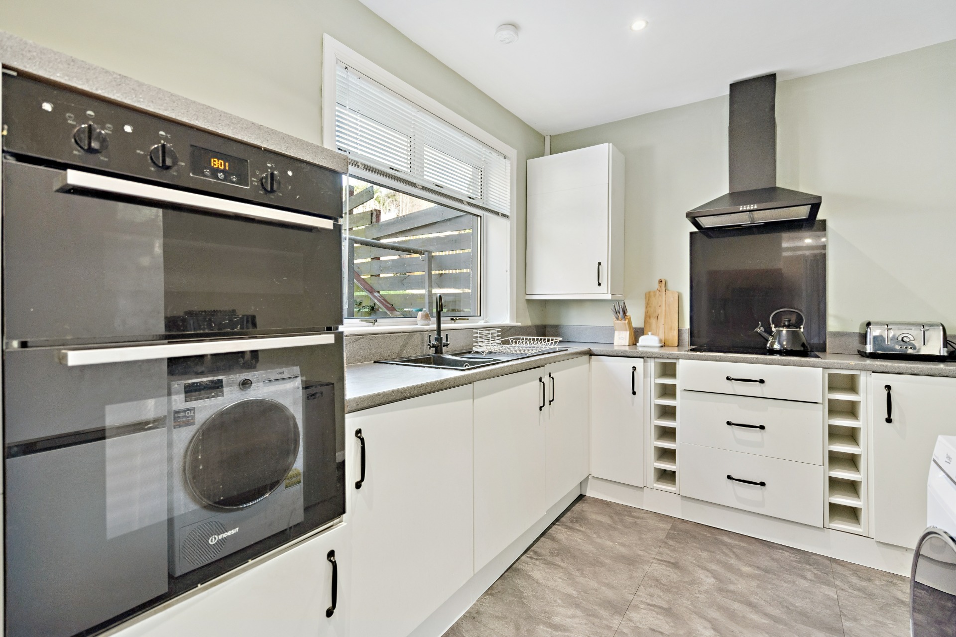 The accommodation comprises a welcoming entrance hallway, a bright and sizeable lounge with ample space for both living and dining, and a well-proportioned kitchen fitted with a range of wall and base units and appliances including washing machine, tumble dryer and fridge freezer. A convenient downstairs WC enhances practicality, while upstairs the property benefits from two large double bedrooms with excellent storage. The contemporary family bathroom is finished to a high standard and features a modern suite with rainfall shower.