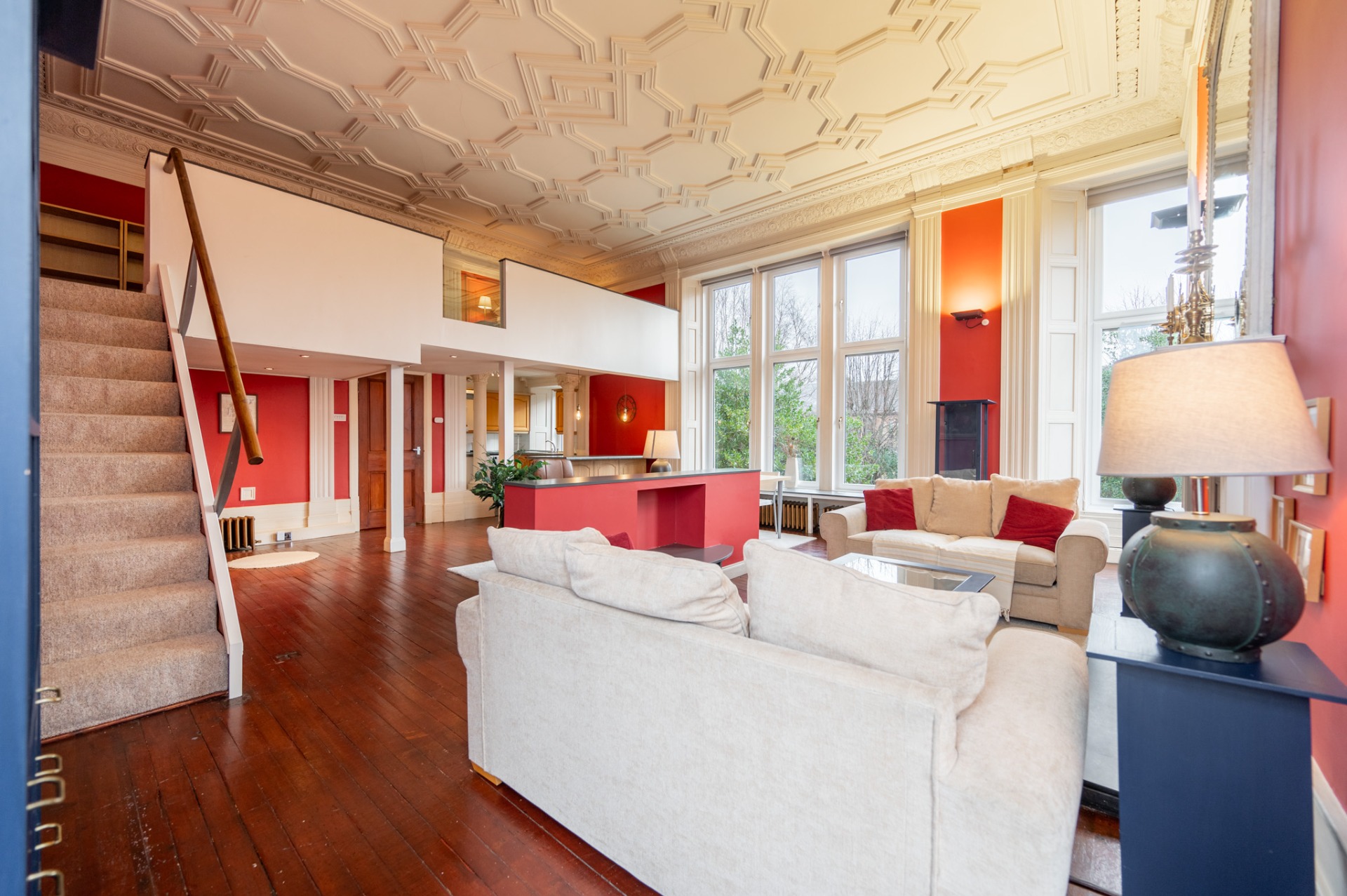 FURNISHED / AVAILABLE DATE BY NEGOTIATION - Clyde property are delighted to offer this beautifully refurbished ballroom apartment with a sandstone villa in leafy Pollokshields. The property has a wealth of period features, is set in mature gardens and benefits from on street parking. The photographs and floor plans will give you an overall idea of the layout of the property. The accommodation comprises: entrance hallway, spectacular lounge/dining room, kitchen with breakfast bar, bathroom with bath and overhead shower, mezzanine study and bedroom. The property has gas central heating, gas fire, newly fitted double glazed windows, shared gardens and ample storage space within. Viewing is highly recommended. Landlord Registration Number: 157254/260/29130. (EPC Band - D) Clyde Property Scottish Letting Agent Registration No. LARN1902033