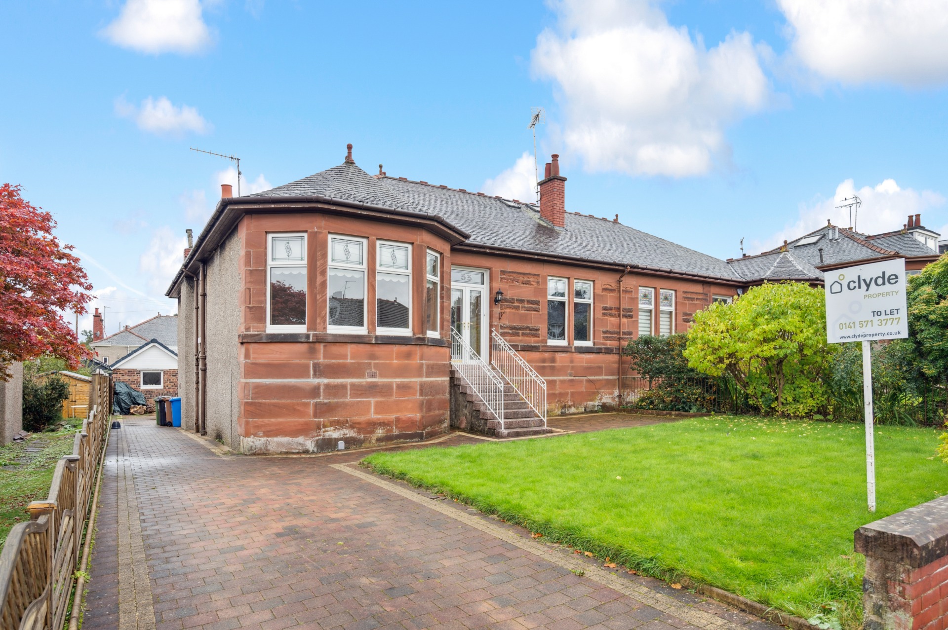 UNFURNISHED / AVAILABLE DATE BY NEGOTIATION - Set within established private grounds in the highly sought-after Old Cathcart suburb, Clyde Property is delighted to present this charming semi-detached, stone-fronted bungalow. This exceptional home offers flexible and generous family accommodation, arranged over two levels and extending to six principal apartments. Carefully maintained throughout, the property combines traditional features with modern upgrades, creating a comfortable and stylish living environment. On arrival, you are welcomed into an entrance vestibule that leads into a broad and inviting hallway. The front of the property hosts a superb bay-windowed main lounge with a beautiful feature fireplace, and a second spacious public room—ideal for use as a formal sitting room, home office, or additional bedroom. To the rear, the newly fitted kitchen is appointed with a sleek range of gloss-finish base and wall-mounted units and comes fully equipped with all major appliances. The kitchen provides direct access to the private, enclosed rear garden, which is beautifully maintained and offers a tranquil outdoor space. Adjacent to the kitchen, the generously proportioned dining room enjoys pleasant side-facing views and features a large built-in storage cupboard. Also located on the ground floor are two substantial double bedrooms, both rear-facing and benefiting from built-in wardrobe space. The accommodation on this level is completed by a stylish three-piece family bathroom with an over-bath shower. A bright staircase with a Velux window leads to the converted attic level, where a remarkable master bedroom spans the upper floor. Illuminated by windows on three sides and showcasing original beam details, this room also features a practical dressing area. The master suite is further enhanced by a luxurious ensuite bathroom, complete with a jacuzzi bath and a separate large walk-in shower enclosure. Externally, the property boasts a detached garage which has been cleverly adapted into a dedicated bar and TV area, providing the perfect setting for social gatherings. Ample driveway parking is available, while the well-tended front and rear gardens further elevate the home’s appeal. An additional asset is the full-length, full-height cellar, accessed from the rear garden, offering extensive storage to meet everyday needs. This quiet and well-established neighbourhood in Cathcart is known for its community feel and convenient access to a wide range of amenities. Local shops, cafes, restaurants, and delicatessens are all close by, with larger supermarkets including Sainsbury’s Local at Muirend and Morrisons at Newlands and Giffnock within easy reach. Outdoor pursuits are plentiful, with nearby nature trails, equestrian facilities, and a municipal golf course. The area also benefits from excellent schooling at both primary and secondary levels, along with reliable public transport options via nearby bus and rail links that provide swift access to surrounding districts and the city centre. Early viewing is highly recommended to fully appreciate the quality, size, and versatility of this outstanding home in one of the Southside’s most desirable locations. Matterport Tour - https://my.matterport.com/show/?m=gqRM4HgVzmm. EPC Band E. Landlord Registration Number GLA-1589991-25. Clyde Property Scottish Letting Agent Registration No. LARN1902033.