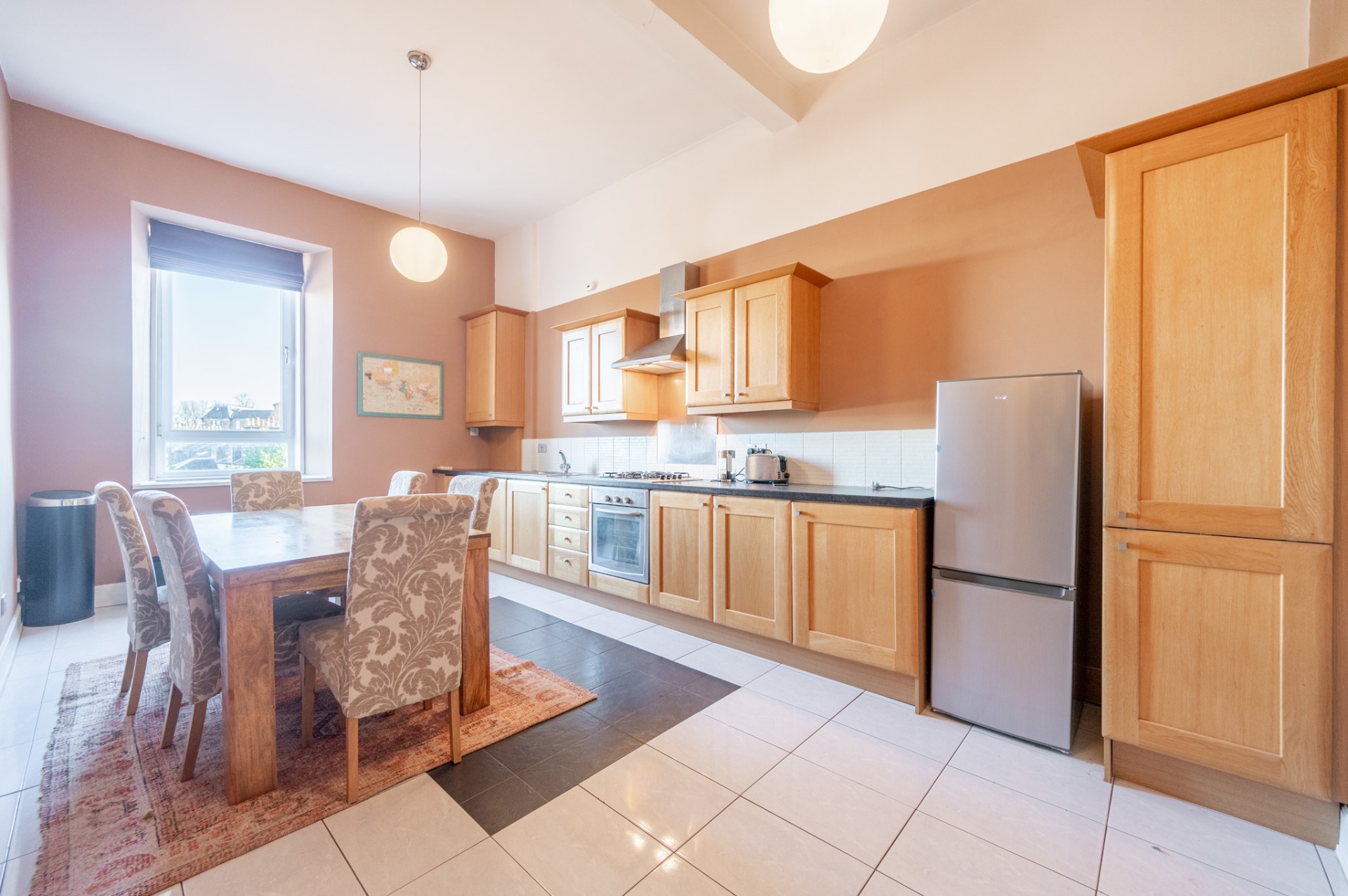 FURNISHED/ AVAILABLE NOW. Occupying a bright top-floor position within a charming blonde sandstone building, this outstanding two-bedroom tenement flat is offered to the rental market in true walk-in condition. Immaculately presented and furnished to a high standard throughout, the property further benefits from gas central heating, double glazing, a well-maintained communal stairwell with secure entry system, and a raised rear courtyard providing excellent outdoor entertaining space. The accommodation comprises a maintained residents’ stairwell accessed via secure entry, leading to a welcoming hallway with hardwood flooring. The bright and spacious front-facing living room features large, near full-length windows, allowing an abundance of natural light to flood the room and create a warm, inviting atmosphere. The impressive dining kitchen is fitted with a comprehensive range of base and wall-mounted units, offering excellent storage and preparation space, along with ample room for dining and entertaining. There are two sizeable double bedrooms, both rear-facing for added privacy, each complete with freestanding wardrobes and additional chests of drawers for storage. Completing the internal accommodation is a modern galley-style bathroom with over-bath shower. Located in the ever-popular areas of Battlefield and nearby Shawlands, the property enjoys access to a vibrant selection of restaurants, bars, coffee shops, and independent boutiques, creating a lively and engaging local high street atmosphere. Amenities include supermarkets such as Tesco and Marks & Spencer Food Hall, alongside an excellent range of local butchers, greengrocers, and bakeries. The area is exceptionally well connected, with Mount Florida railway station just a short stroll away and regular bus services available along Battlefield Road. Early viewing is highly recommended to fully appreciate the quality, character, and prime location of this superb home. Landlord Registration - GLA-1720503-26. EPC Rating C. Clyde Property Scottish Letting Agent Registration No. LARN1902033.