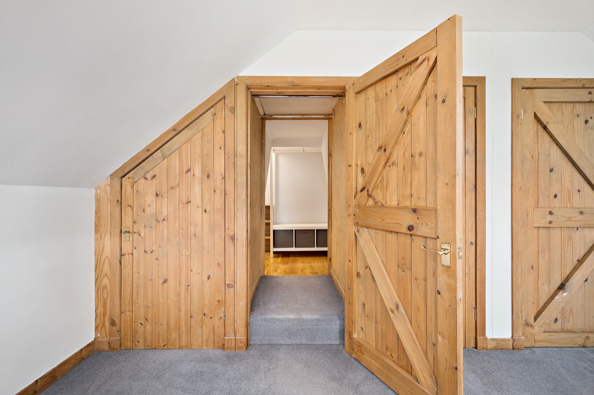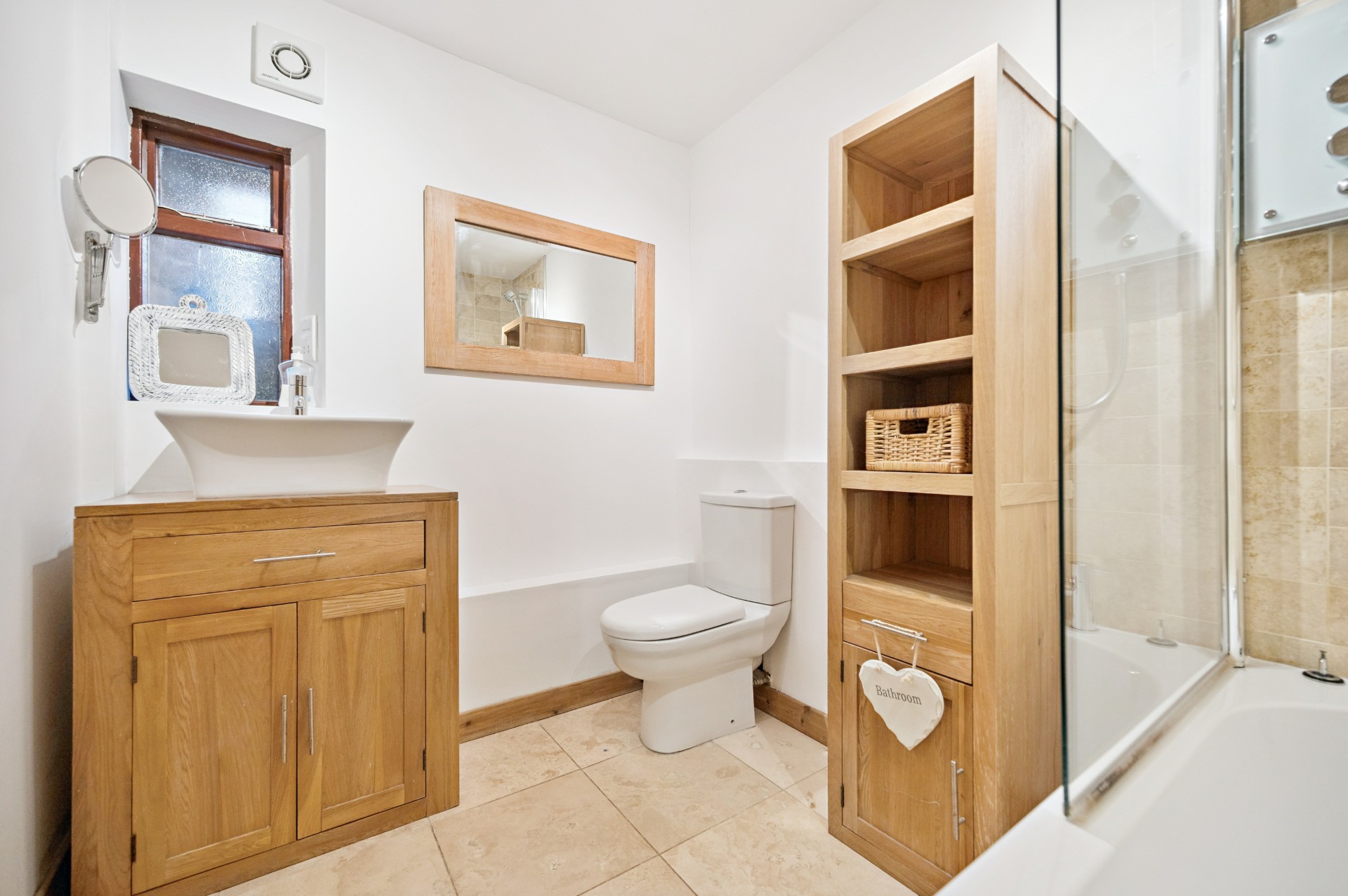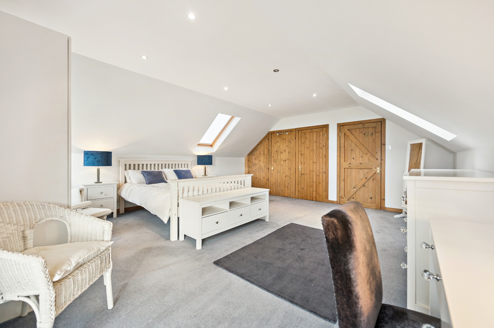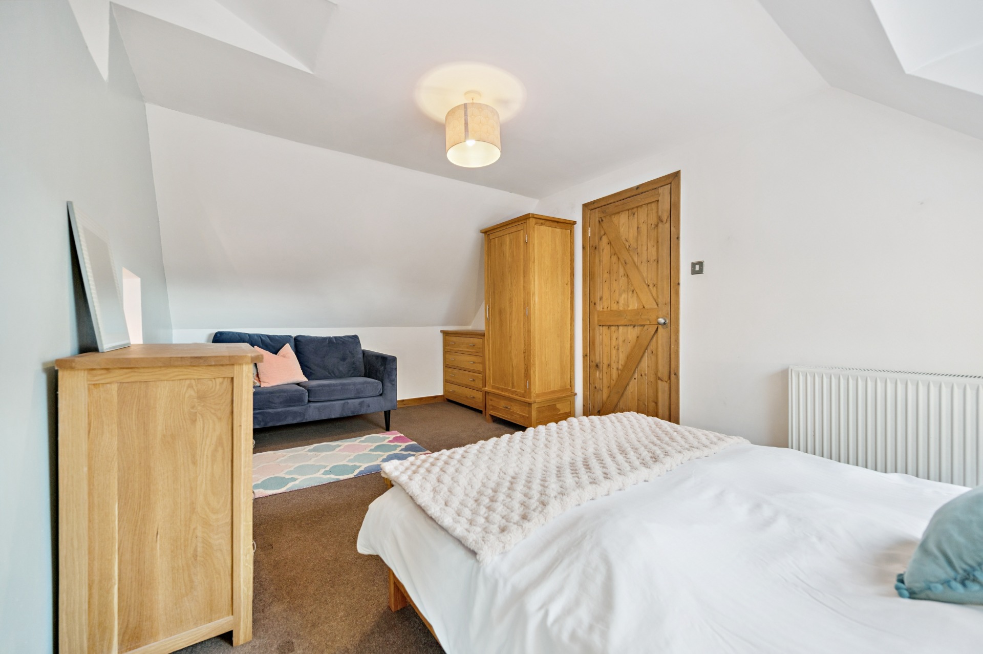 Internally, the accommodation begins on the ground floor with a welcoming entrance porch leading into a large and inviting living room, with a utility room and bathroom located just off. This flows through to a generous reception area, perfectly suited for dining and informal lounging. The substantial kitchen boasts a modern finish while thoughtfully retaining the property’s original barn-style character. A further W.C. completes the ground floor.