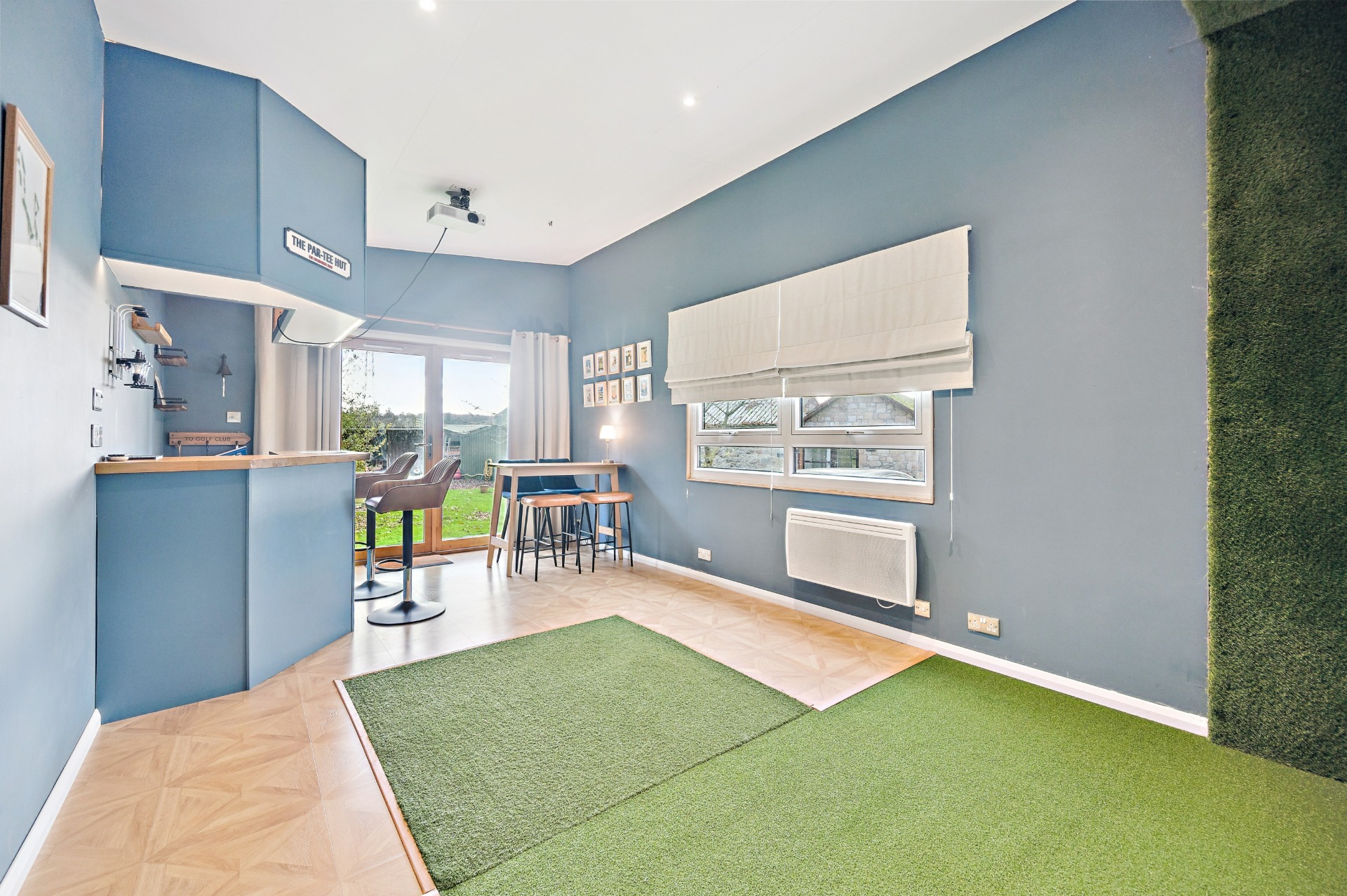 Externally, the property further benefits from a separate outhouse, home to a fully fitted bar and an impressive golf studio complete with projector screen and practice mat—ideal for entertaining or leisure use.