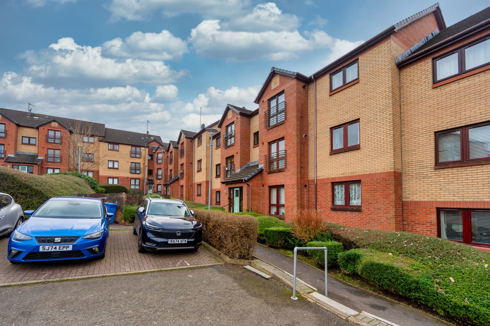 An attractive two-bedroom modern apartment offering tastefully decorated accommodation with the added advantage of private allocated parking. This modern apartment occupies a third floor position within a purpose built low rise, modern building and affords security door entry system, gas central heating and double glazed windows throughout. To the rear there are well maintained communal grounds which are laid to a combination of lawn and paving, thus providing an attractive recreational area. Furthermore, this delightful modern home has the added advantage of both allocated residents and visitors parking. In brief, the accommodation extends to; residents stairwell providing access to all floors, spacious reception hallway with a large storage cupboard, two bedrooms with the principal benefitting from an en-suite shower room, family bathroom with shower over bath, lounge and a kitchen fitted with a range of base wall mounted units. One of the properties finest attributes is certainly the handy location, a wide range of amenities can be found locally such as cafes, bars, butchers and delicatessens. A variety of public transport services are also readily available with multiple bus routes running along Holmlea Road and Cathcart Rail Station within 0.2 miles of the apartment’s front door.