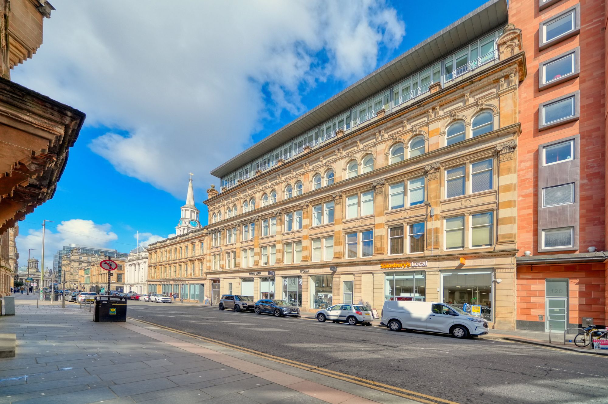 Excellent transport links are readily available, with nearby Central and Queen Street train stations, Buchanan Street Bus Station, and Bridge Street Subway Station all within easy reach, while Glasgow Airport is approximately a 15-minute drive away.