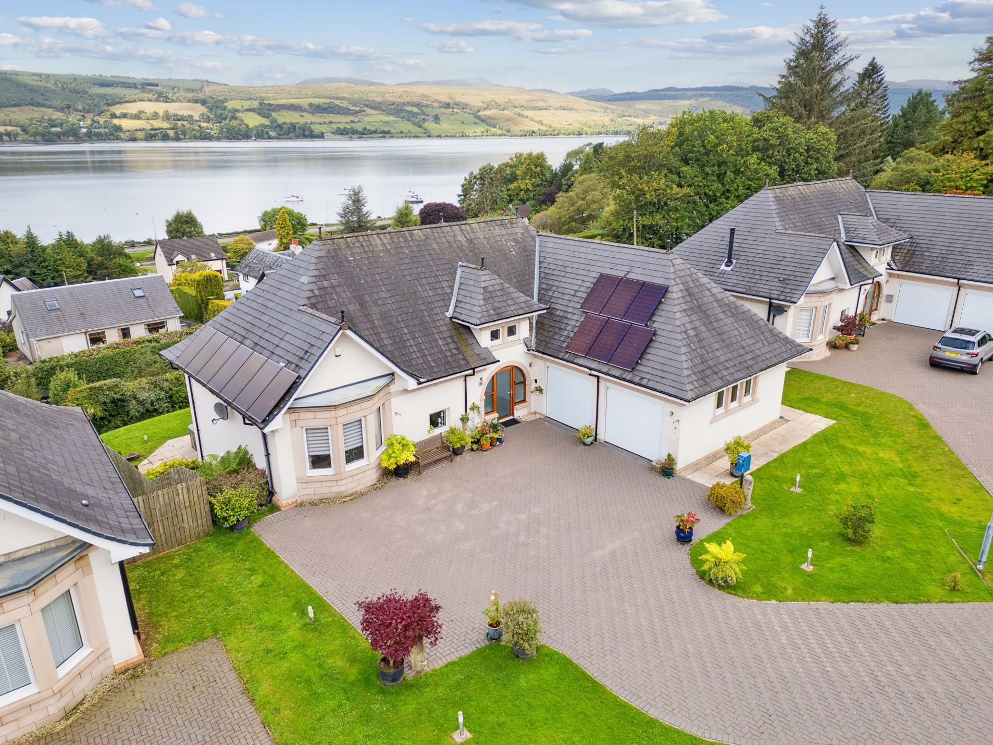 The property is a substantial and beautifully proportioned family home that extends to over 2500 square feet and boasts impressive architectural features that include an integral double garage (with twin doors) with remotely operable doors, stone detailing, balconies (taking in the fantastic loch views) and a large hipped slated roof. Within the garage power and light is laid on and there is access directly to the house through the utility room.
