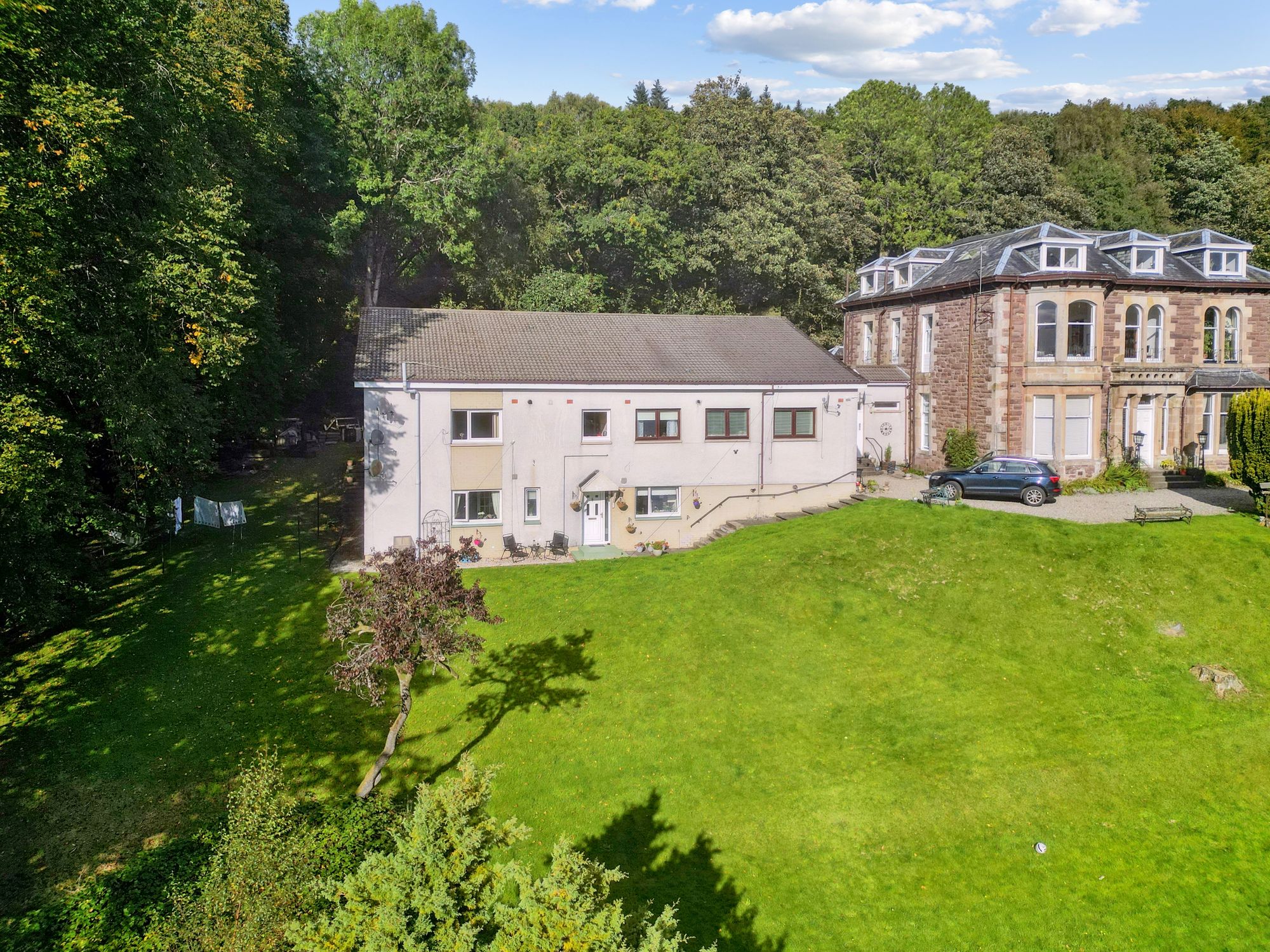 Moor House was built in 1936 and purchased by the current owner in 2010. In 2013, the house was subject to a significant programme of extension, upgrade and sympathetic modernisation to create this outstanding “small estate” that is undoubtedly one of the best family homes to come to the market within commuting distance of Glasgow.