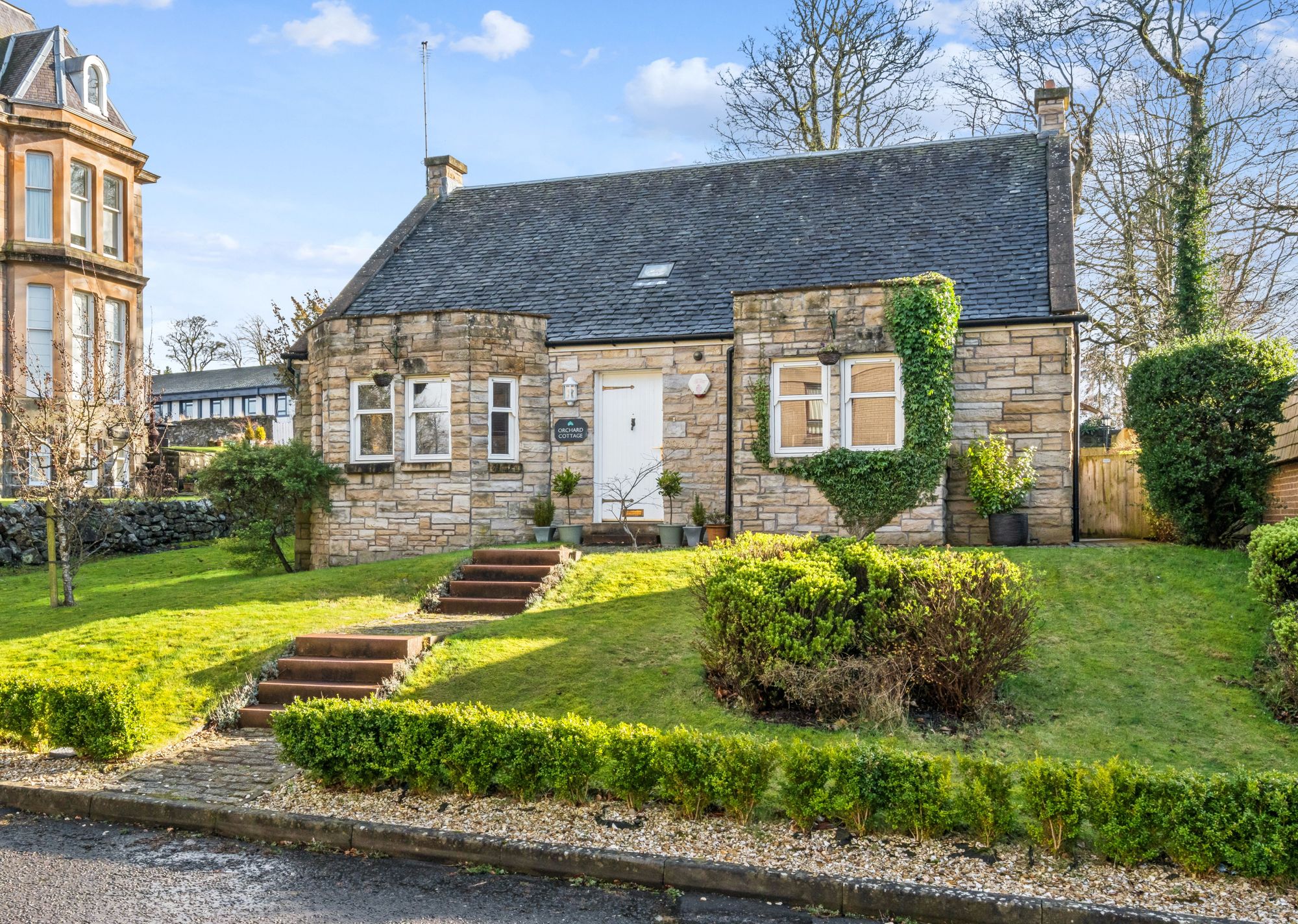 Externally, the home is surrounded by private garden grounds, thoughtfully maintained and bounded by a combination of stone and brick rendered walls, providing both privacy and a charming setting. The south facing garden offer excellent outdoor space for relaxing or entertaining, while off-street parking is conveniently located to the rear of the property.