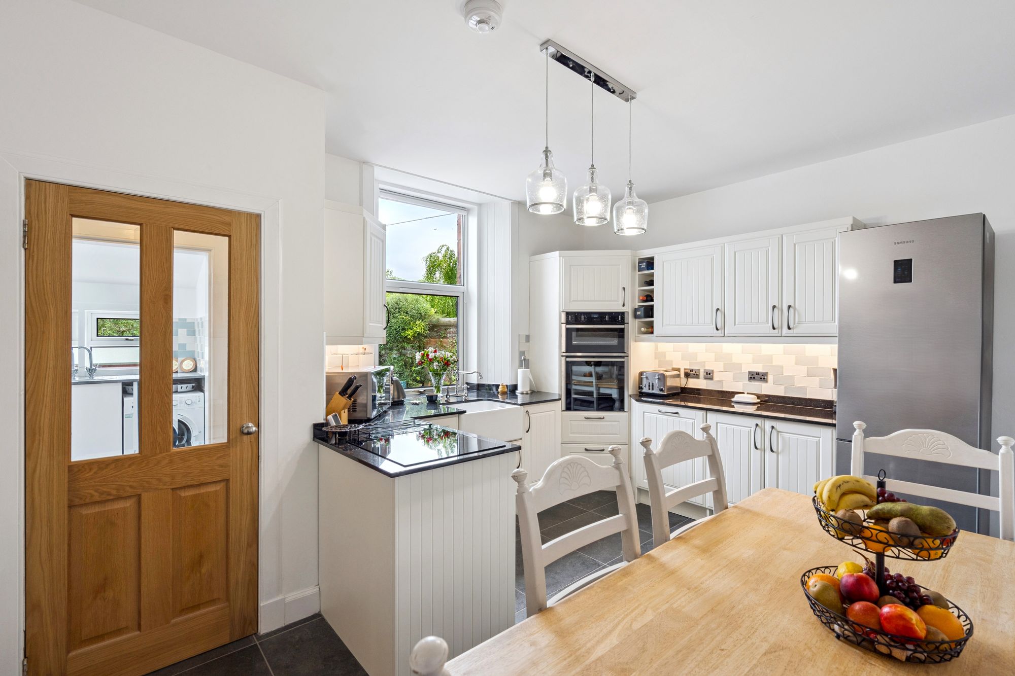 A practical utility room, with washer, dryer, and pantry space, sits just off the kitchen and connects to a convenient downstairs WC.